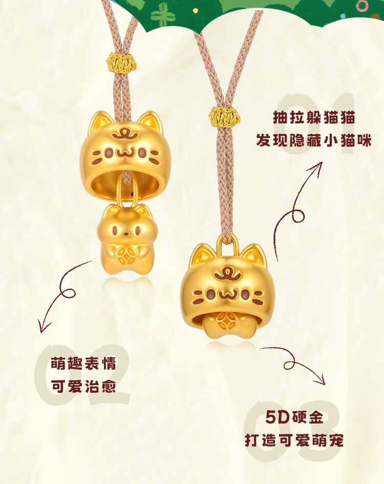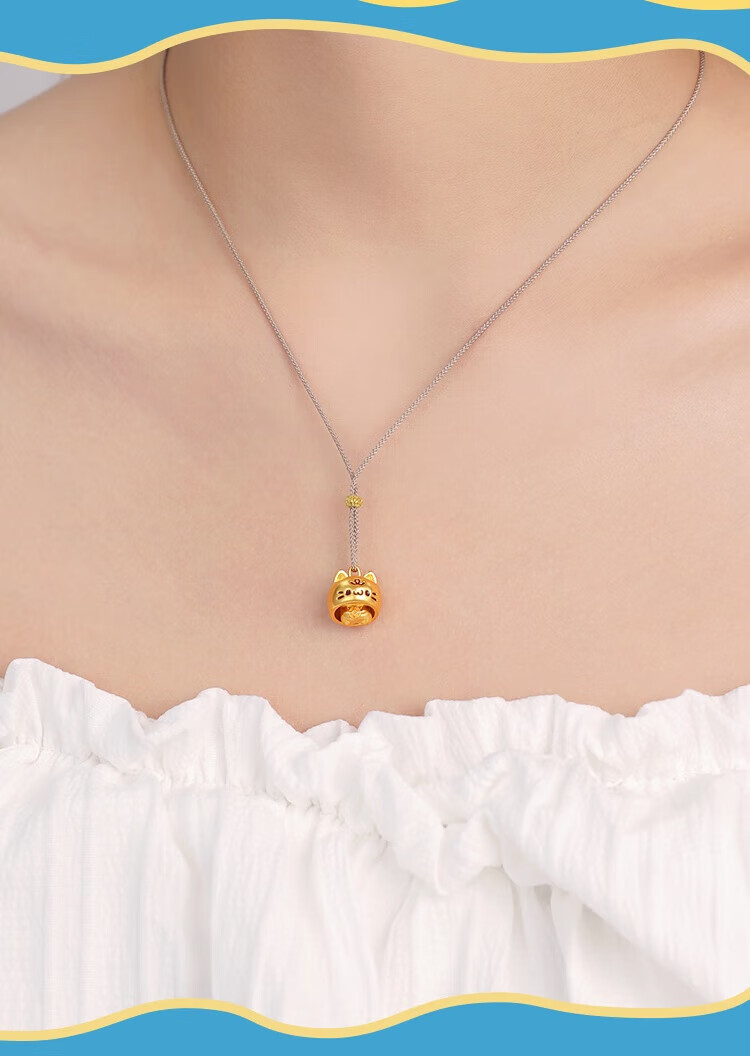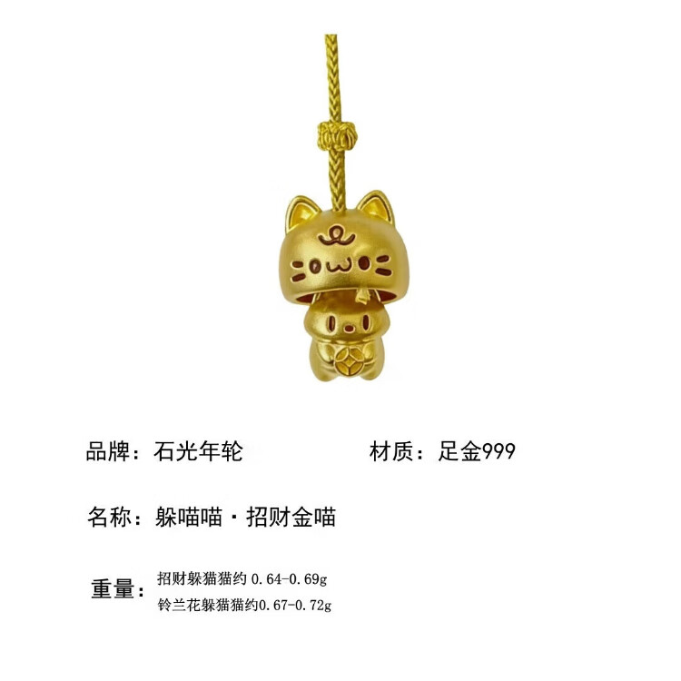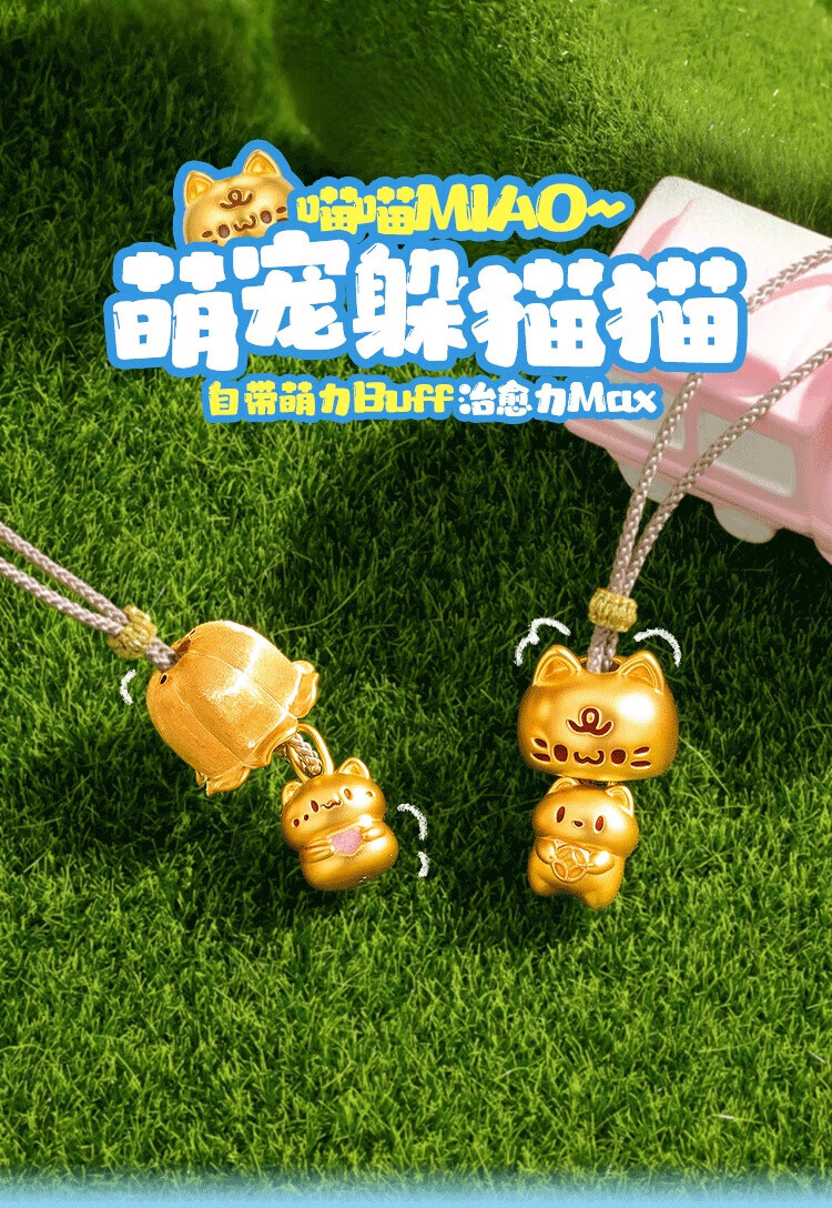 Stone light annual ring gold hide and seek lucky golden meow pure gold 999 pendant lucky cat braided rope necklace gift for girlfriend during festivals pure gold hide and seek cat lucky golden cat + free braided rope