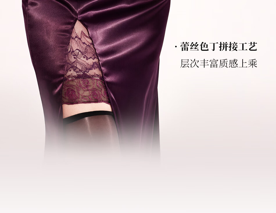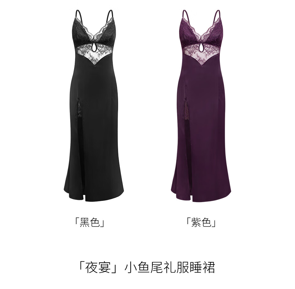 Aya is born silky-new product night banquet sexy temptation light mature deep V close-fitting lace home small fishtail dress nightgown for women Black black M size 155cm~175cm