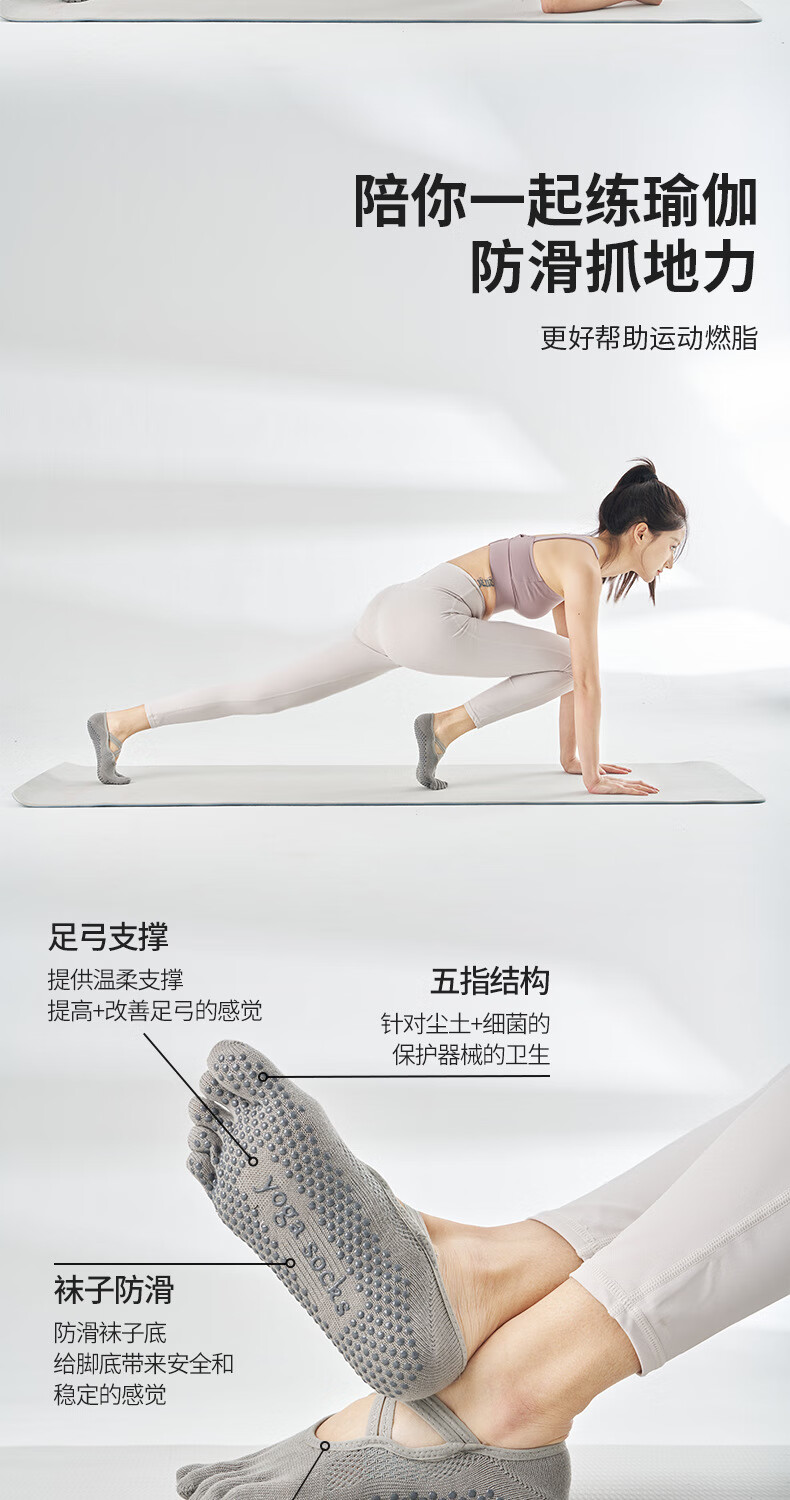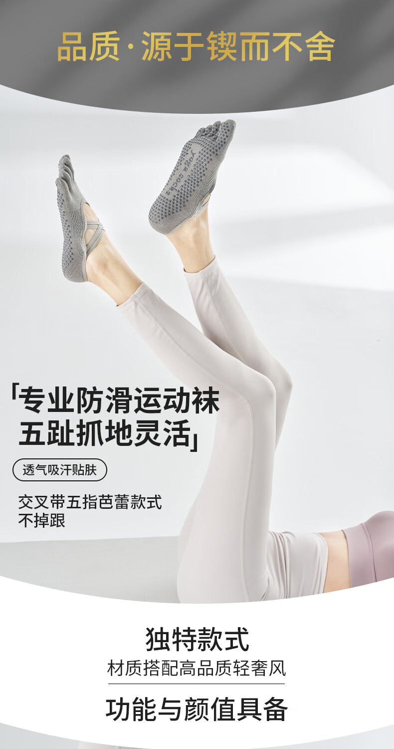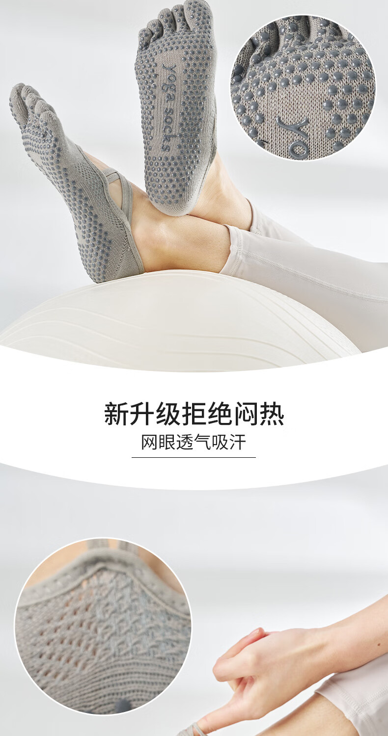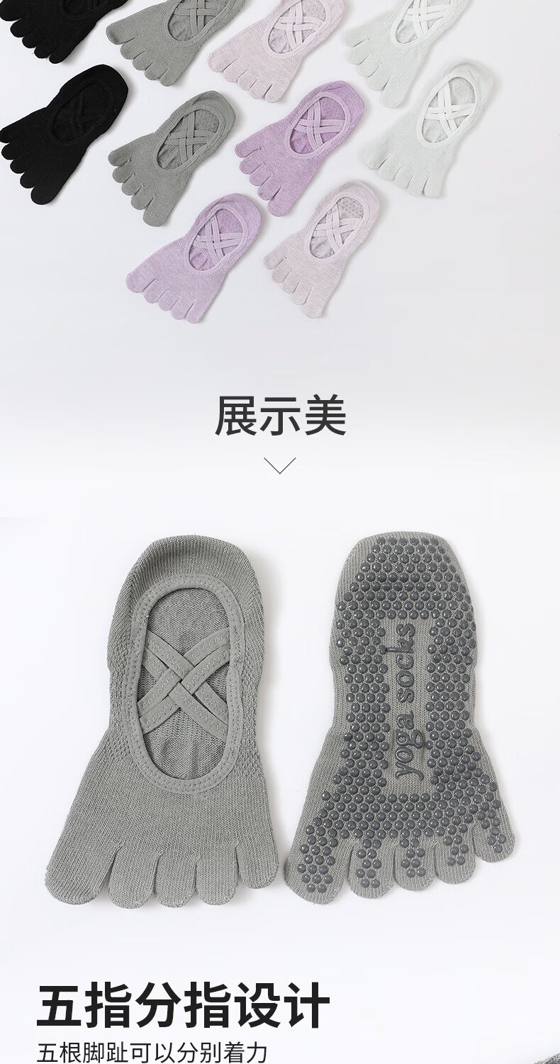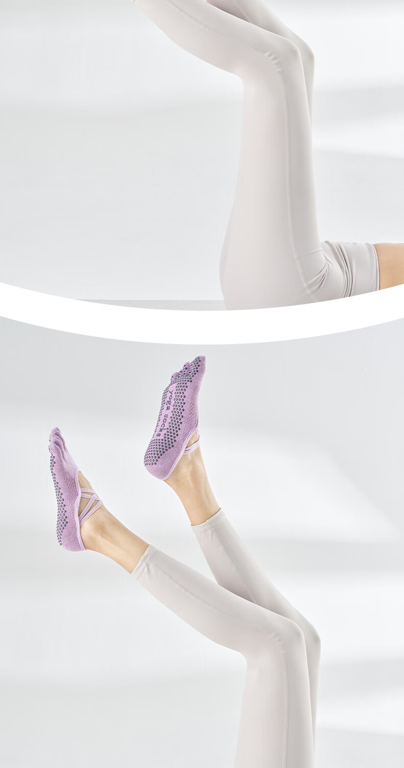 Ballet strap yoga socks women's non-slip socks breathable five-finger thin sweat-absorbent solid color Pilates socks sports socks romantic purple one size