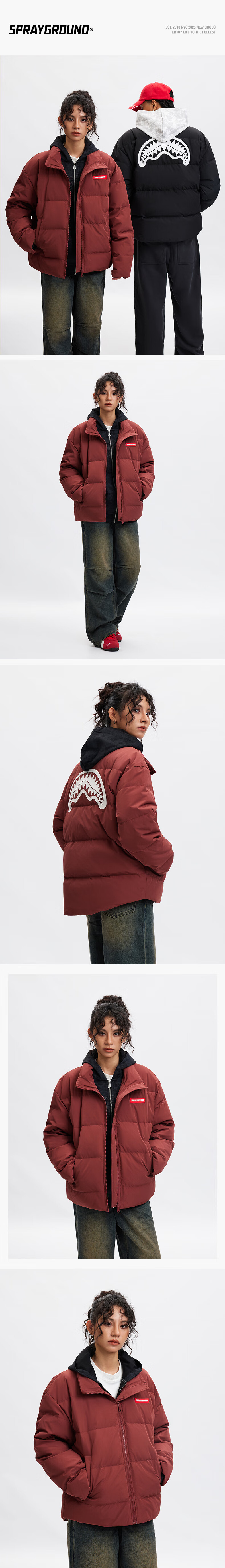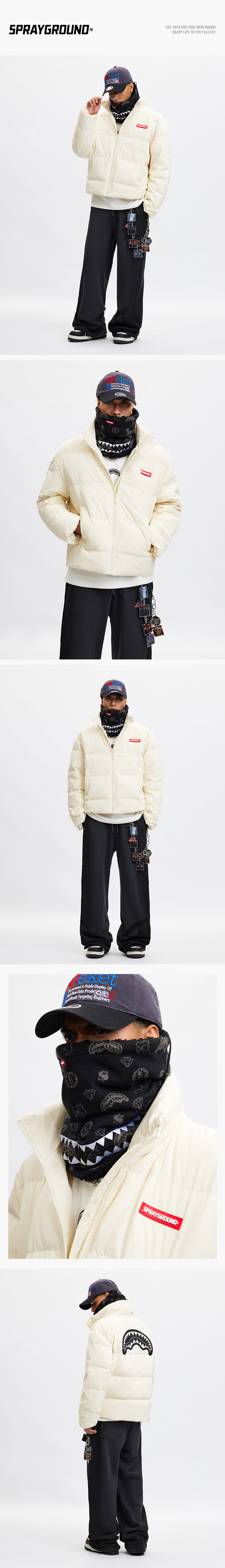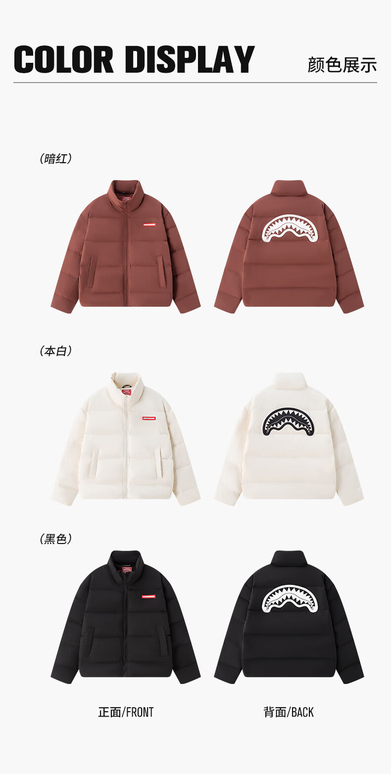 SPRAYGROUND Shark Mouth 90 White Duck Down Jacket Men's 2025 Winter Warm and Coldproof Stand Collar Couple's Bread Jacket Black 2XL