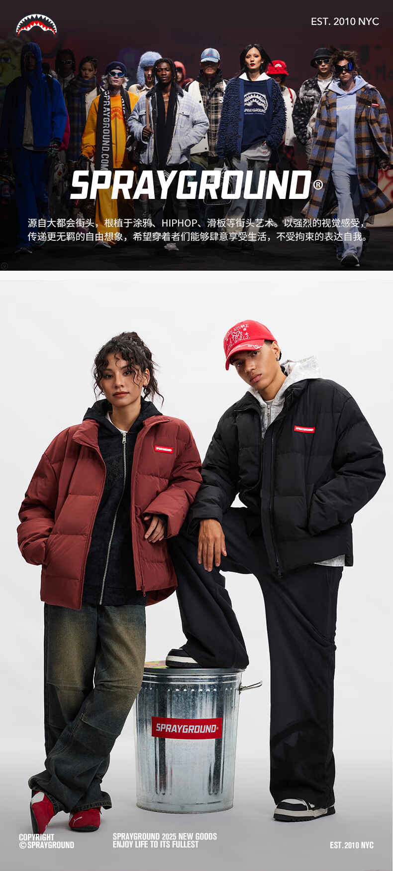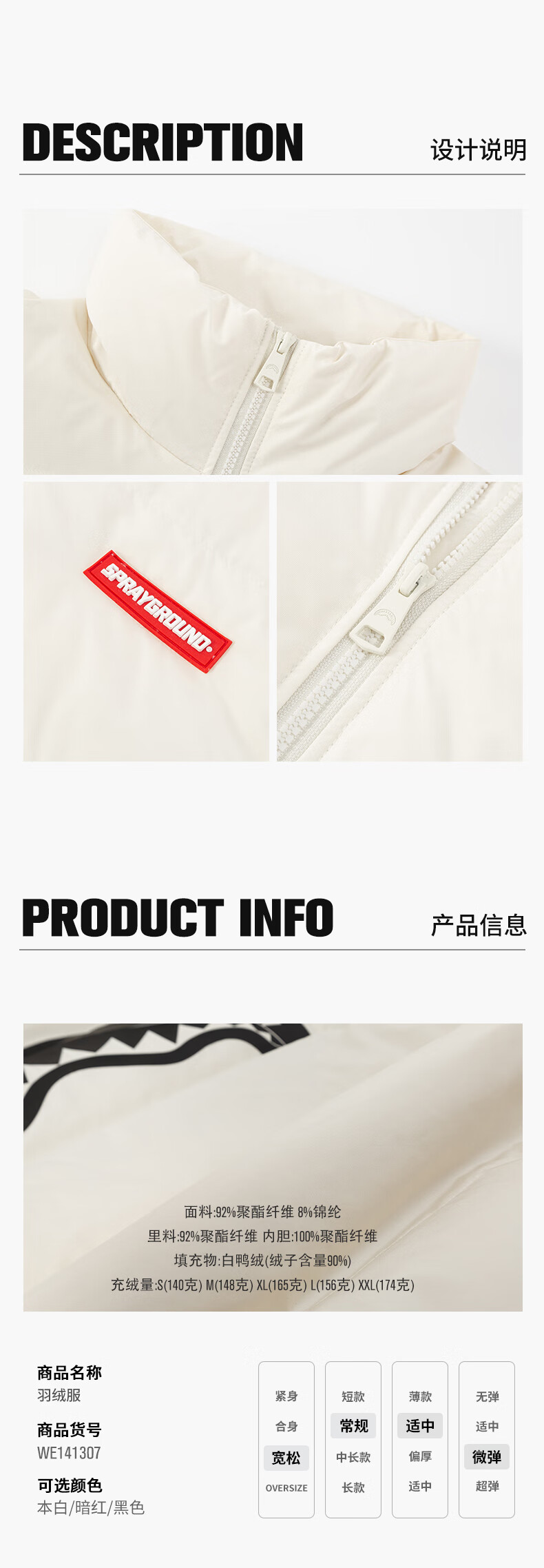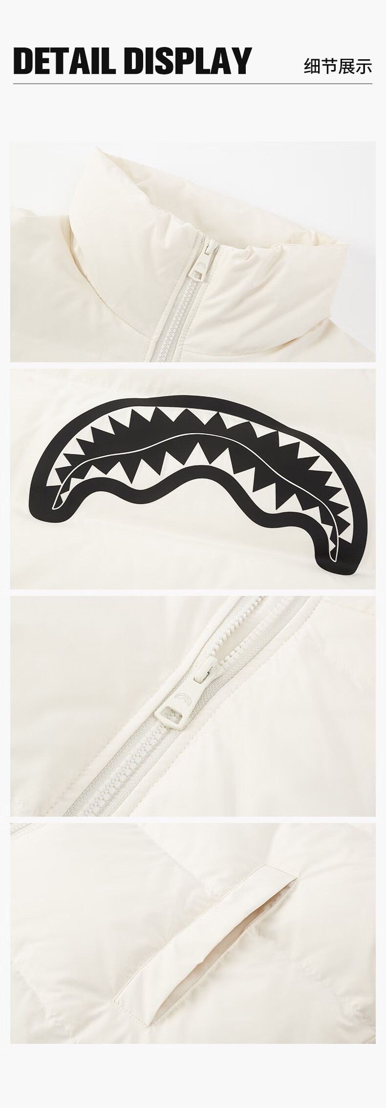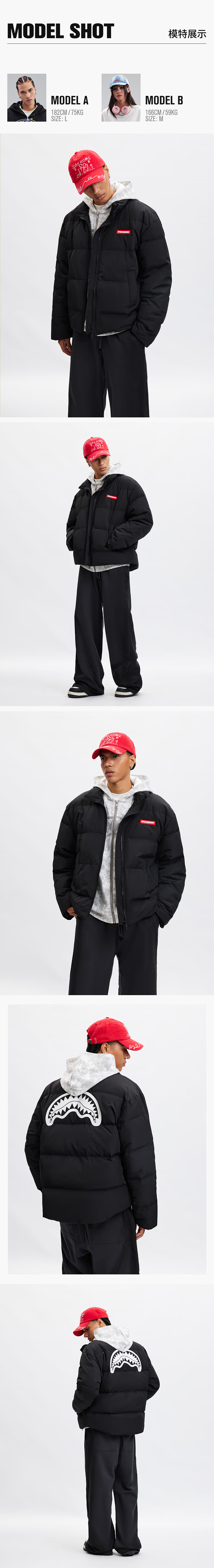 SPRAYGROUND Shark Mouth 90 White Duck Down Jacket Men's 2025 Winter Warm and Coldproof Stand Collar Couple's Bread Jacket Black 2XL