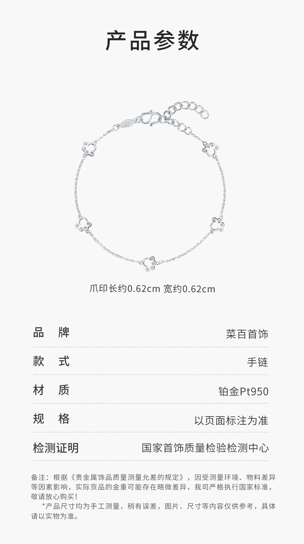 Cai Bai Jewelry Platinum Bracelet Pt950 Platinum Fashion Sweet Little Paw Print Thin Bracelet Price BJ Platinum Bracelet About 3.76g About 16cm