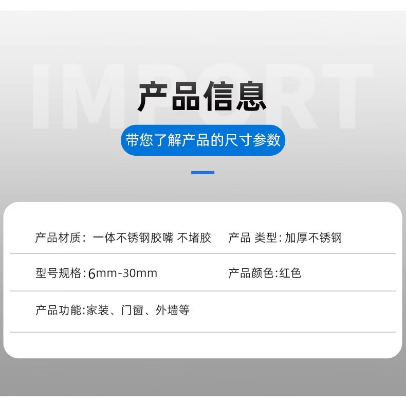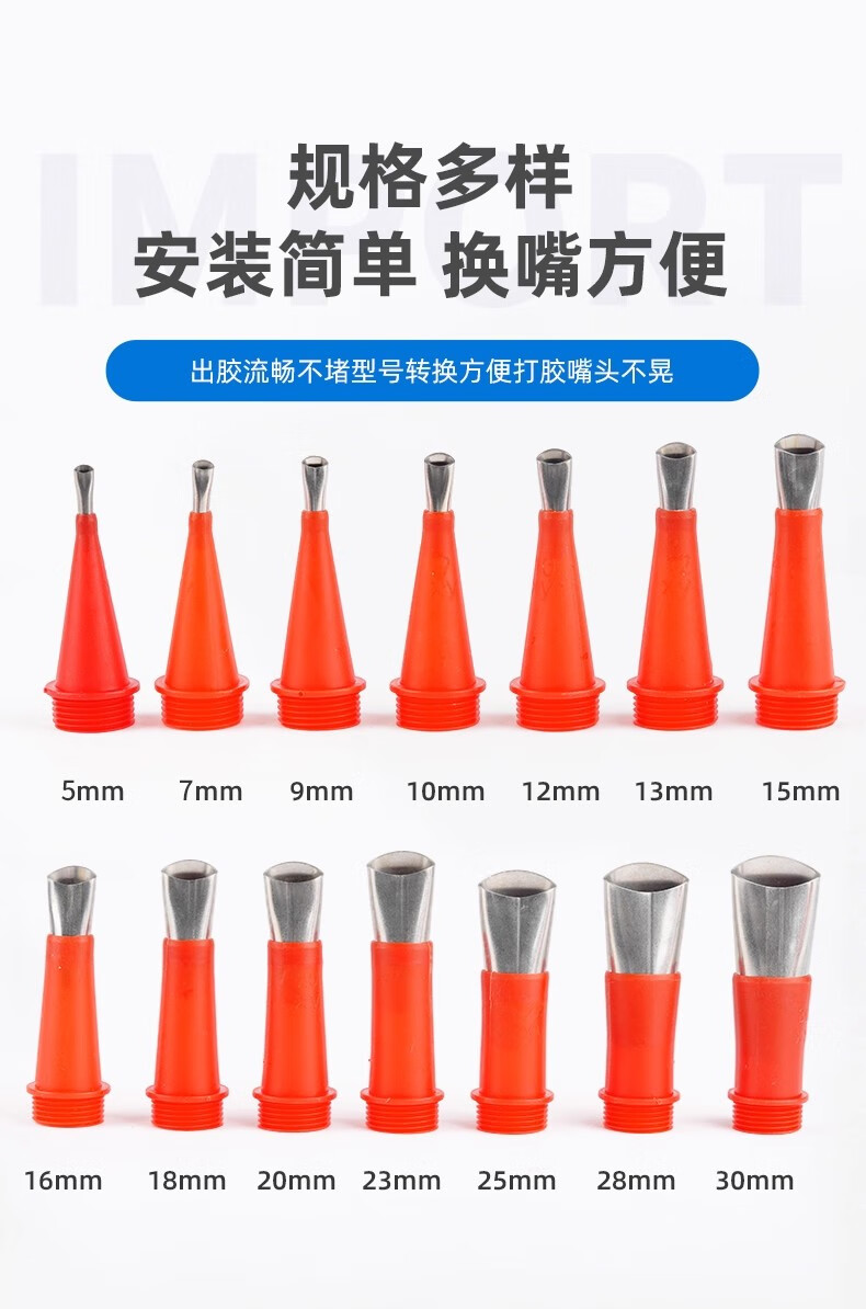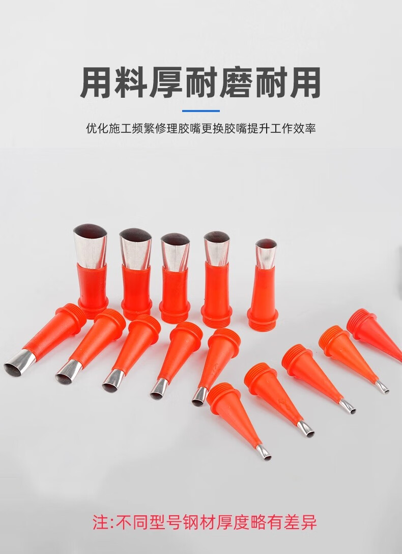 Stainless steel glue nozzle, removable base, door and window structure glue nozzle, glue nozzle, sealant, glass glue nozzle, 5 models for exterior walls, 23/25/28/30/35+2 soft support bases