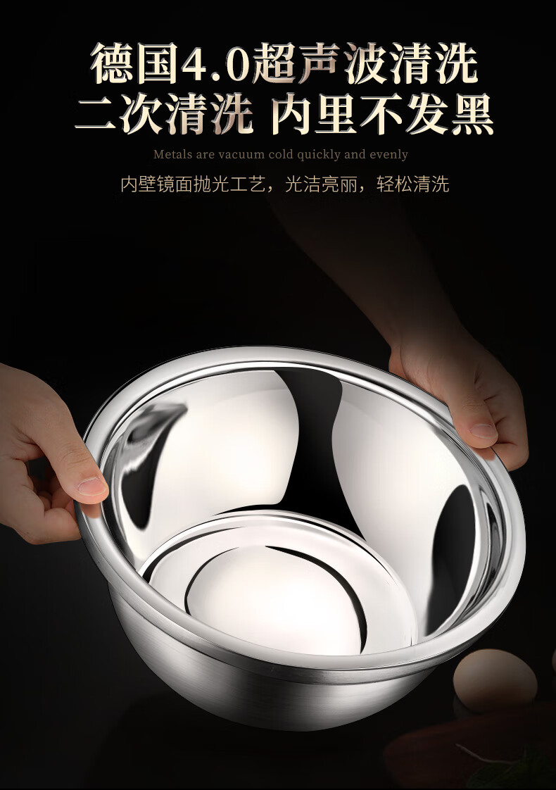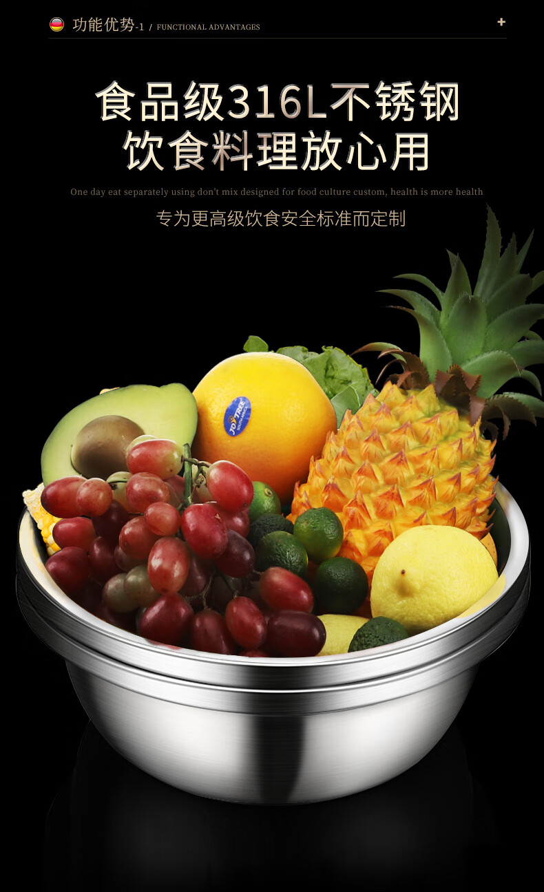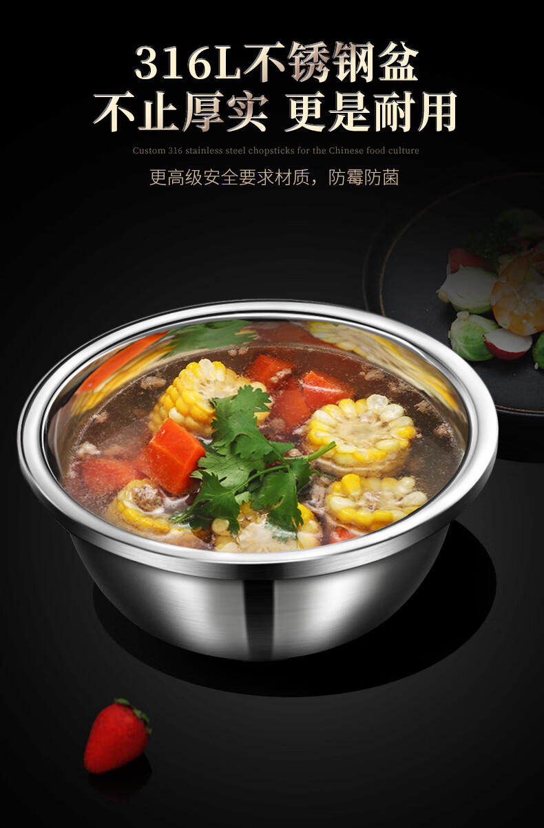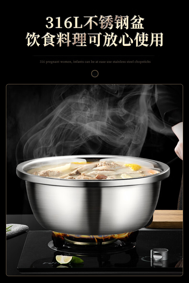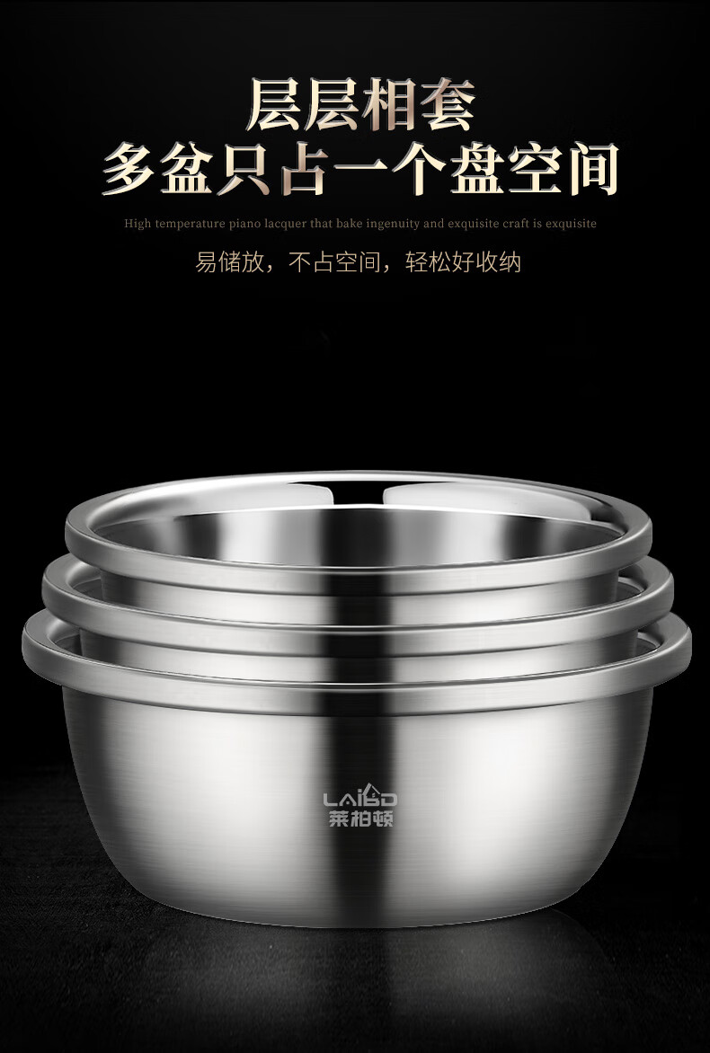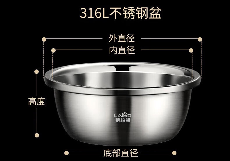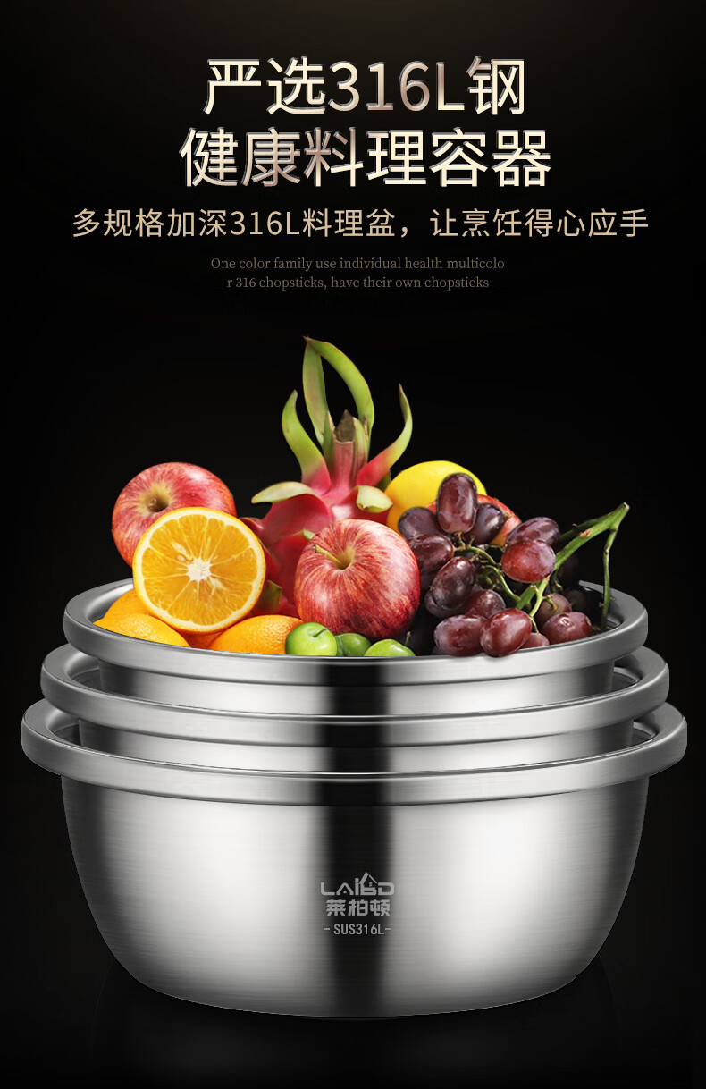 Laberton food grade 316L stainless steel basin set household thickened vegetable basin oil basin egg beating and basin cooking basin soup basin small basin three-piece set 18-22-24cm thickened 316L steel