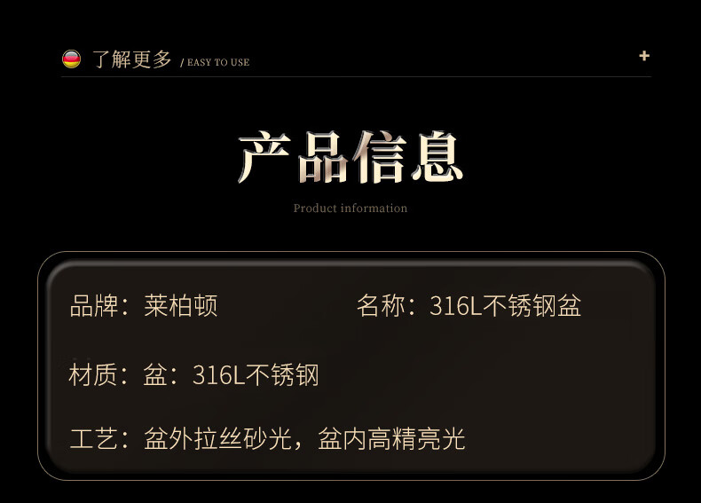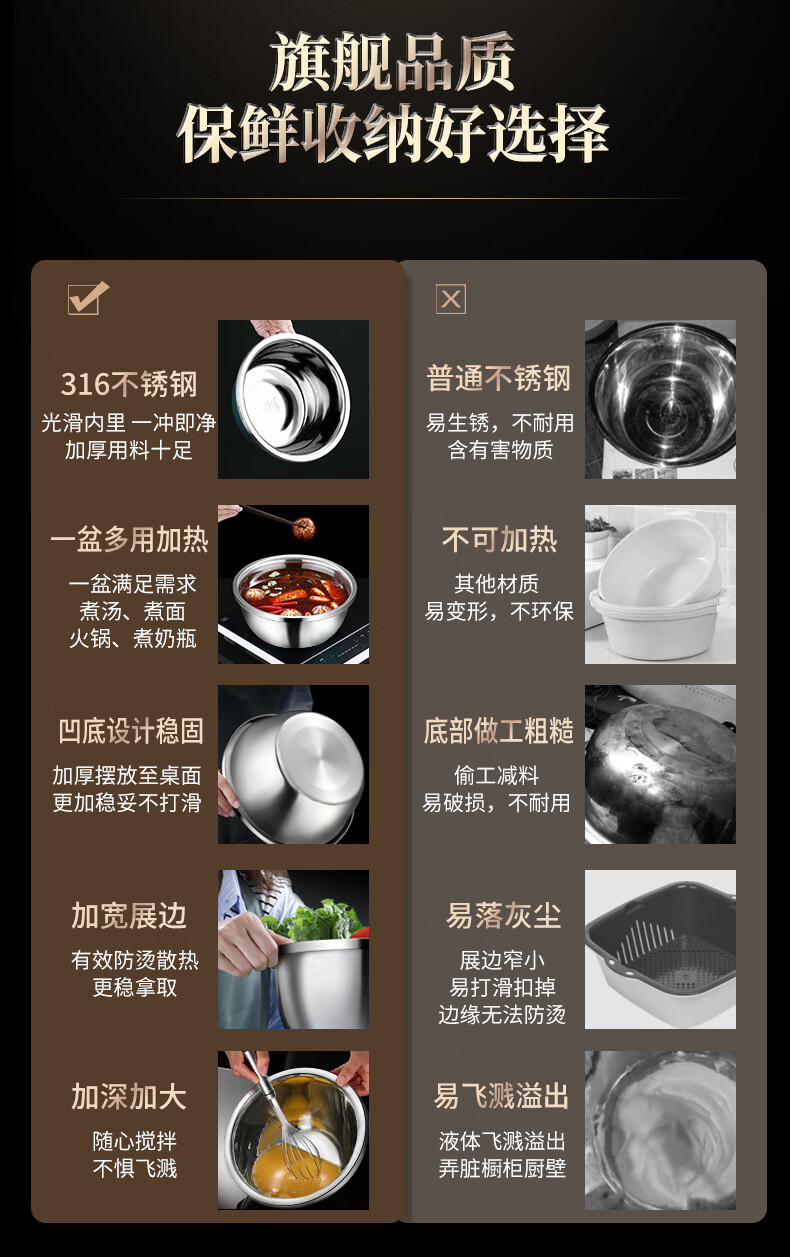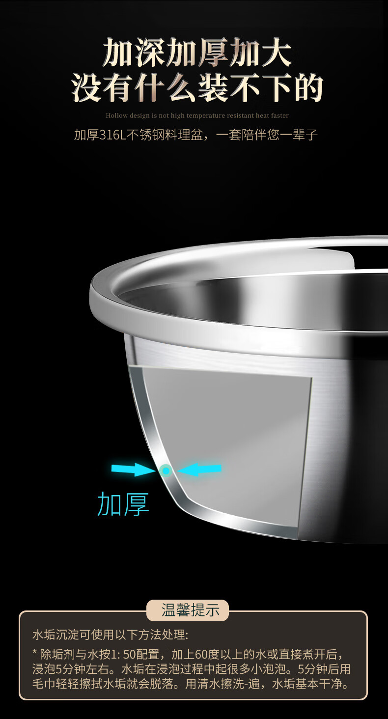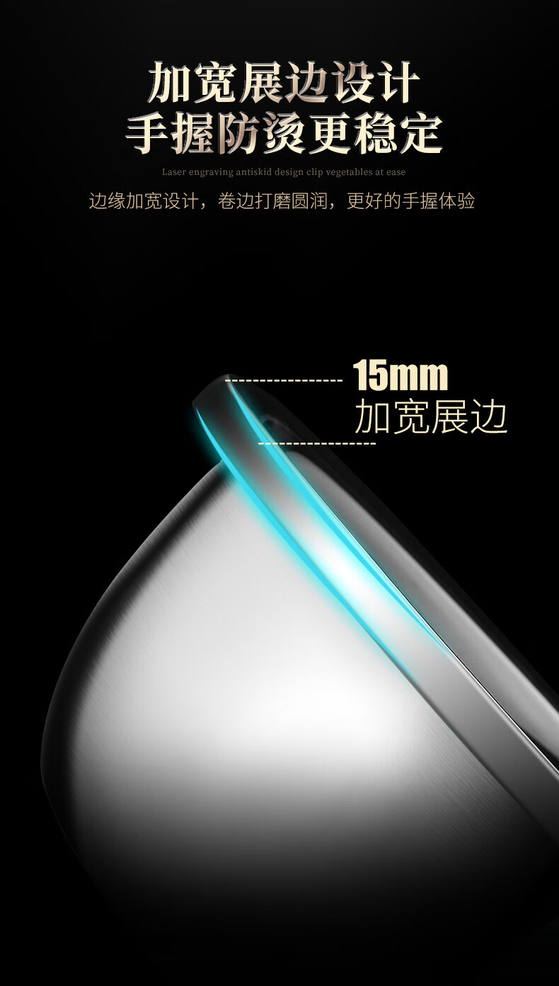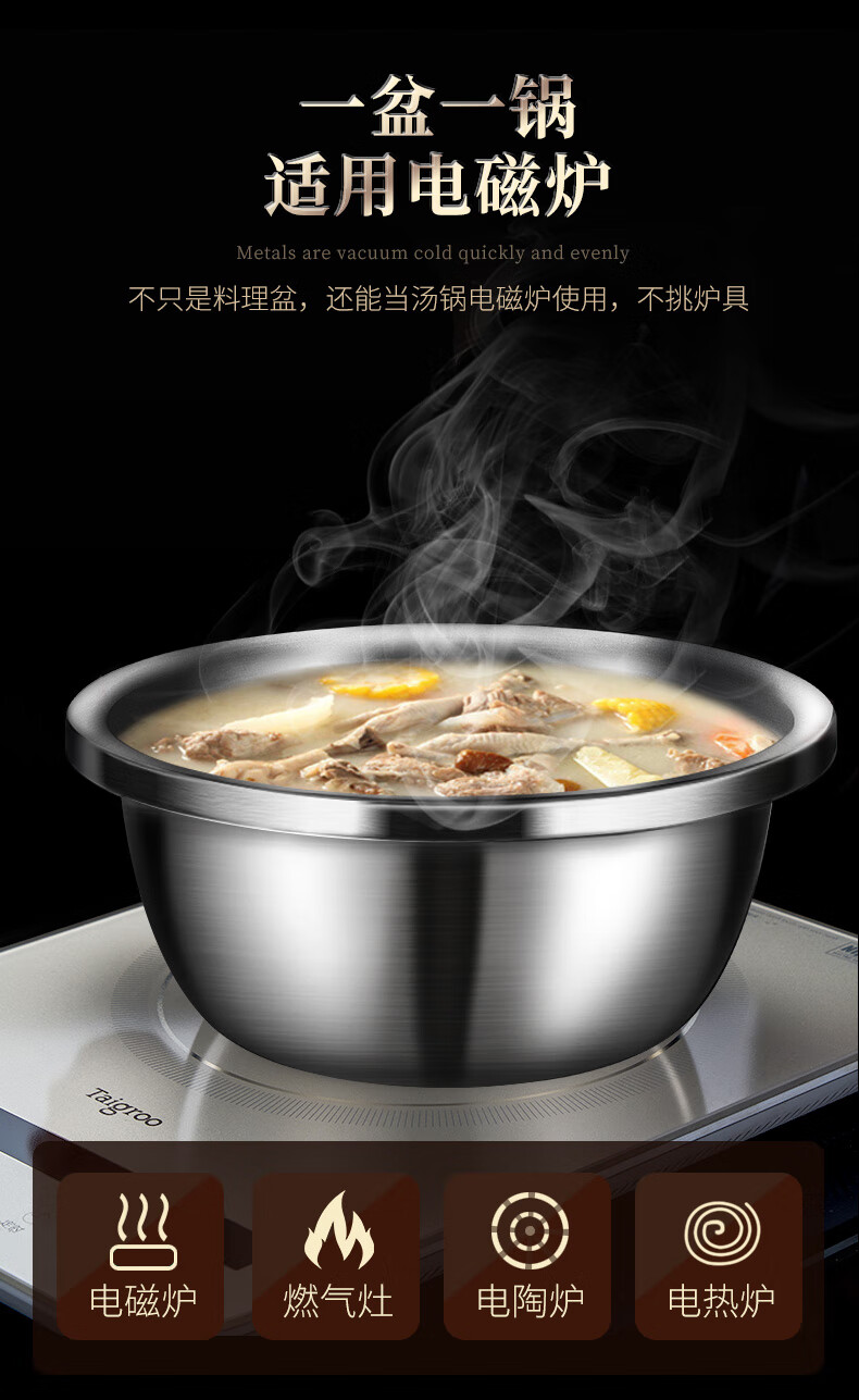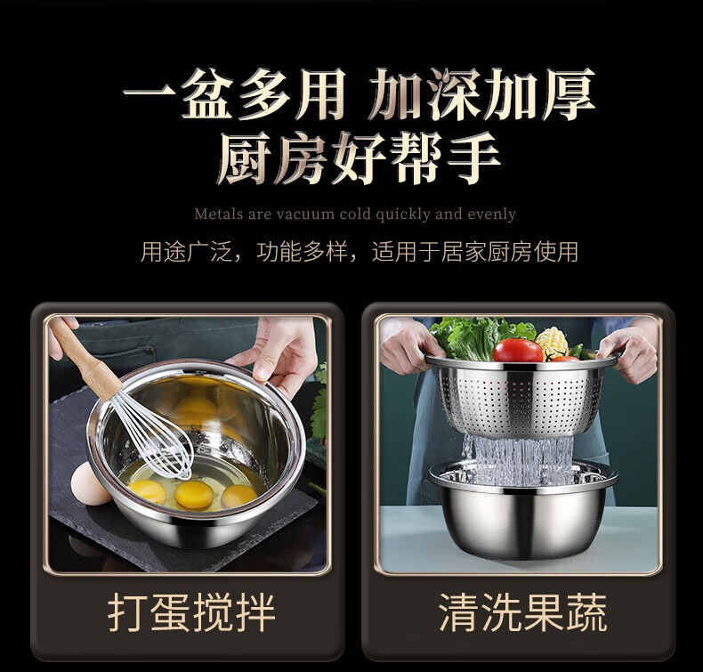 Laberton food grade 316L stainless steel basin set household thickened vegetable basin oil basin egg beating and basin cooking basin soup basin small basin three-piece set 18-22-24cm thickened 316L steel