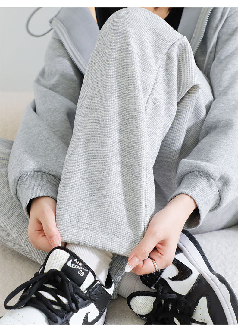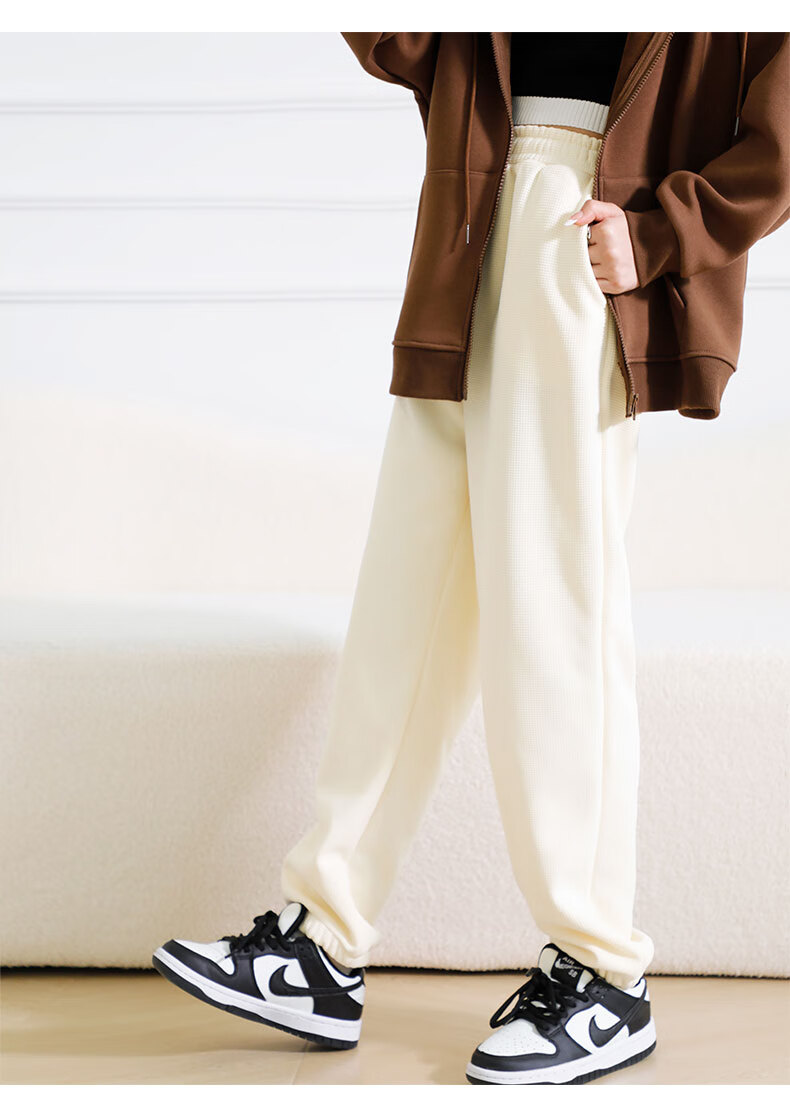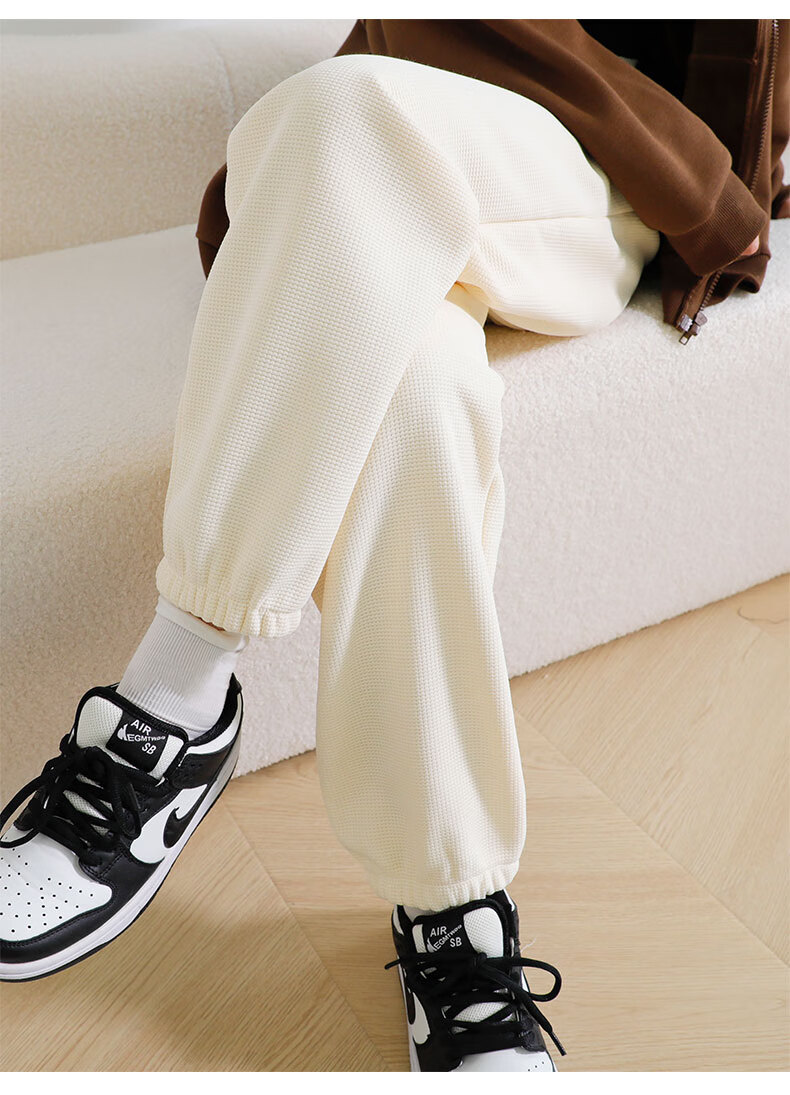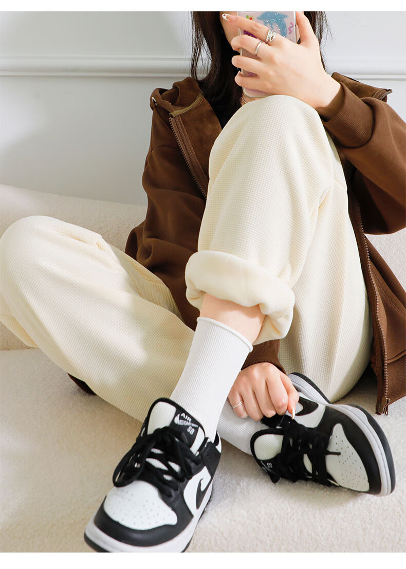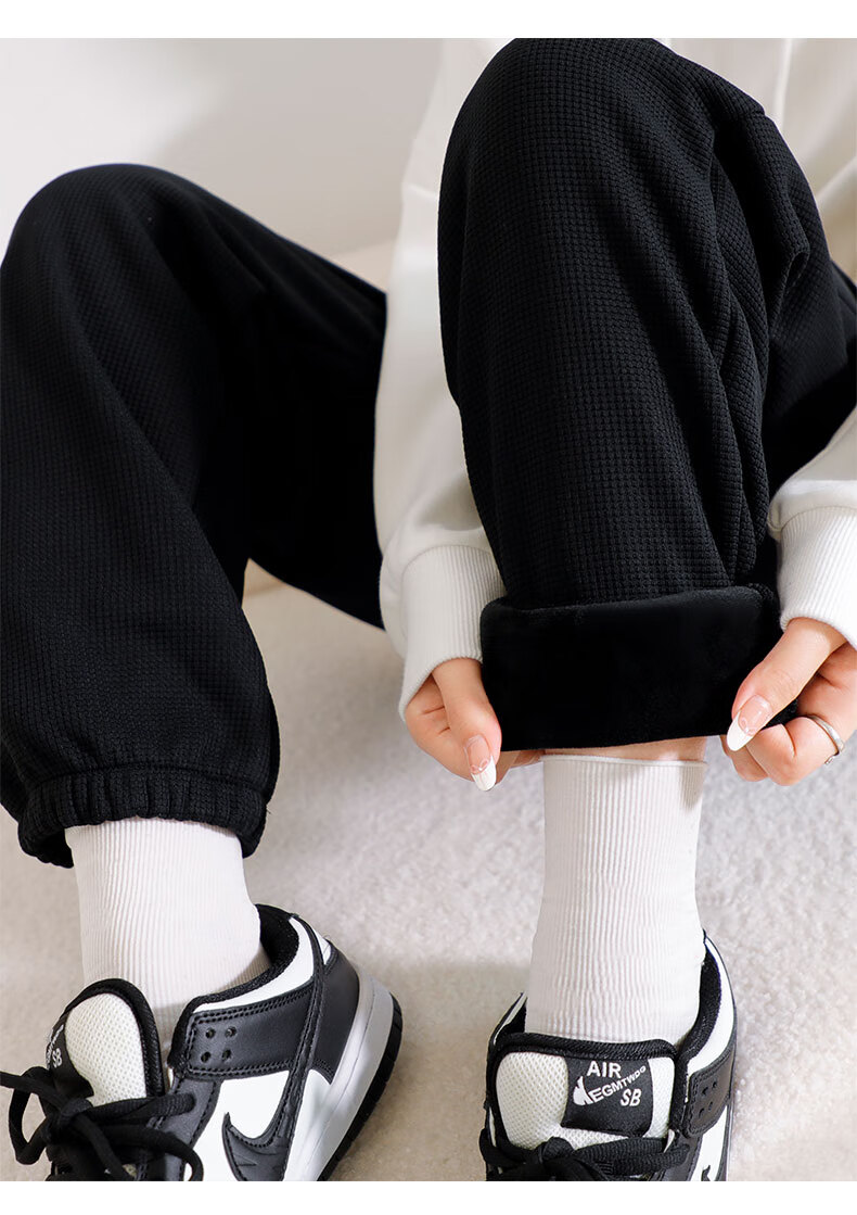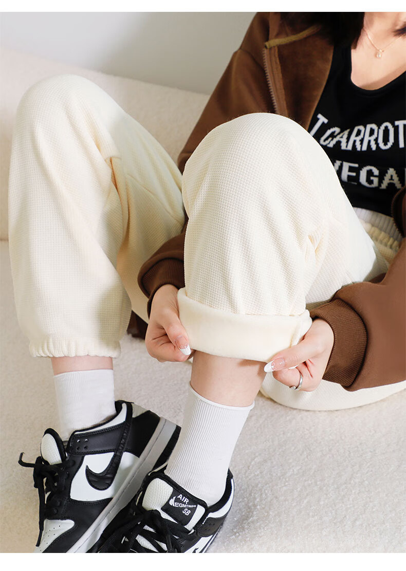 JEANSWEST waffle plus velvet leggings women's sweatpants 2025 new autumn and winter student warm loose casual sweatpants hemp gray burgundy flowers_K 3XL