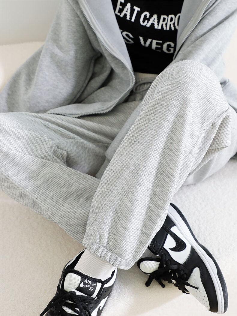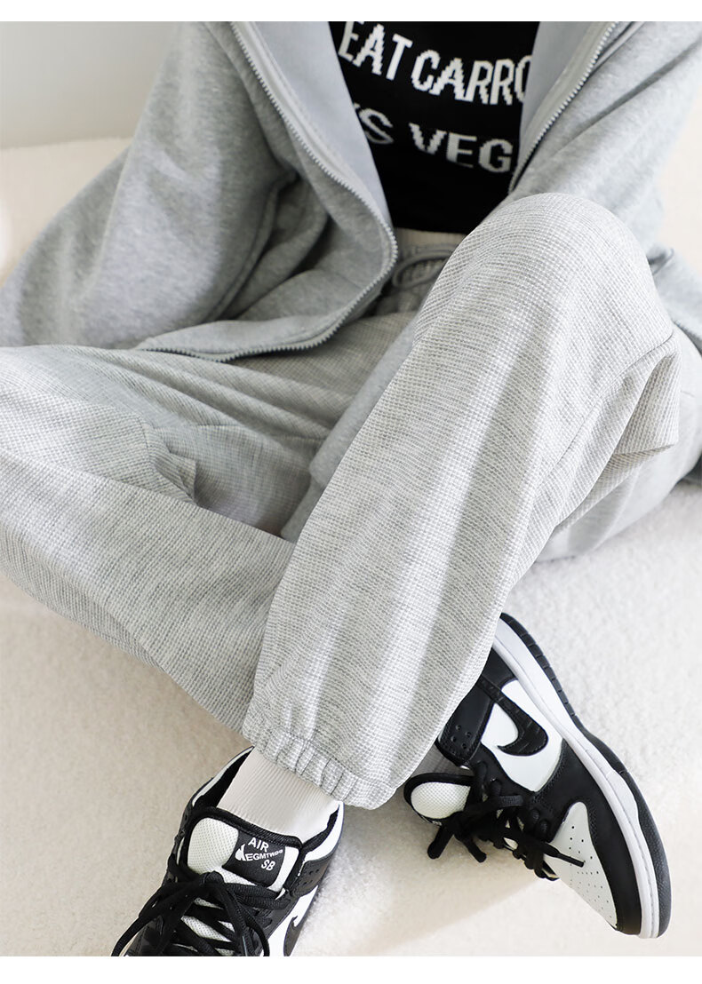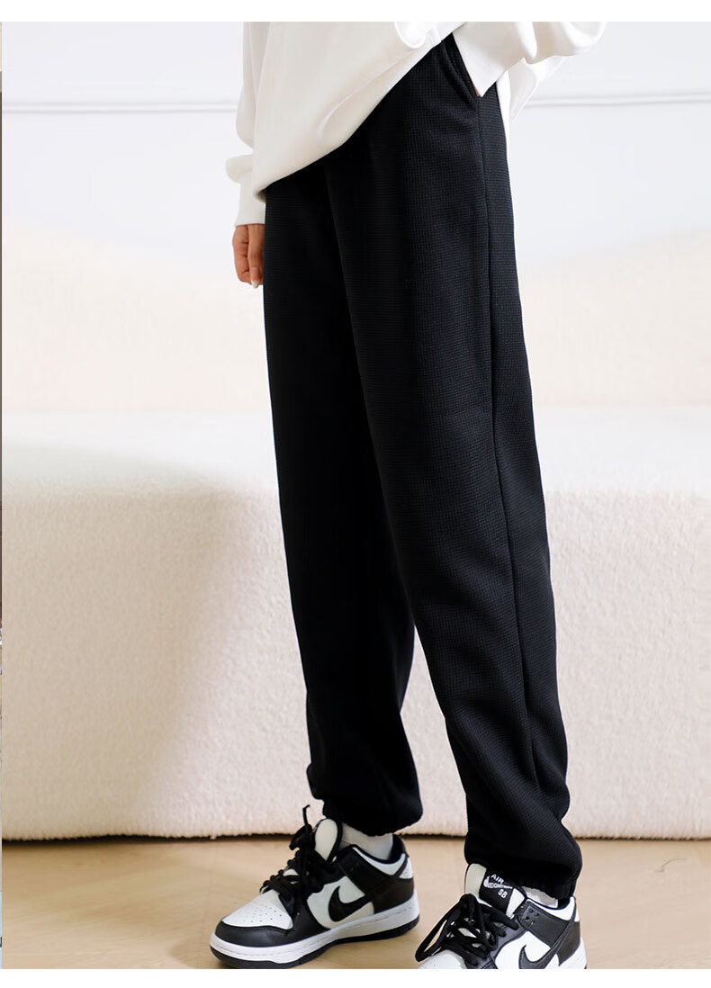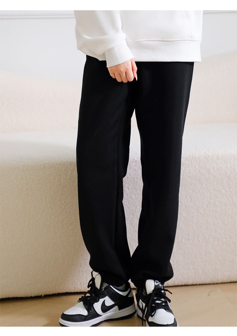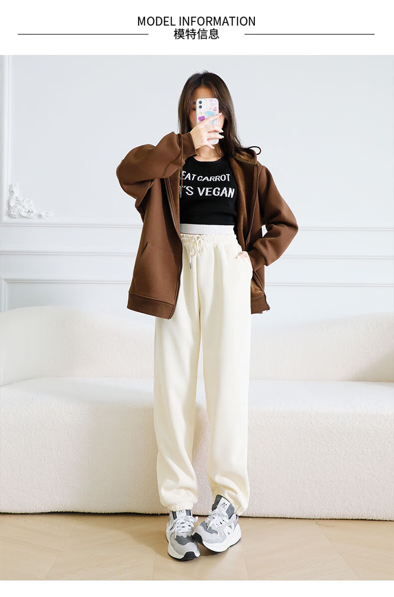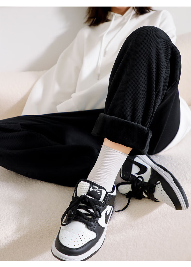 JEANSWEST waffle plus velvet leggings women's sweatpants 2025 new autumn and winter student warm loose casual sweatpants hemp gray burgundy flowers_K 3XL