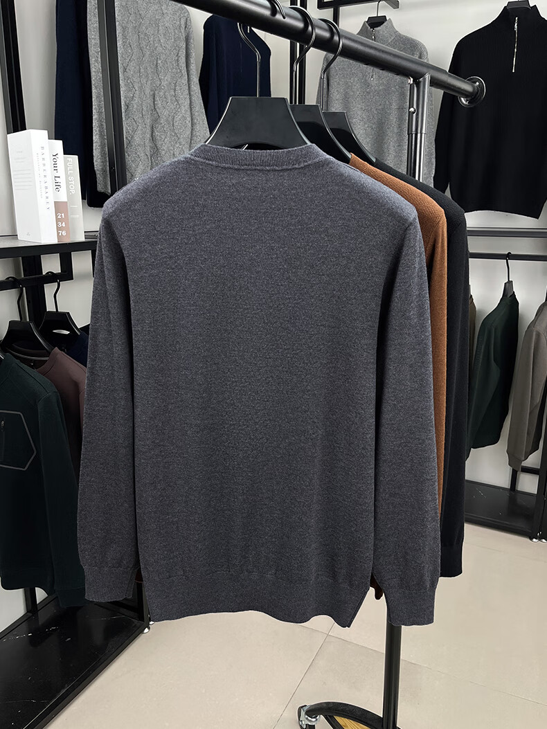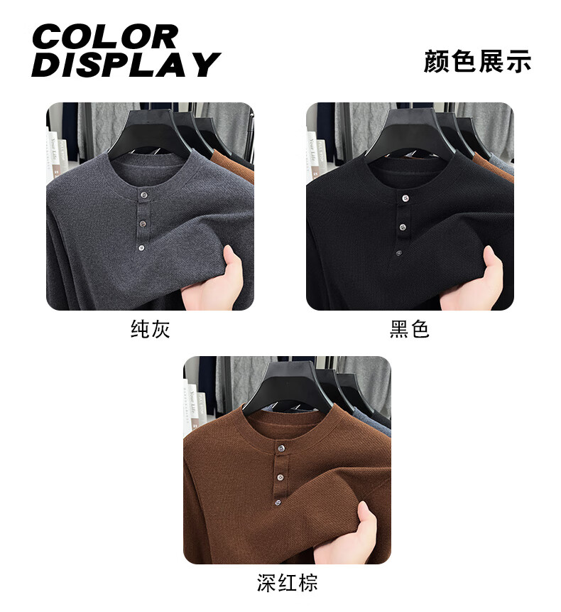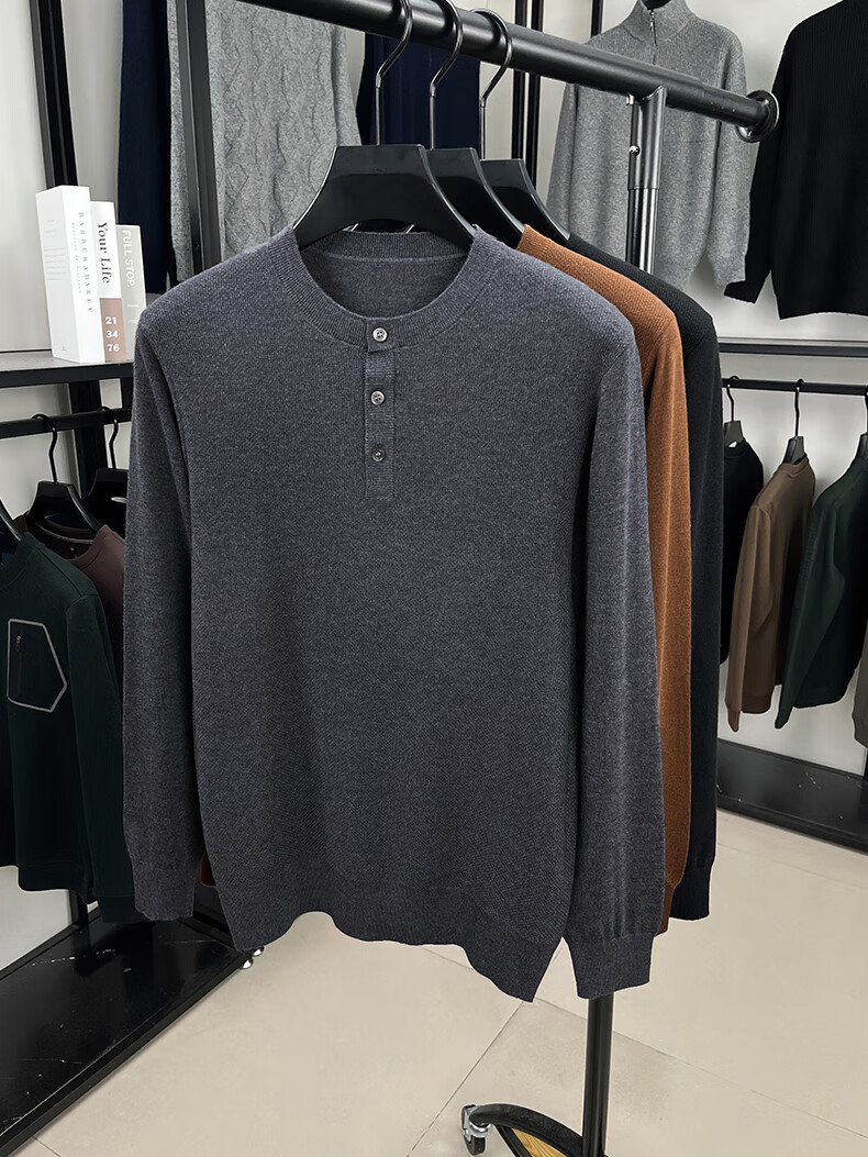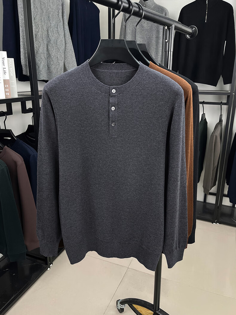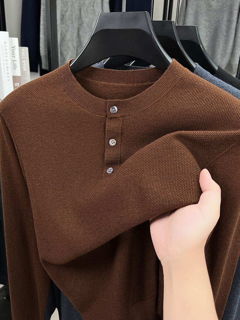 EMZ Ordos high-end worsted wool sweater men's Henry round neck casual fashion thin sweater spring and autumn wool dark red brown M