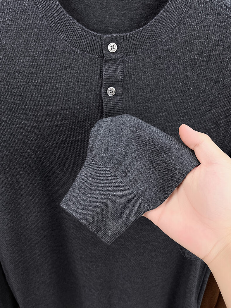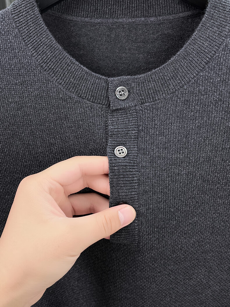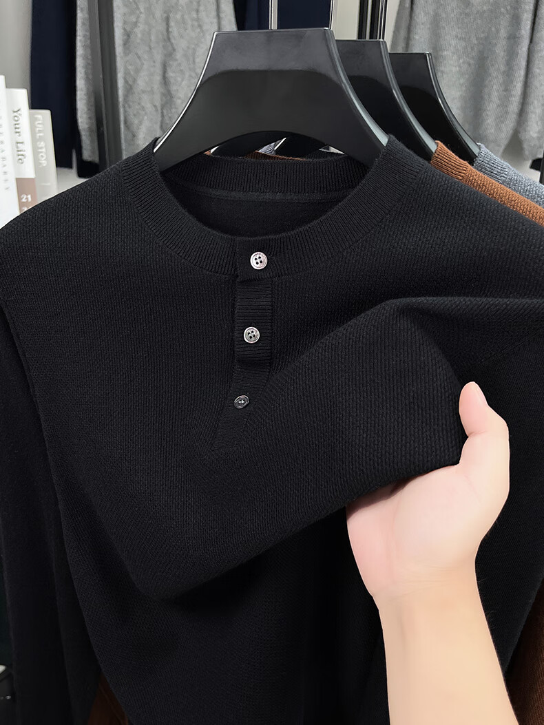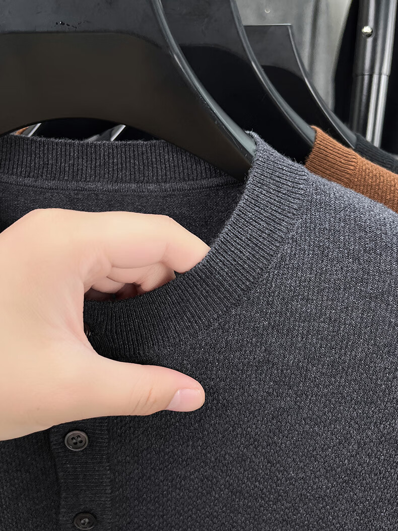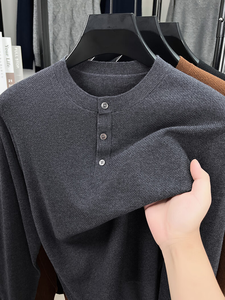 EMZ Ordos high-end worsted wool sweater men's Henry round neck casual fashion thin sweater spring and autumn wool dark red brown M