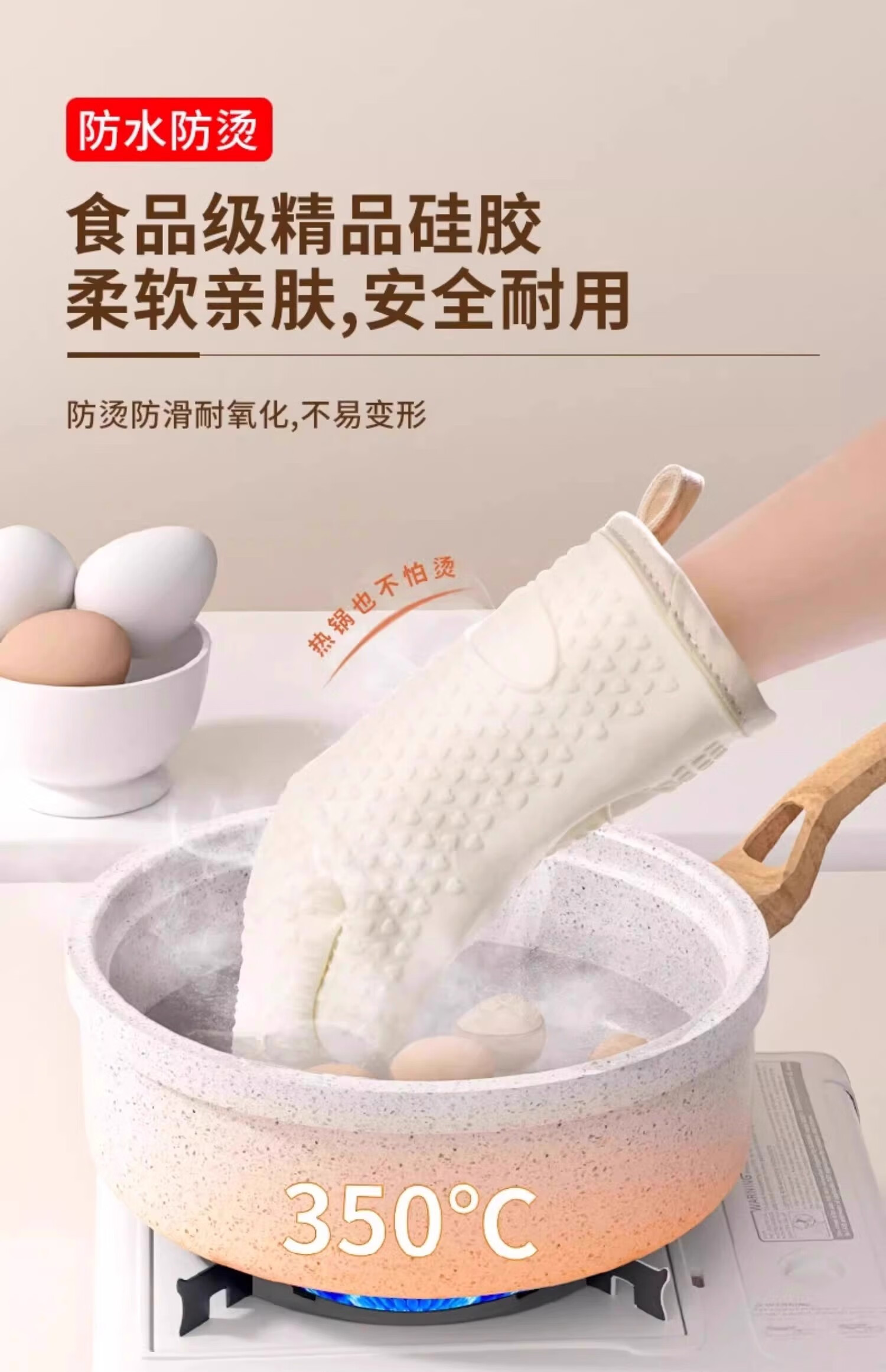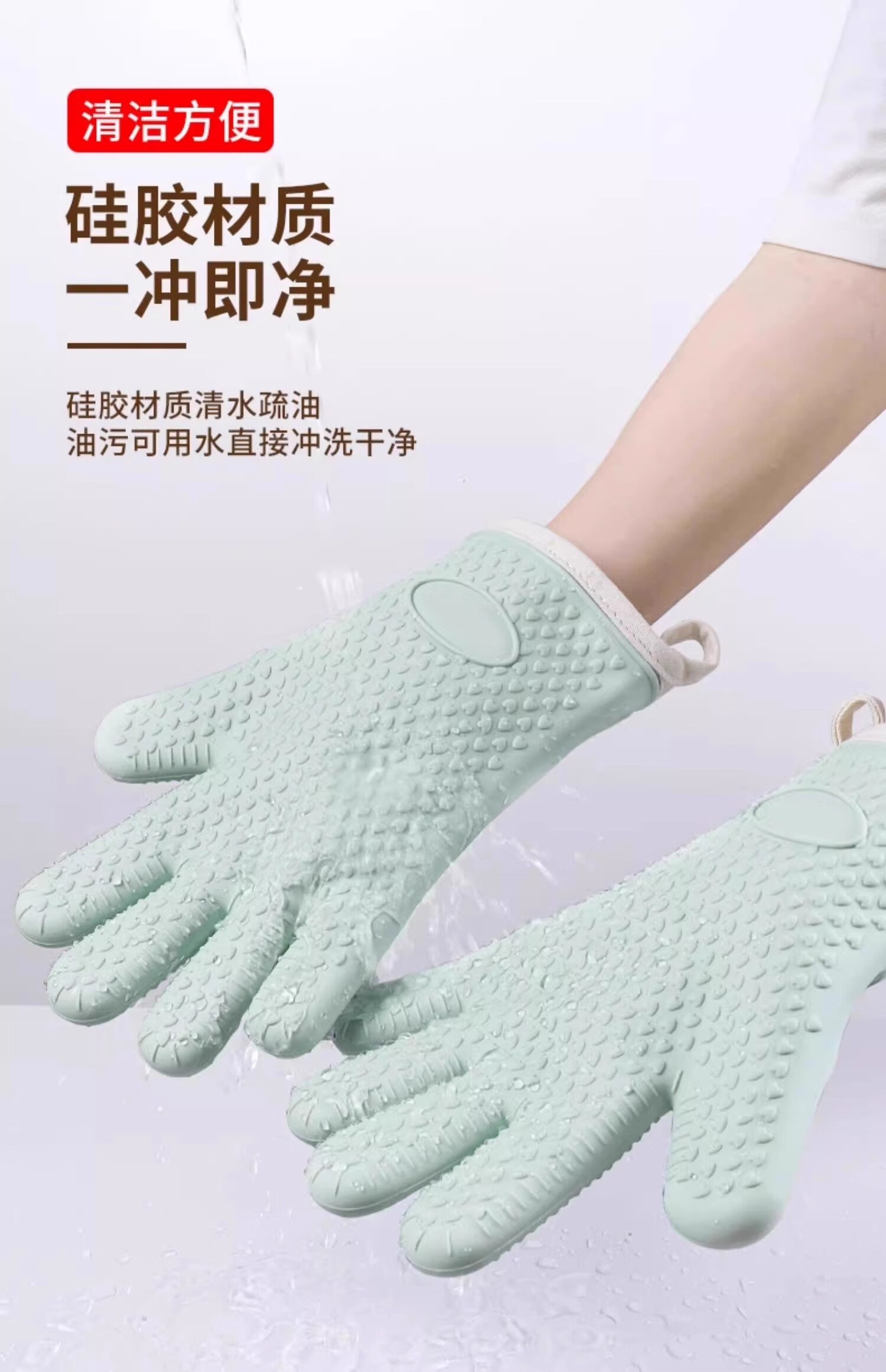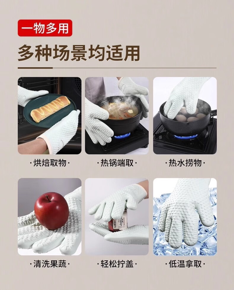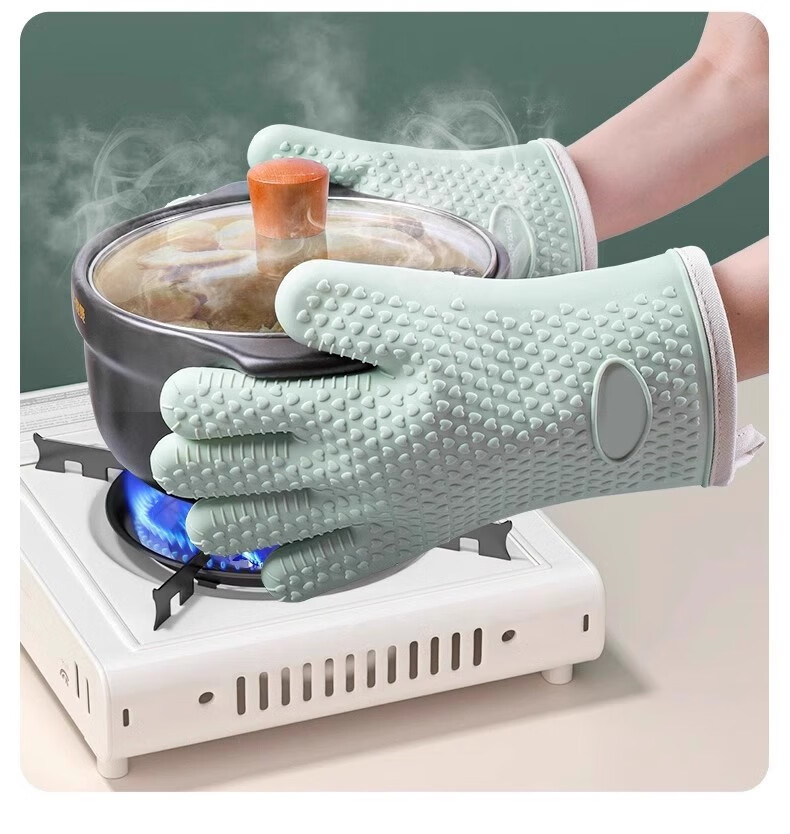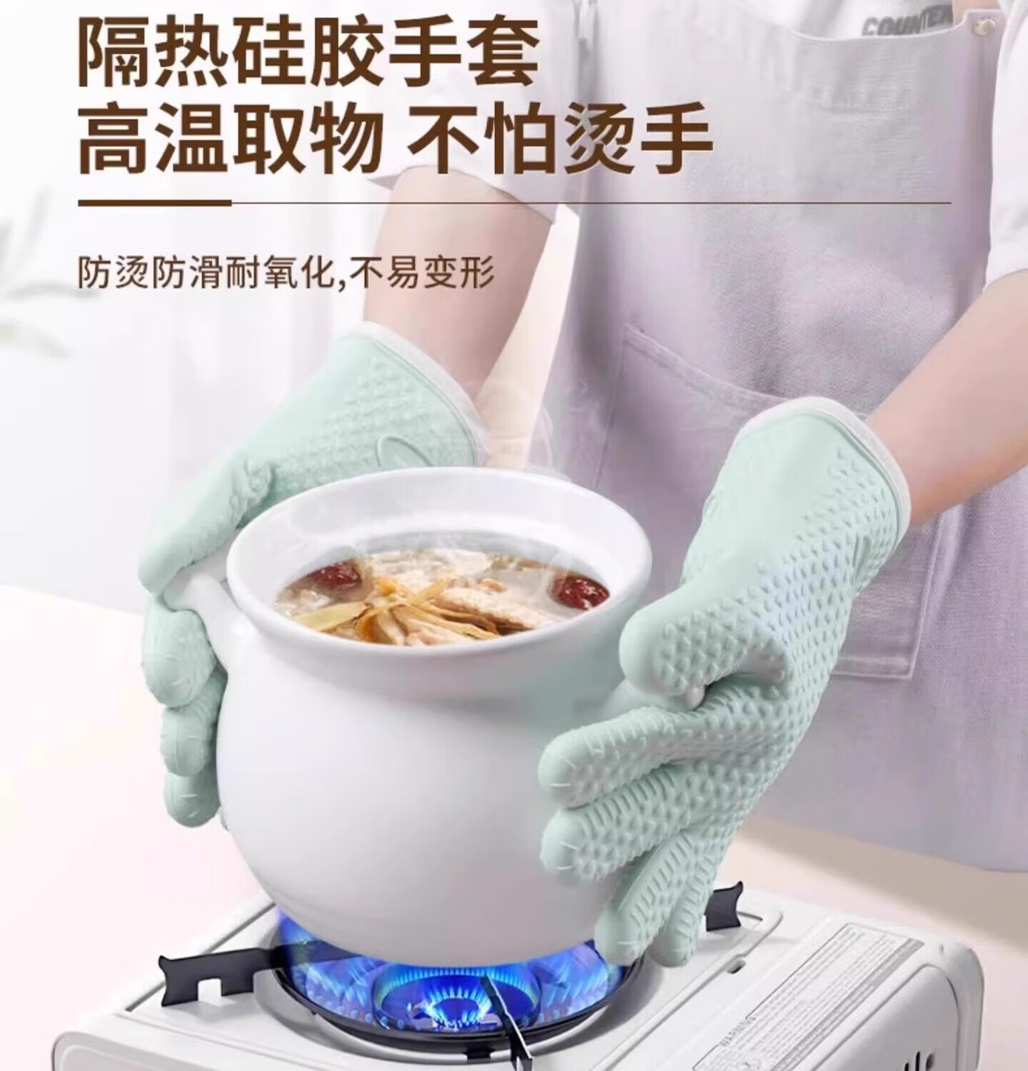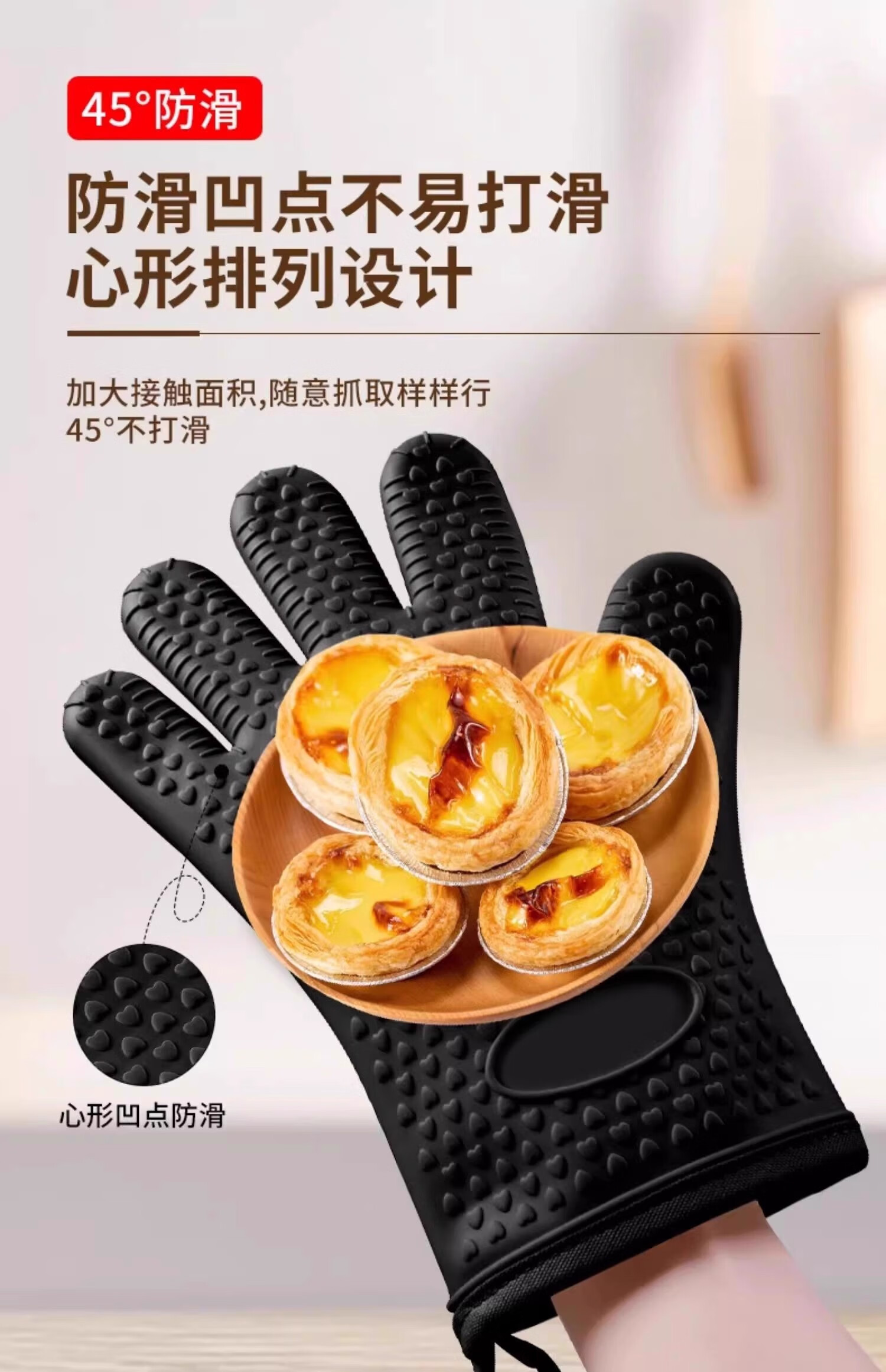FVFH German heat-proof anti-scalding gloves, high temperature oven, microwave oven, baking, kitchen special silicone thickened anti-slip and heat-resistant, thickened and heat-resistant, rock gray pair (lightweight and flexible/unisex)