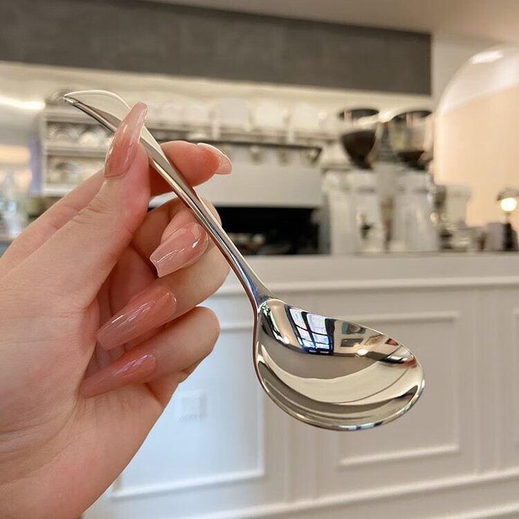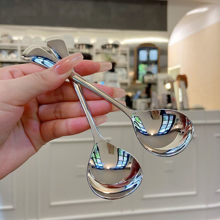 Ostar thickened stainless steel spoon for household Korean style simple and cute internet celebrity eating spoon for adults creative long handle round spoon * antibacterial and anti-bending 1 piece - water drop spoon food grade
