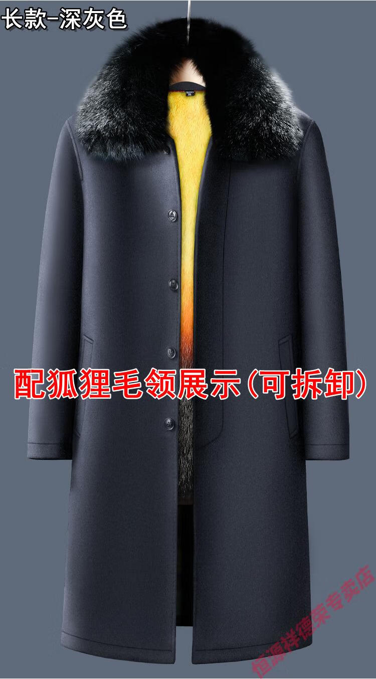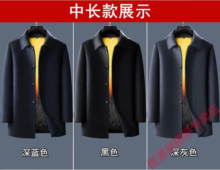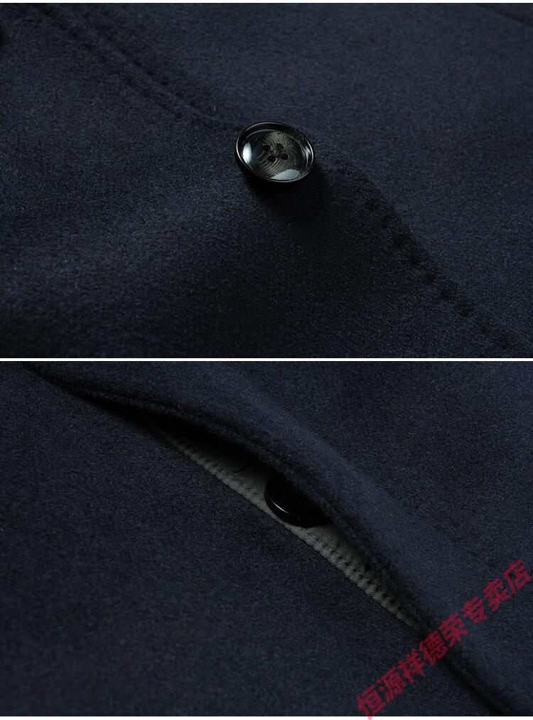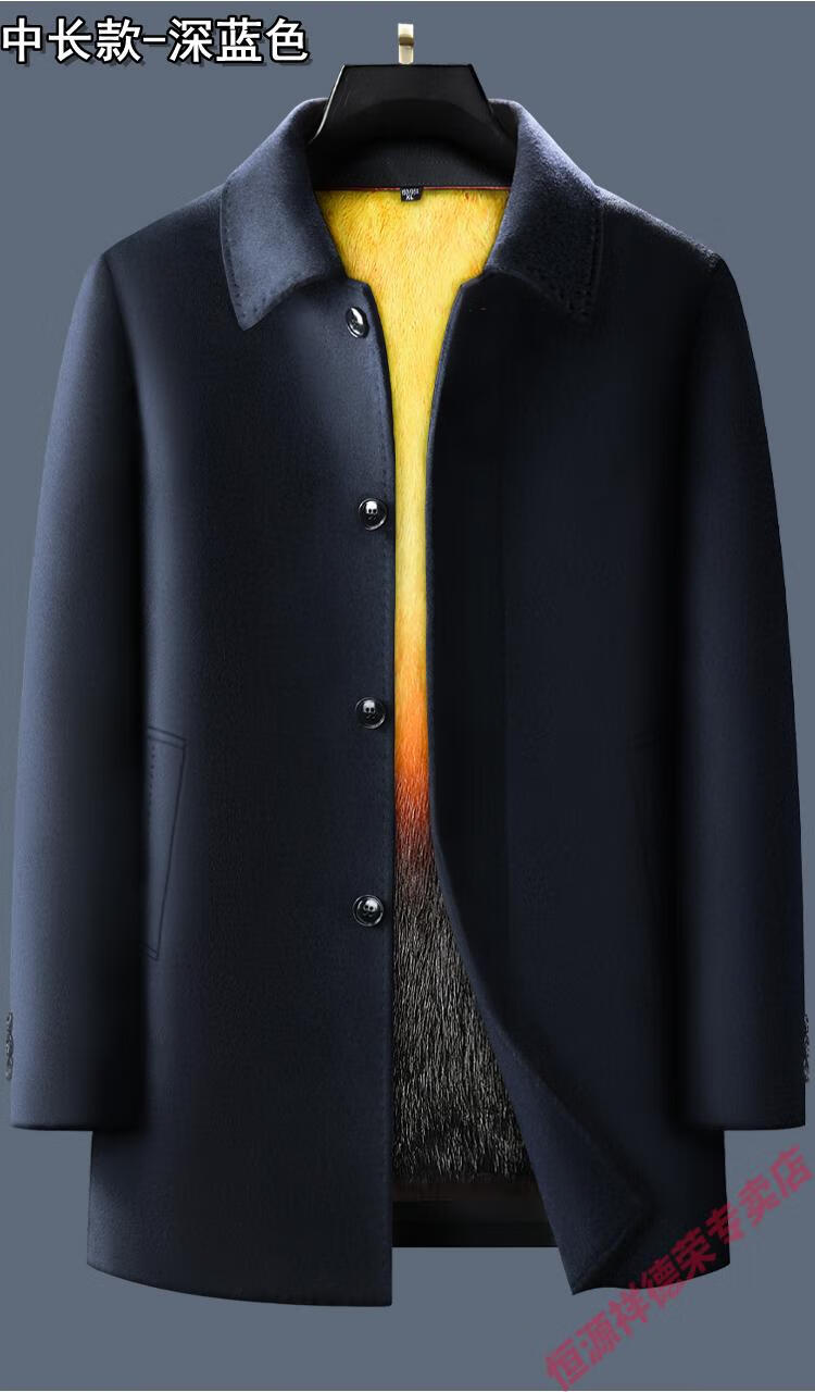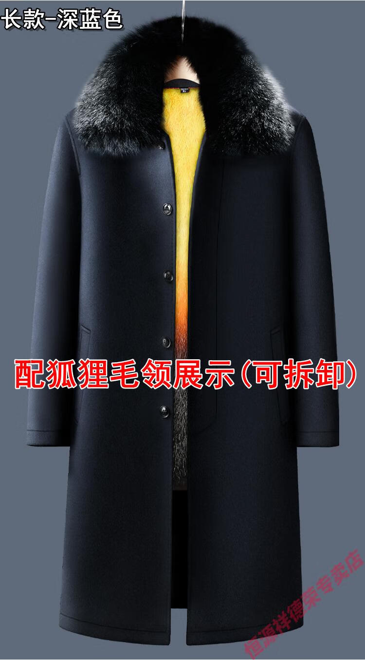 Hengyuanxiang winter thickened pure cashmere coat men's woolen woolen mid-length double-sided middle-aged and middle-aged windbreaker coat long/dark blue (sable/cotton sleeves) hairless collar L (recommended 105~120 Jin Jin equals 0.5 kg)