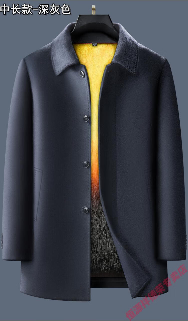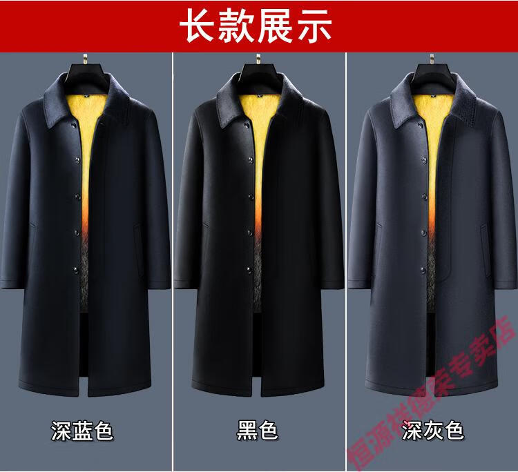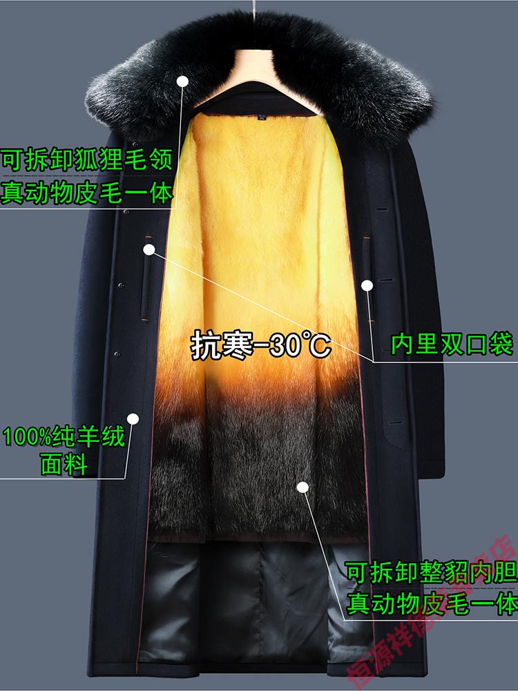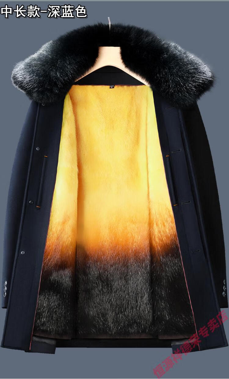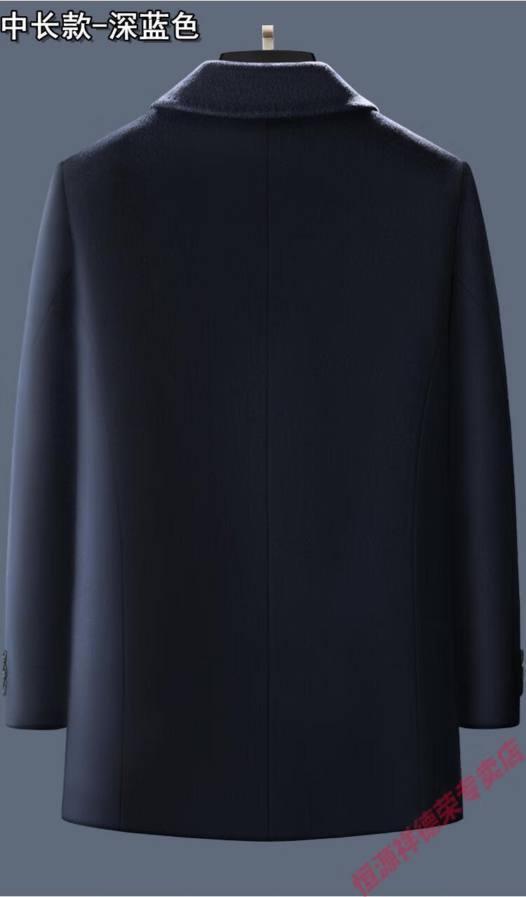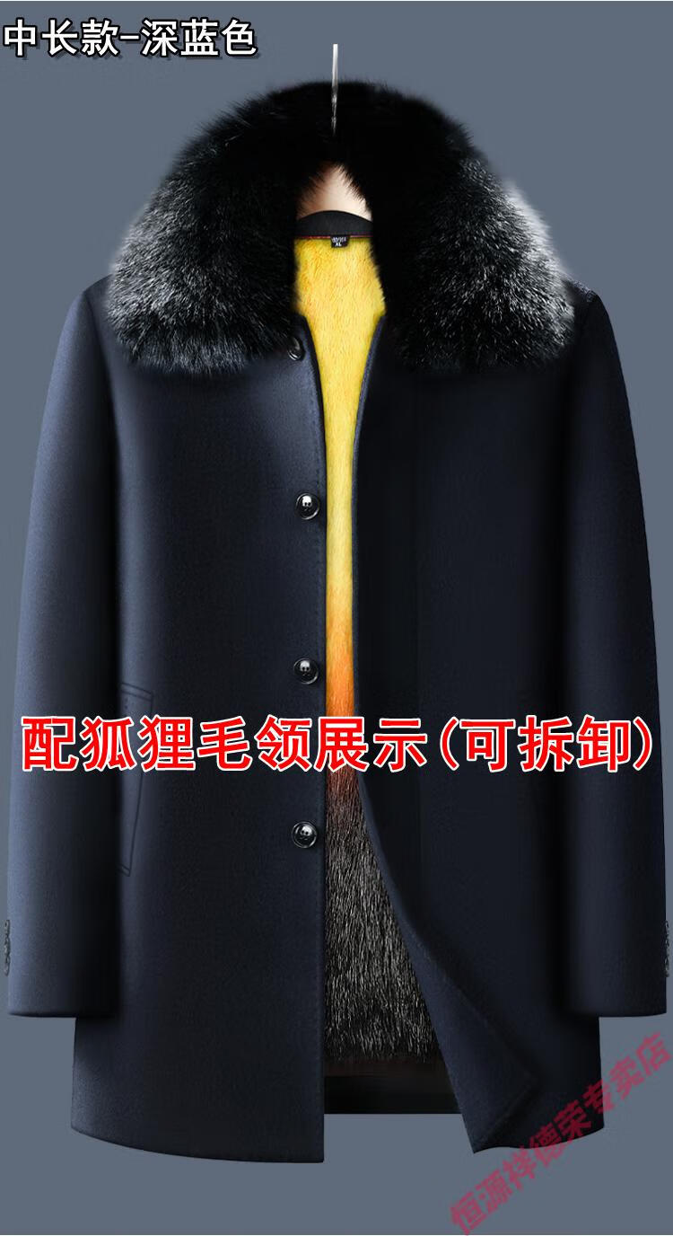 Hengyuanxiang winter thickened pure cashmere coat men's woolen woolen mid-length double-sided middle-aged and middle-aged windbreaker coat long/dark blue (sable/cotton sleeves) hairless collar L (recommended 105~120 Jin Jin equals 0.5 kg)