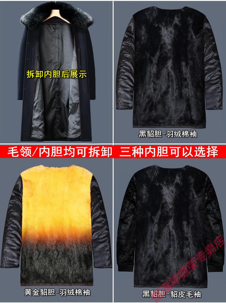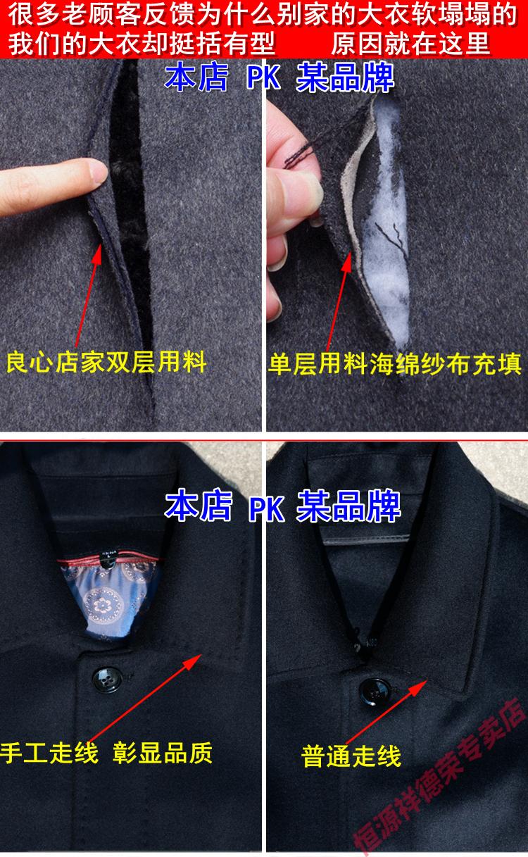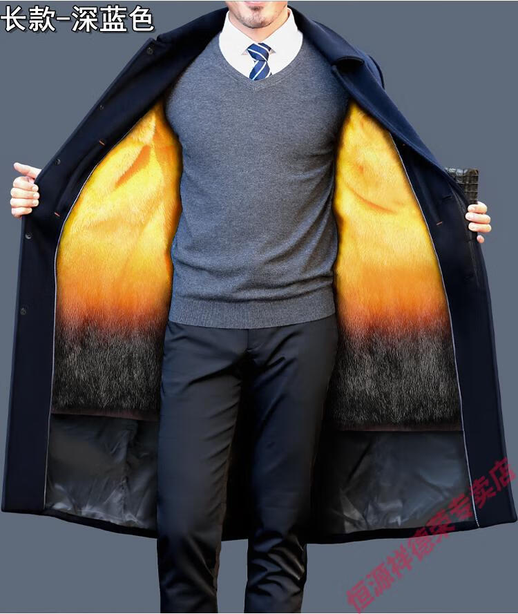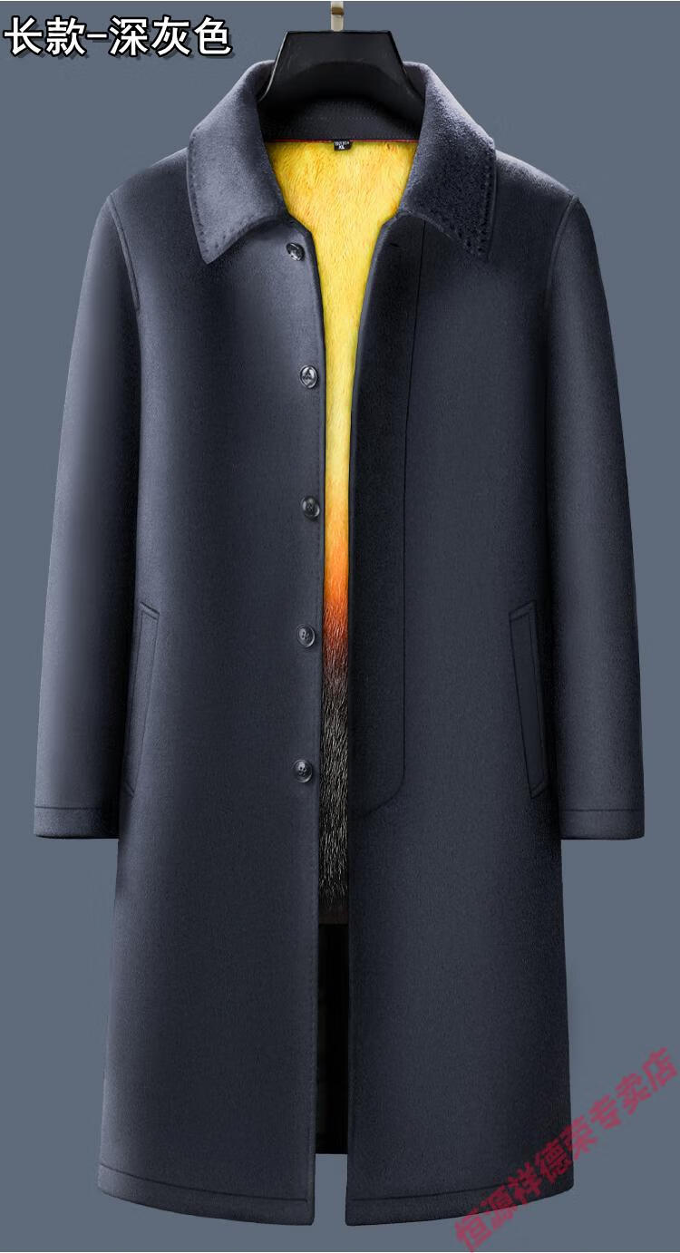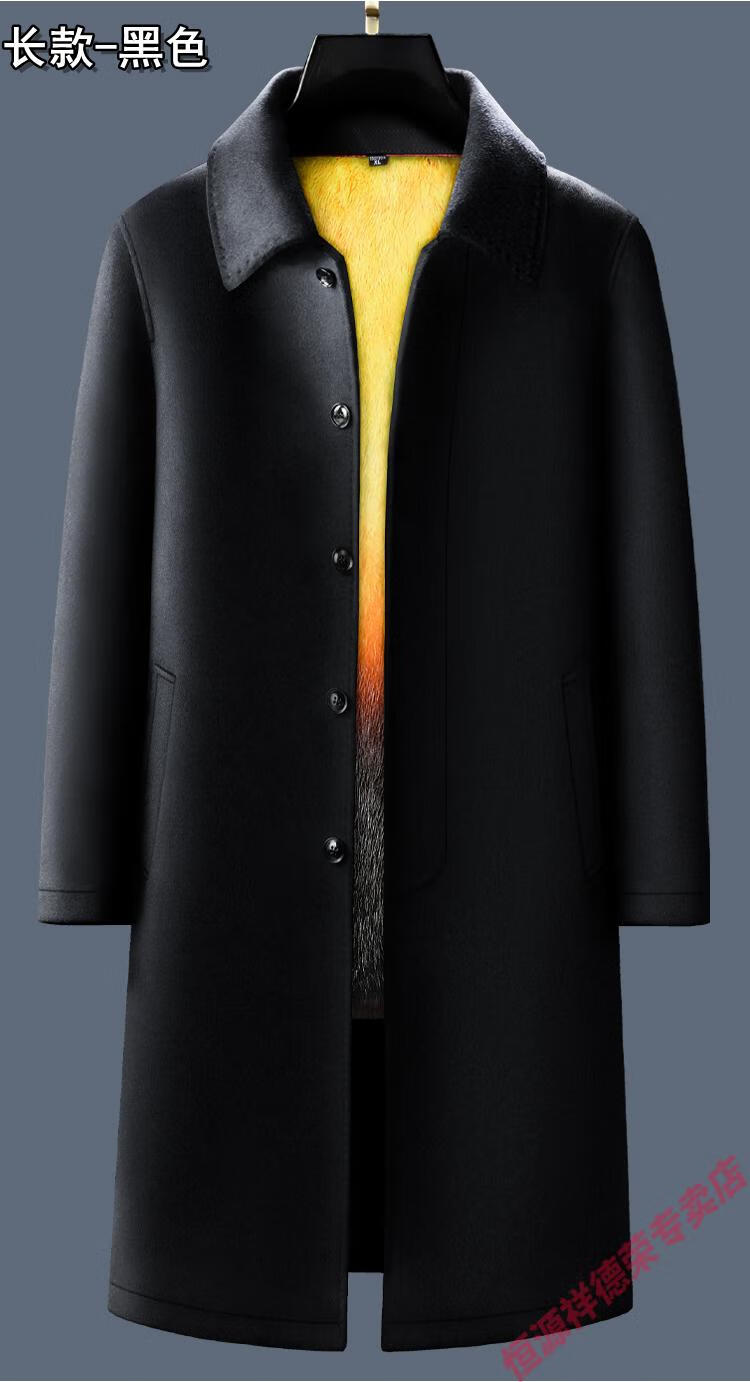 Hengyuanxiang winter thickened pure cashmere coat men's woolen woolen mid-length double-sided middle-aged and middle-aged windbreaker coat long/dark blue (sable/cotton sleeves) hairless collar L (recommended 105~120 Jin Jin equals 0.5 kg)