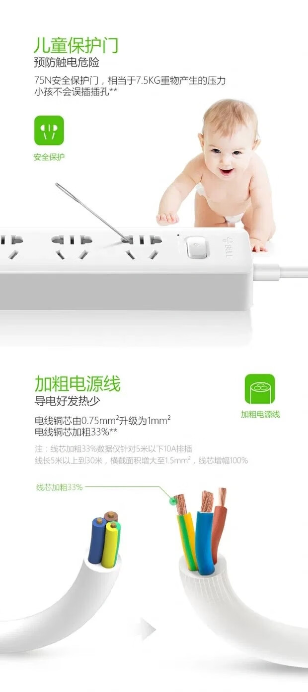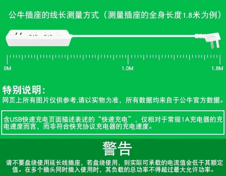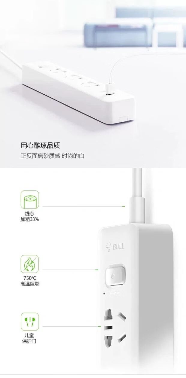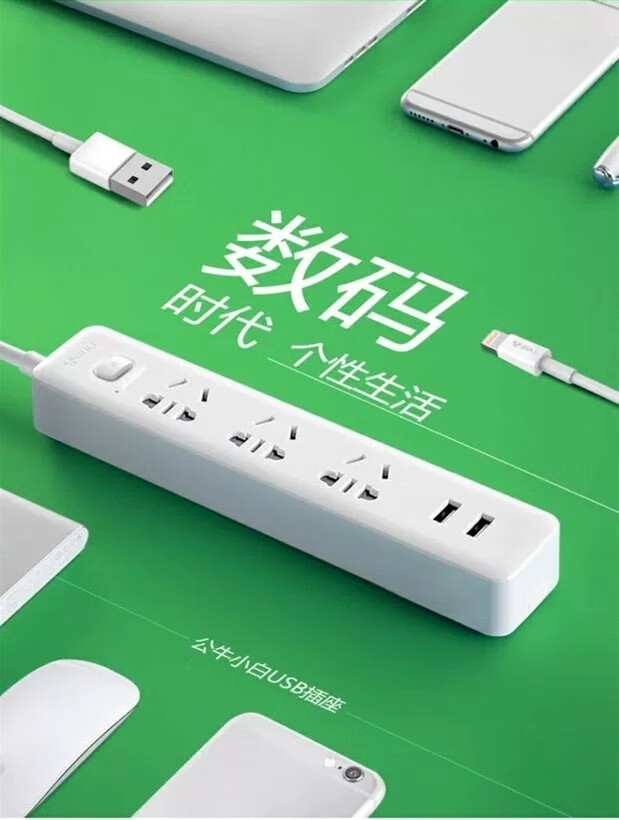 Bull socket USB socket multi-functional socket strip strip strip with switch smart socket strip 2-pin plug_1.5 meters two sockets two USB