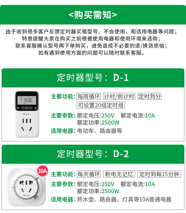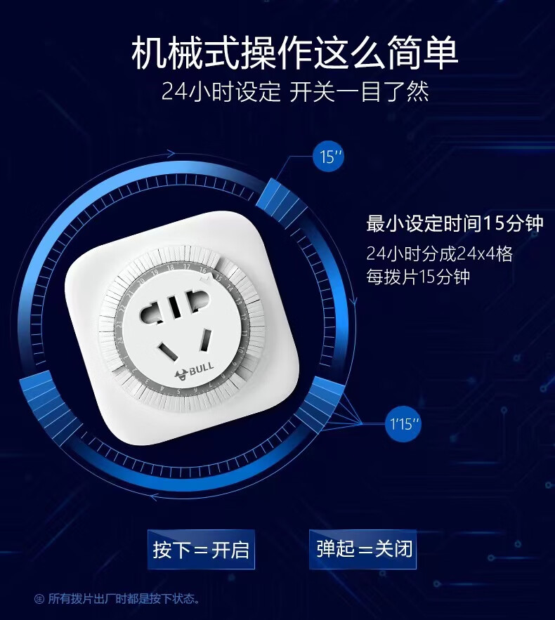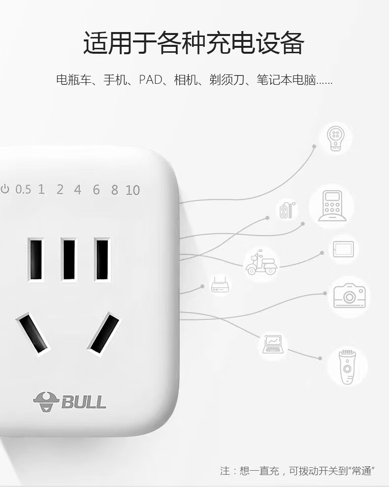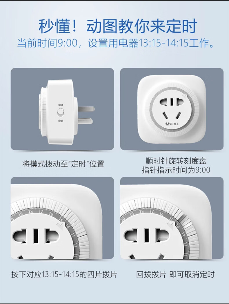 Bull household electric car battery mobile phone charging automatic power outlet timer 10A/16A 10A two-legged D-3 power-off mechanical