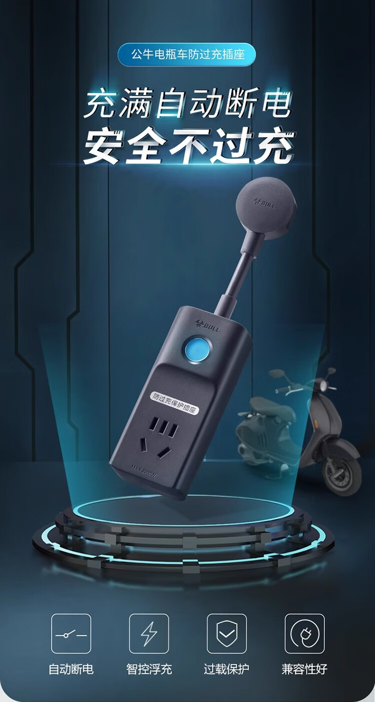 Bull smart electric vehicle charging protector automatic power-off socket battery car charging timer plug-in board scheduled power-off D-7 within 10 hours