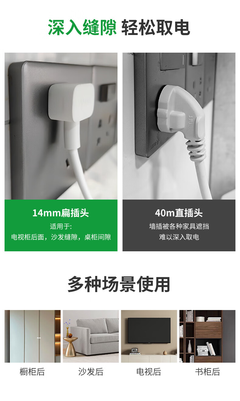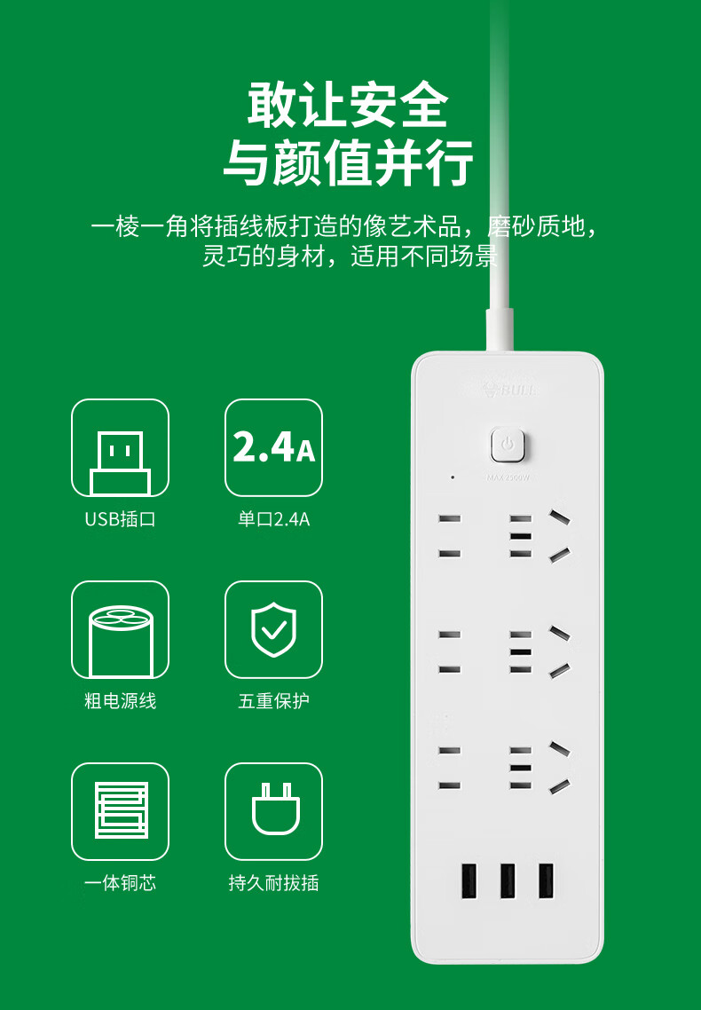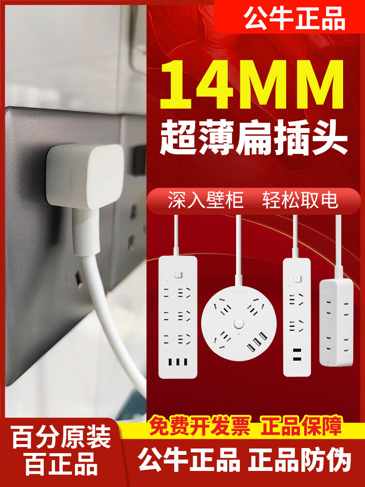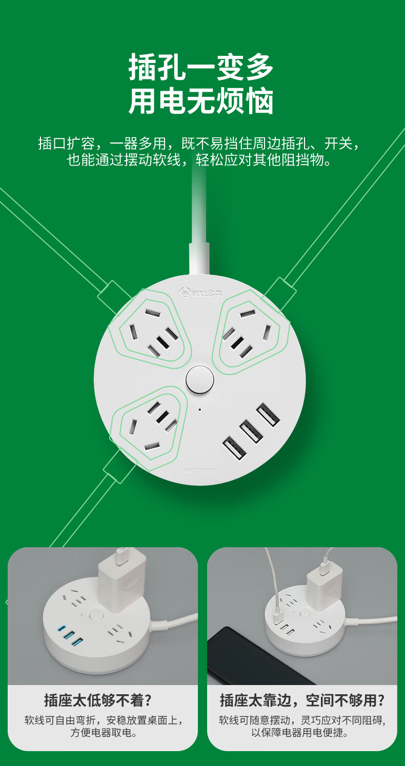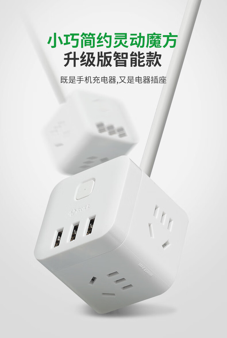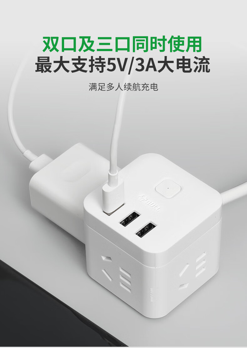 Bull Flat Plug Socket Wiring Cable Board TV Sofa Gap Flat Head Plug Power Cord Cord Extension Cord Line Three Plug Luxurious Rubik's Cube 3-Position with 3USB Automatic Power Off_Swingable 3-Position