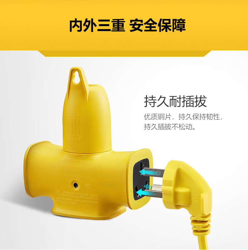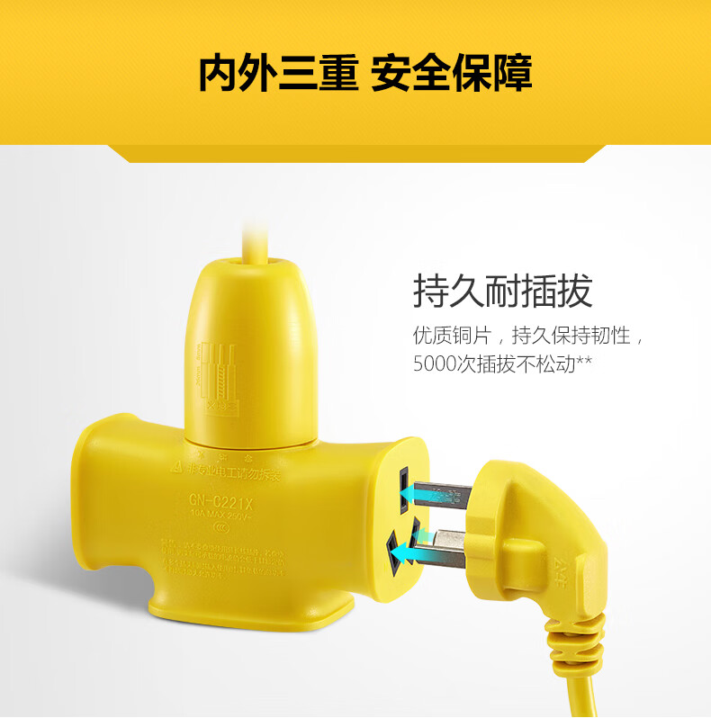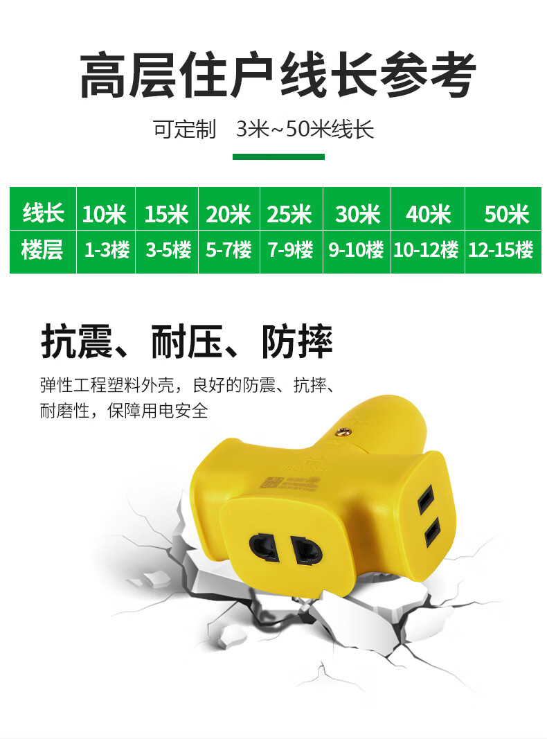 Bull anti-fall socket, dedicated for construction site engineering, 10-meter floor drag strip, 15-meter row, 20-meter long line, straight type, 2 sockets_C3 3 meters