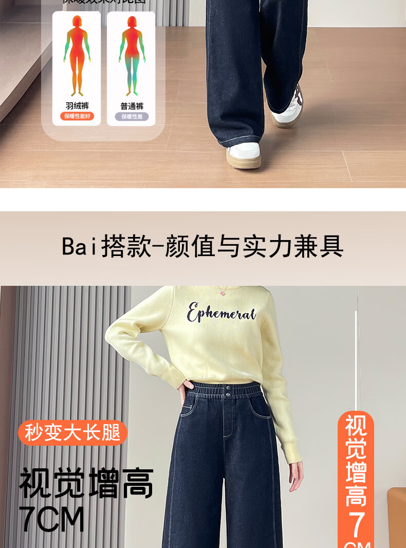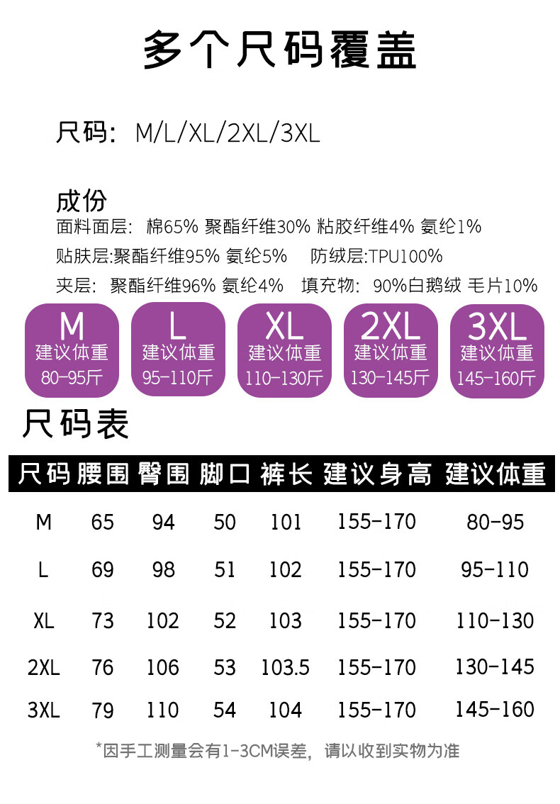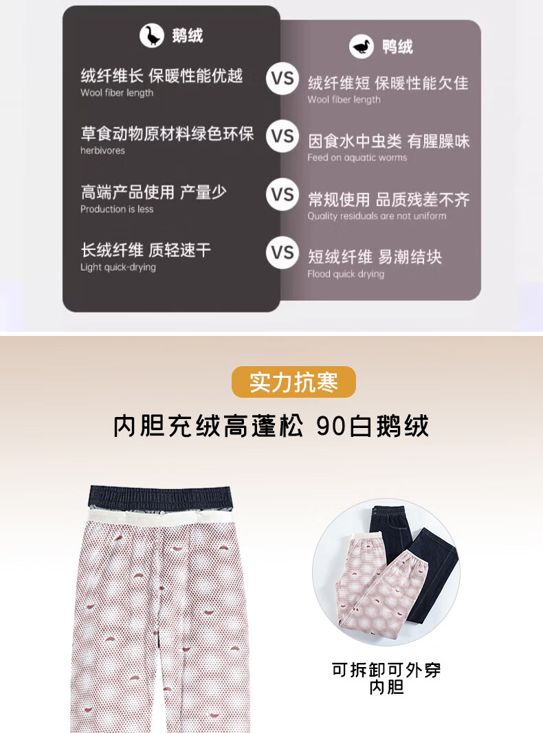 RLAS White Goose Down Down Pants Women's Outerwear 2025 New Plus Velvet Thickened Liner Removable Northeast Coldproof Warm Cotton Pants Blue M 80-95Jin Jin equals 0.5 kg
