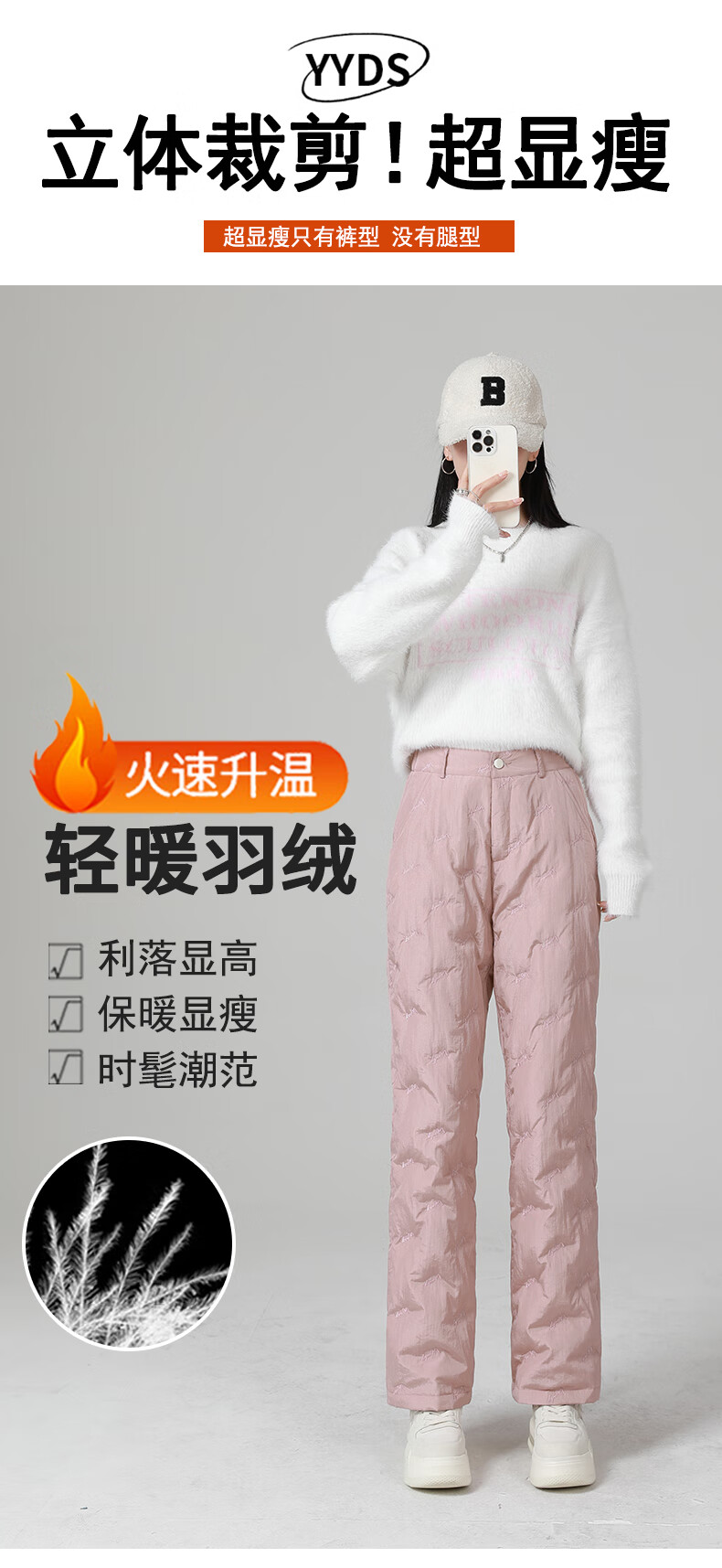 RLAS straight down pants for women's winter outer wear 2026 new thickened - 40 degrees extreme cold northeastern outdoor cold-resistant cotton pants black S