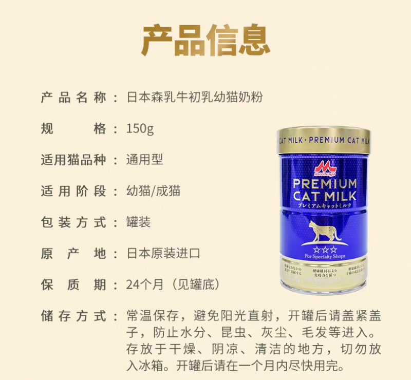 Mori Milk Japan Mori Milk Original Imported Cat Milk Powder Newborn Young Pets Imported Goat Milk Powder Adult Lactoferrin Camp Tianqibiao Anti-Counterfeiting