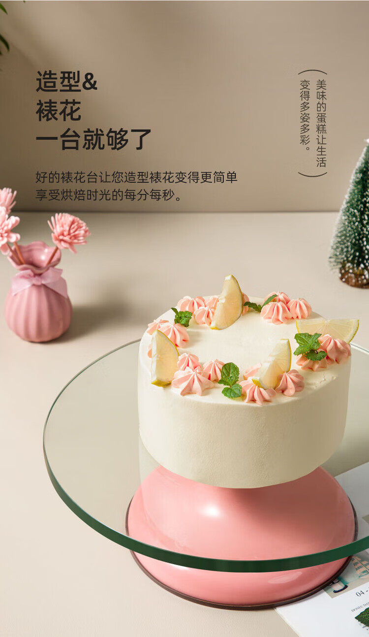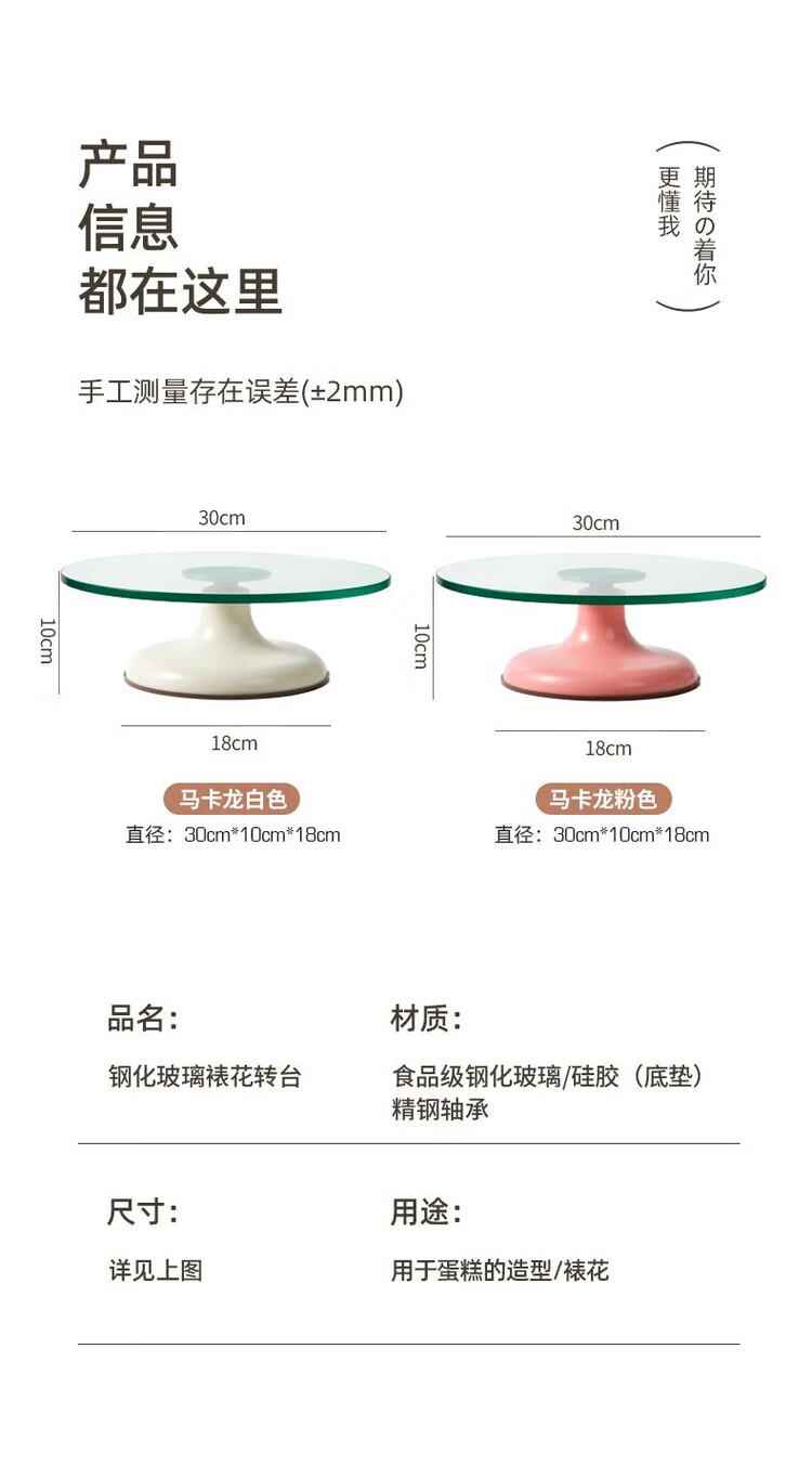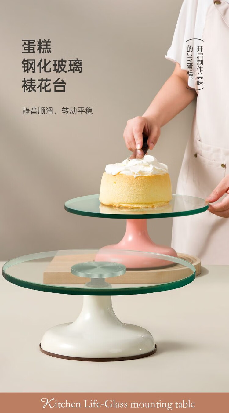 Oupin Yuan Cake Turntable Tempered Glass Decoration Cream Turntable Rotating Plaster Decoration Table Household Commercial Baking Tools White