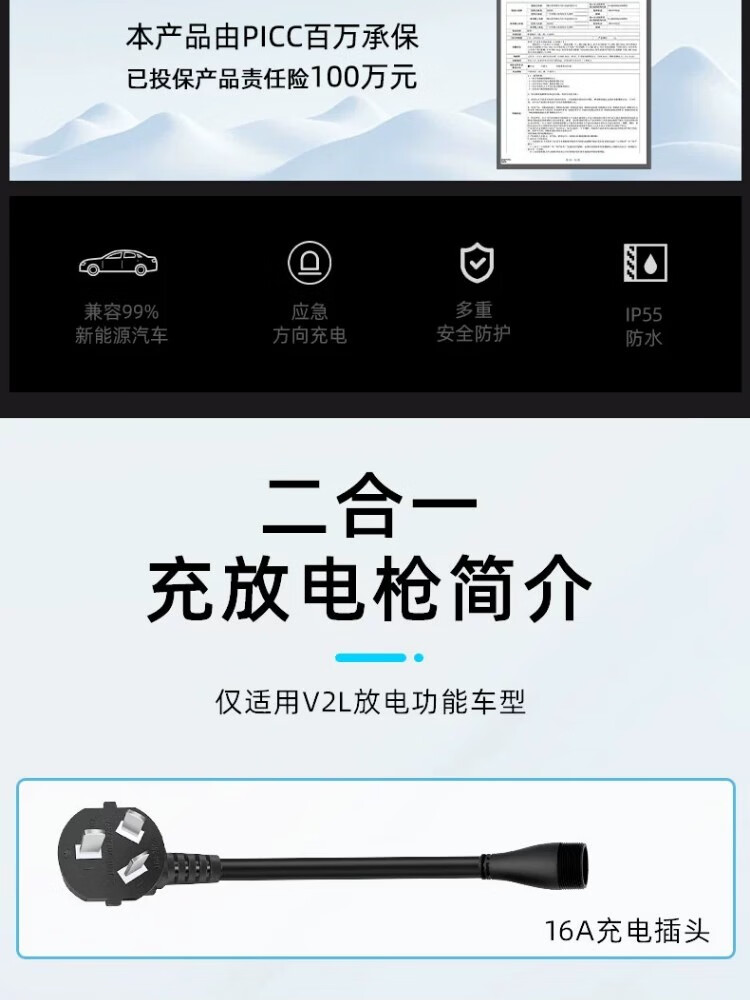 Huawei asks the world m8/m9/m7/m5 car with integrated charging and discharging gun. Portable new energy vehicle charging gun with integrated charging and discharging gun. Car charging. 10m standard model with integrated charging and discharging. The car must have a discharge function.