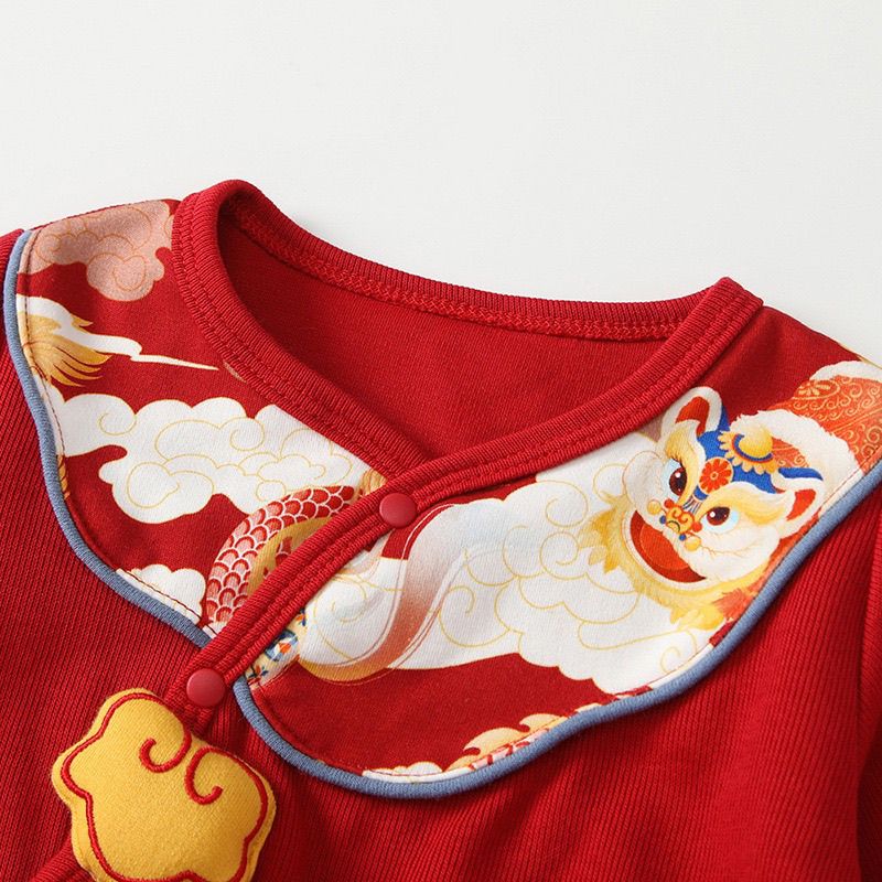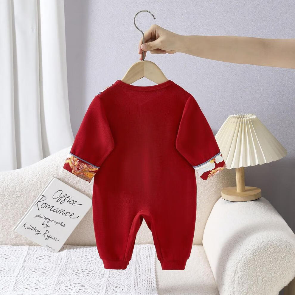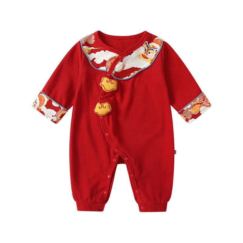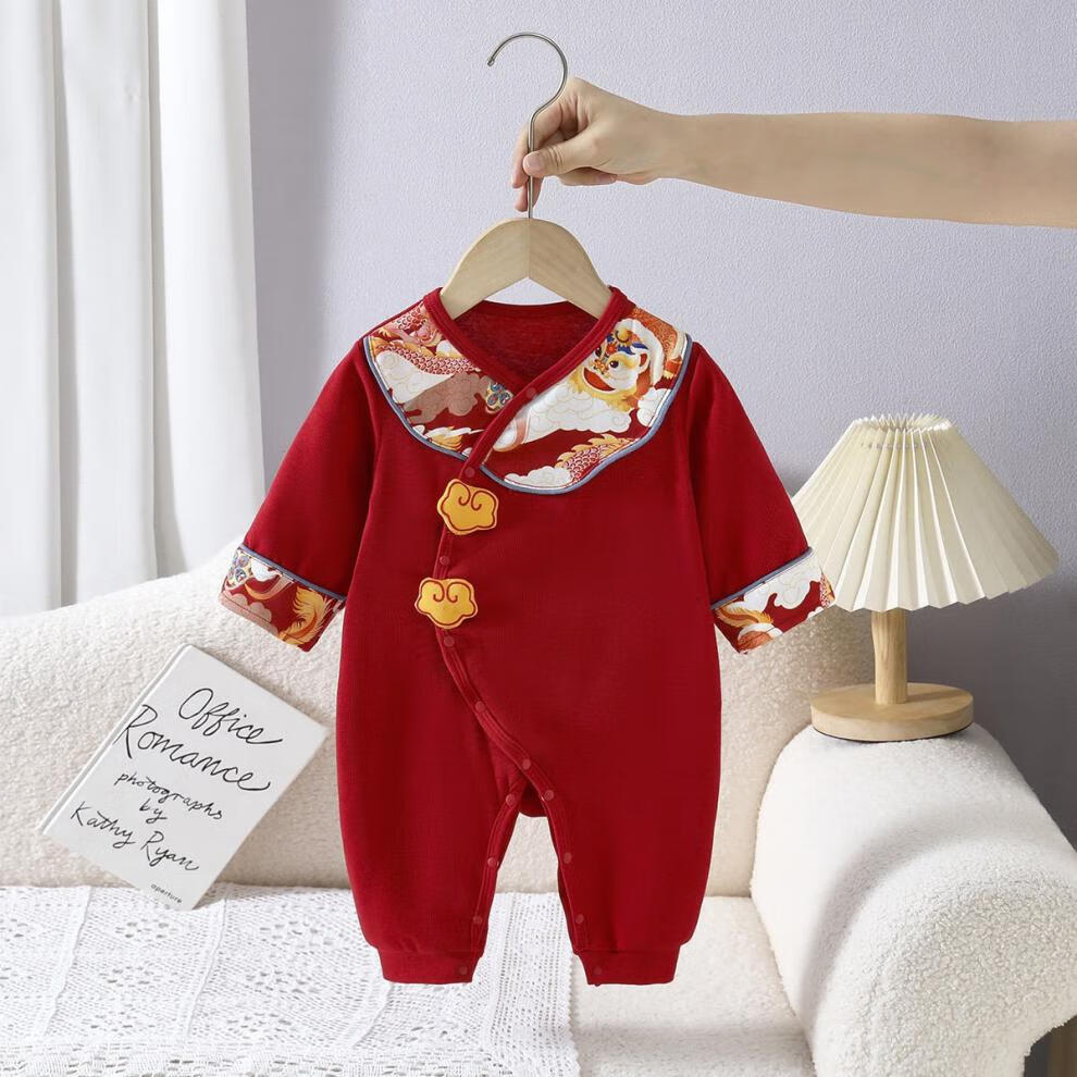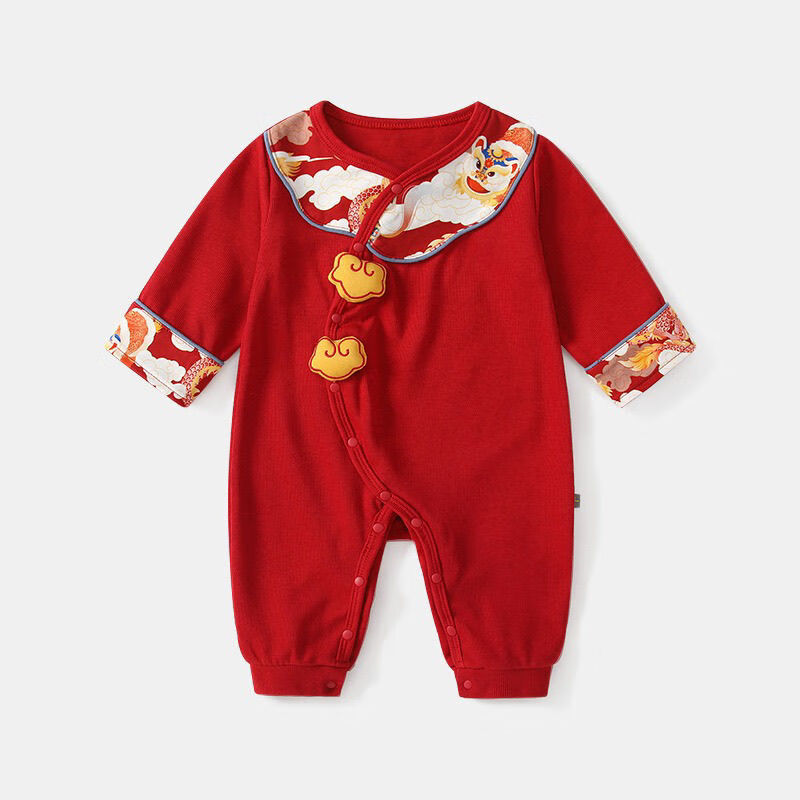 G.duck little yellow duck baby clothes spring and autumn full moon 100 days old red festive baby pure cotton jumpsuit one-piece dress red one-piece jumpsuit 59cm 59