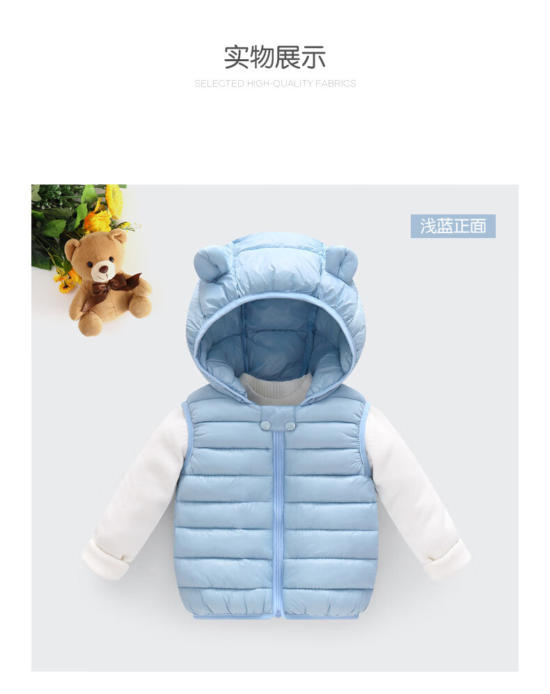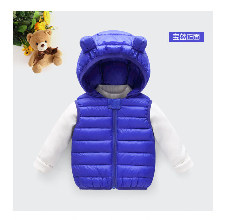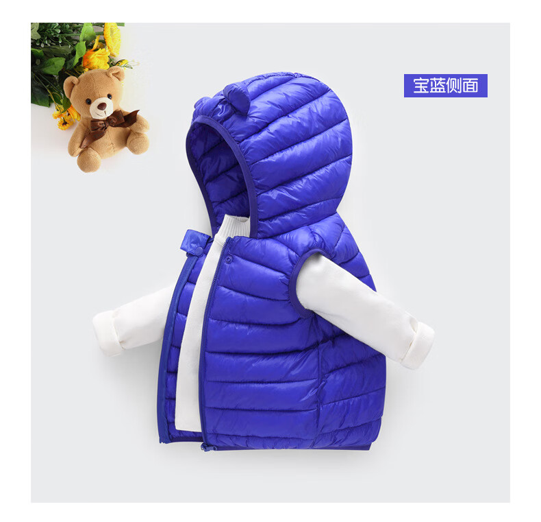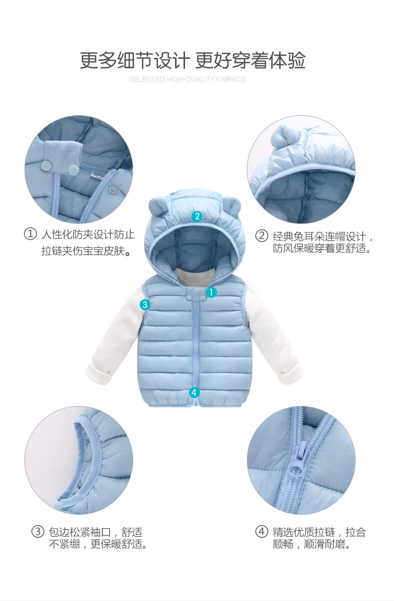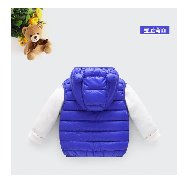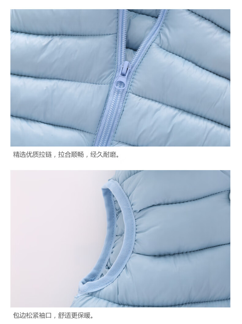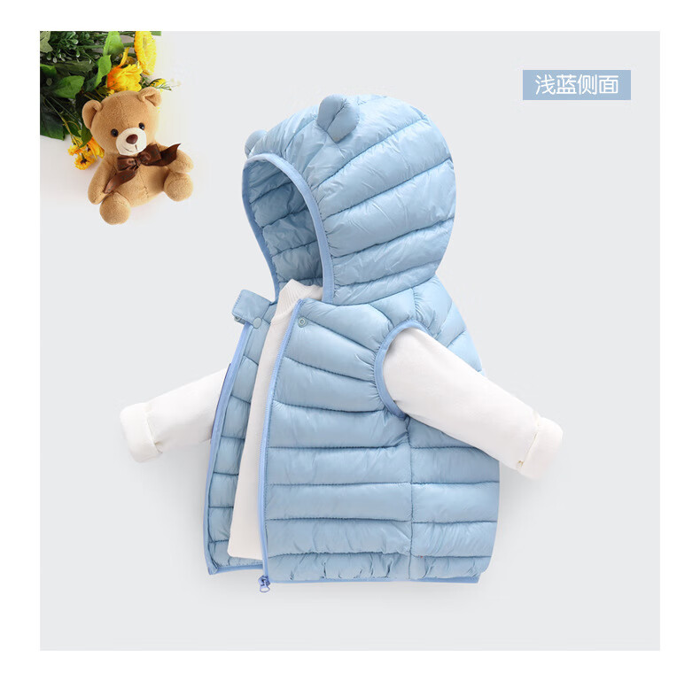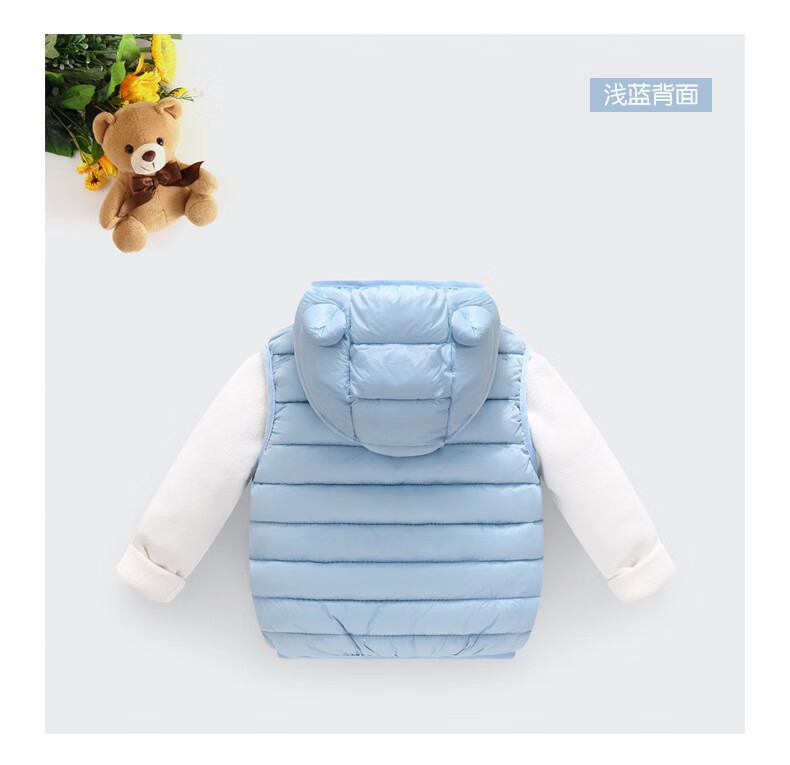 2025 Autumn and Winter New Products Children's Vest Down Cotton Baby Waistcoat Lightweight Vest Boys and Girls Hooded Jacket Light Blue 90 Height 75-85cm/Weight 25Jin Jin is equal to within 0.5 kg