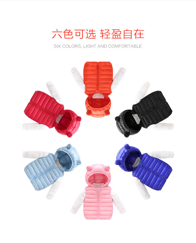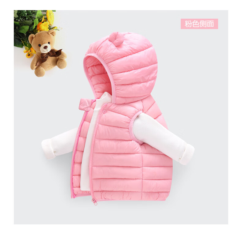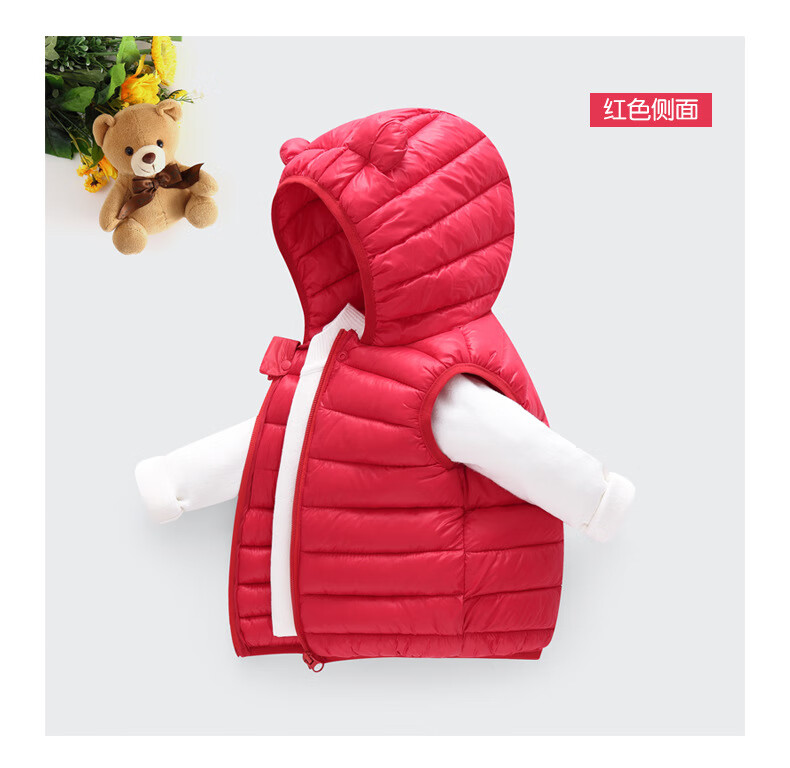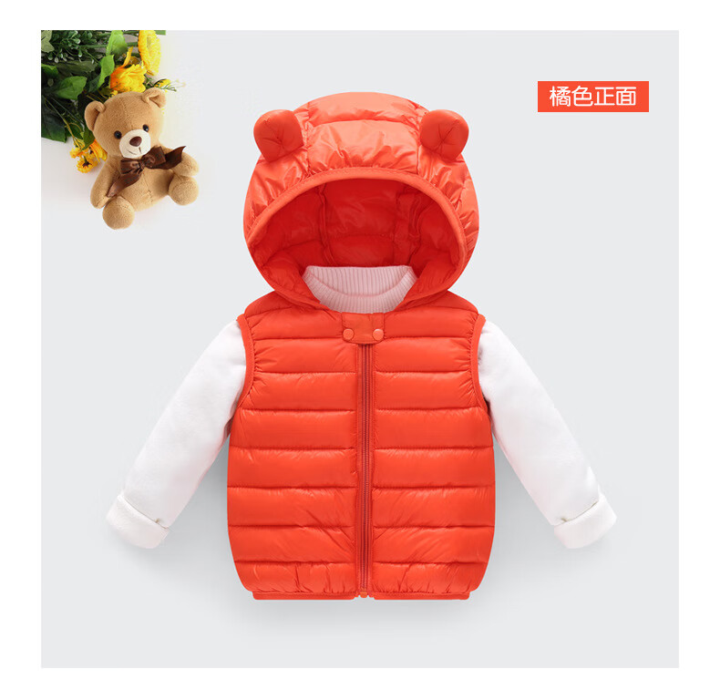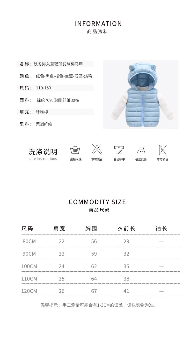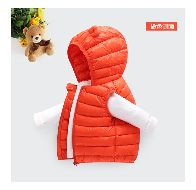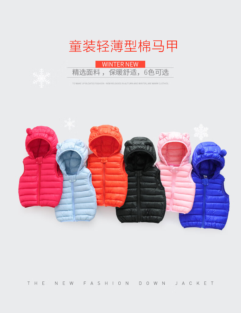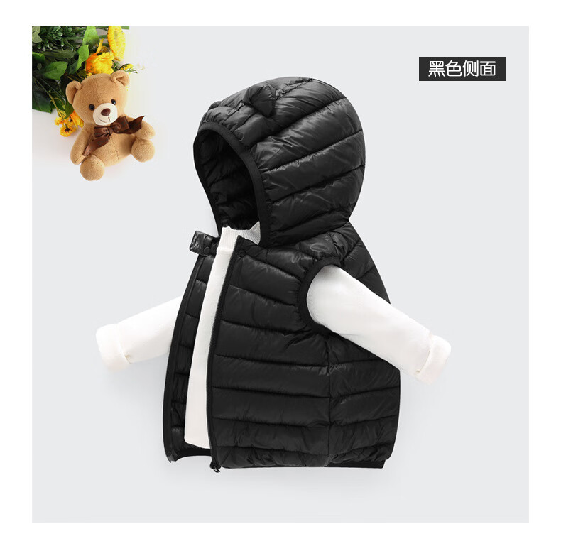 2025 Autumn and Winter New Products Children's Vest Down Cotton Baby Waistcoat Lightweight Vest Boys and Girls Hooded Jacket Light Blue 90 Height 75-85cm/Weight 25Jin Jin is equal to within 0.5 kg