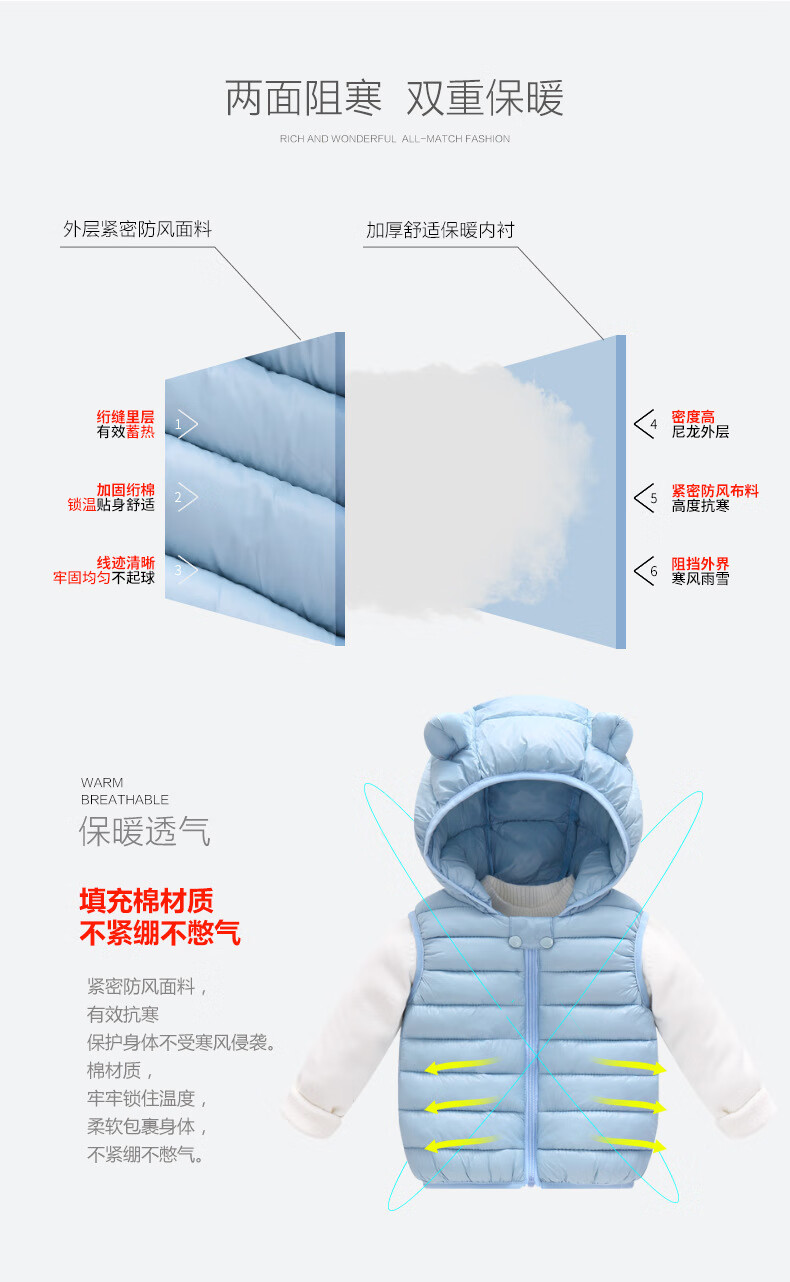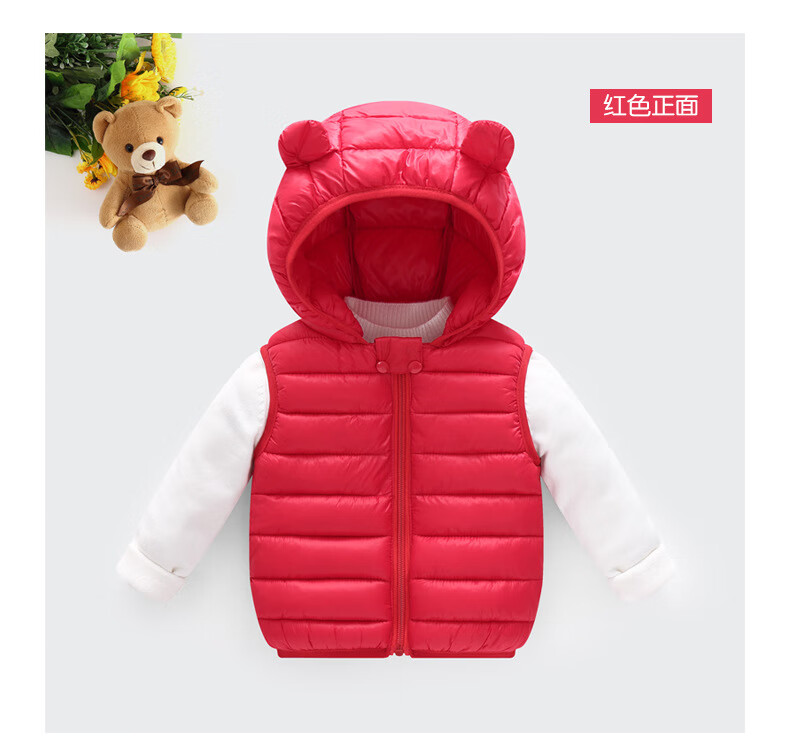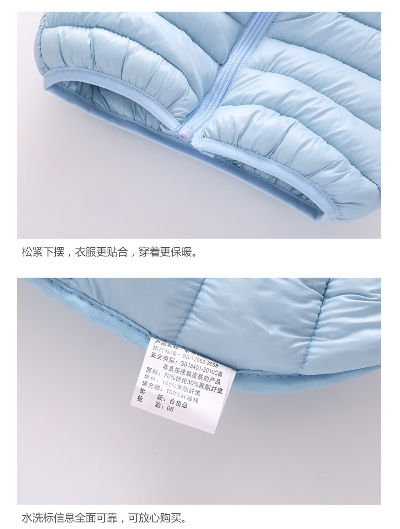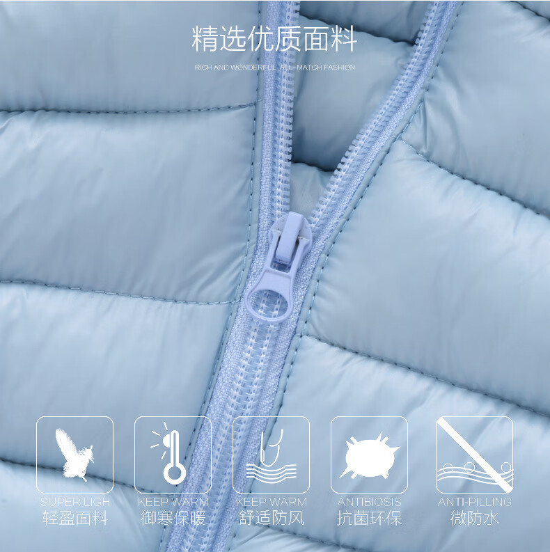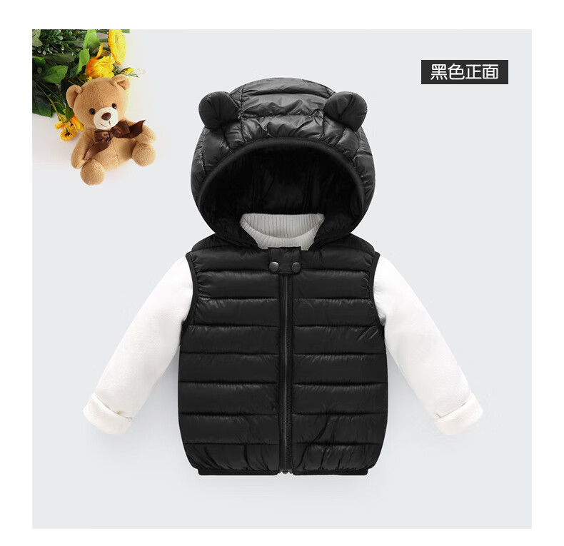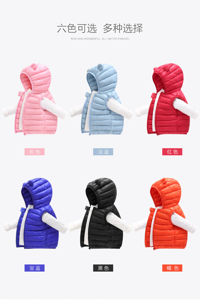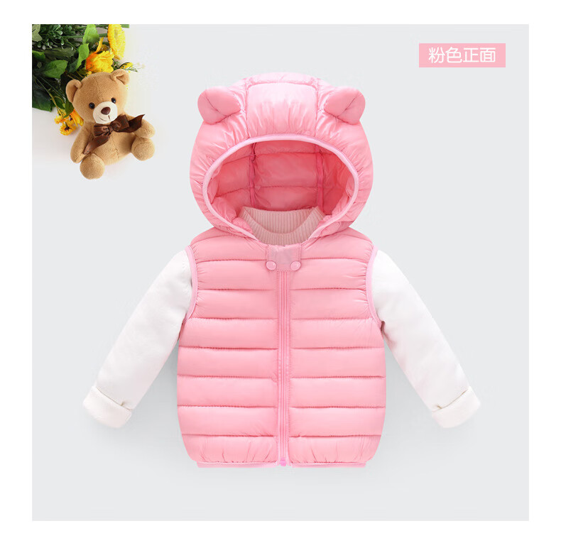 2025 Autumn and Winter New Products Children's Vest Down Cotton Baby Waistcoat Lightweight Vest Boys and Girls Hooded Jacket Light Blue 90 Height 75-85cm/Weight 25Jin Jin is equal to within 0.5 kg