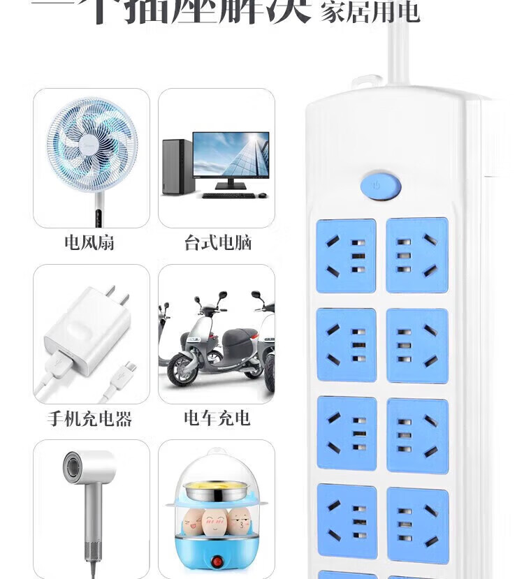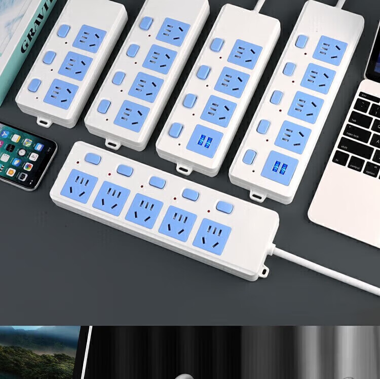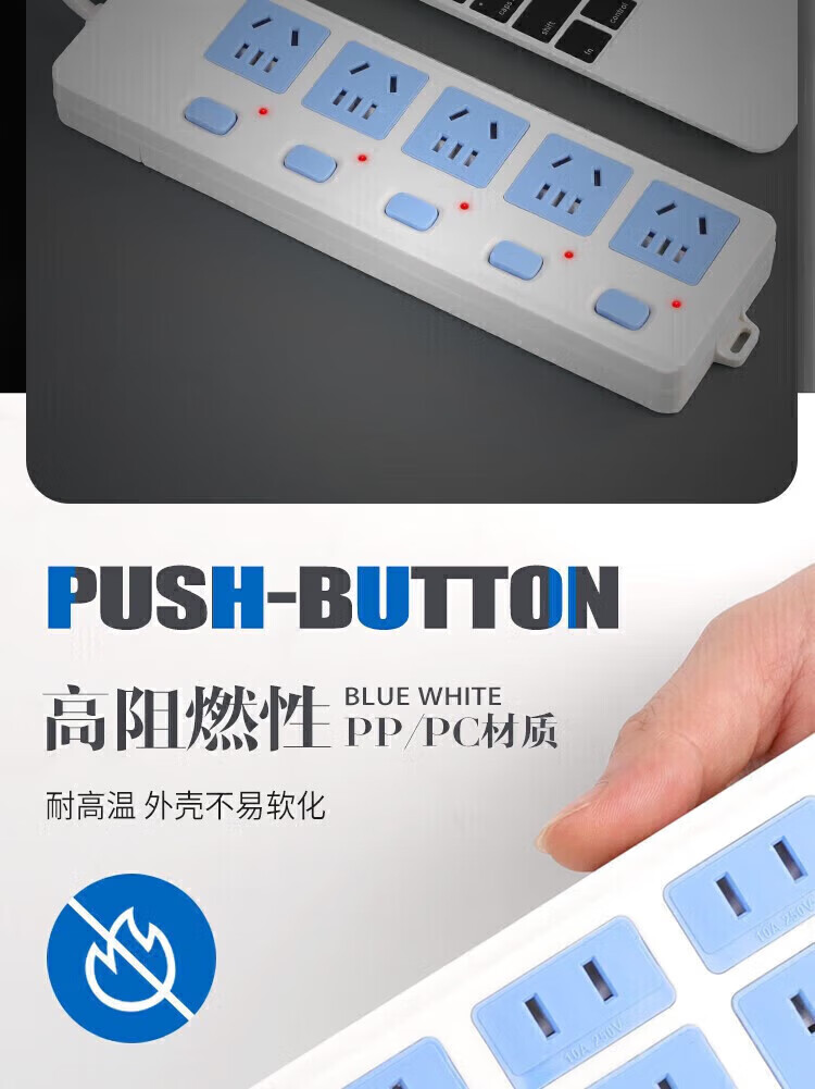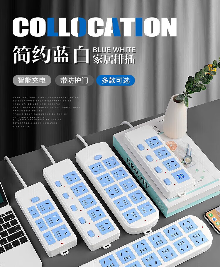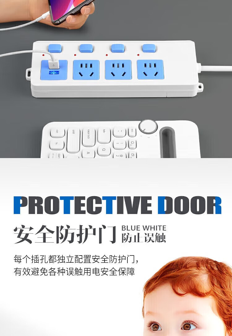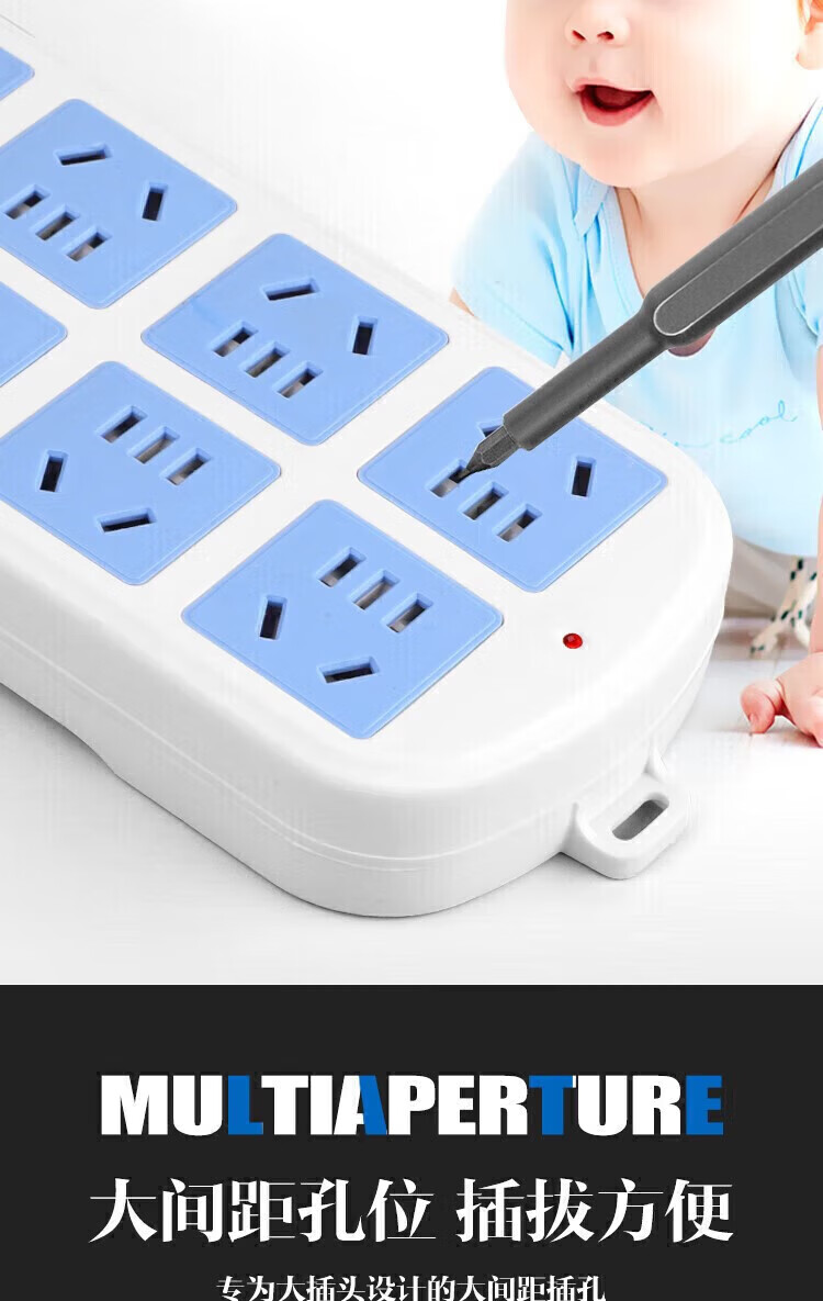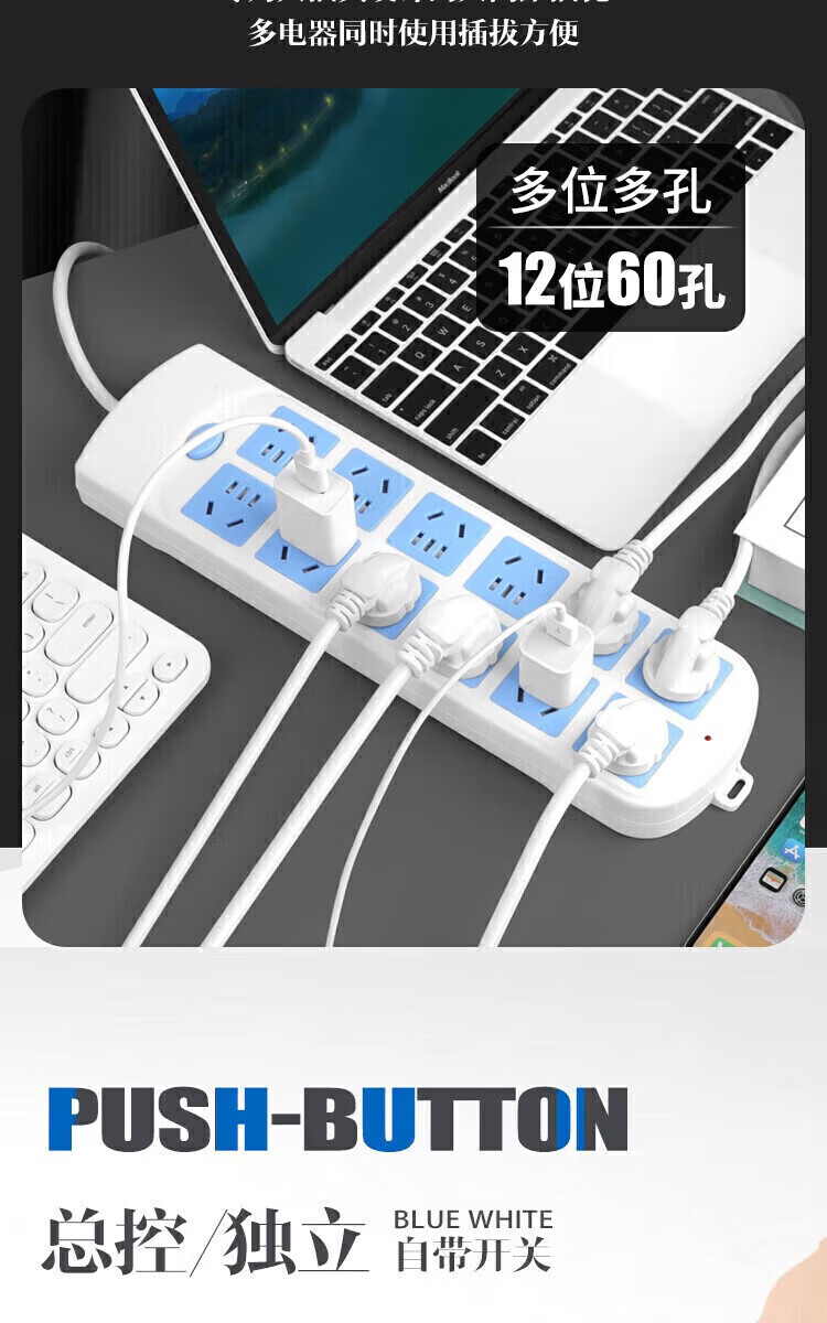 Bull (BULL) same model with wired household power strip 2 meters 3 meters 5 meters 10 meters high power office blue and white 7 holes + 5 meters cable 2500w