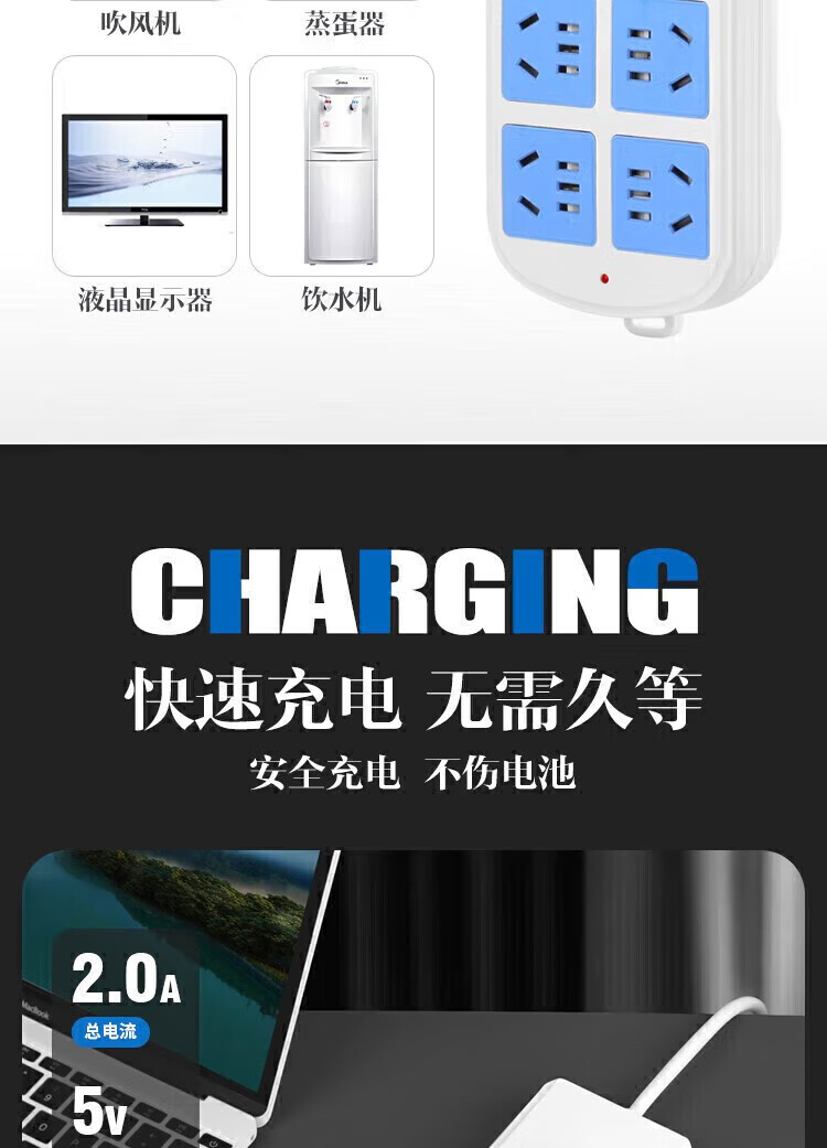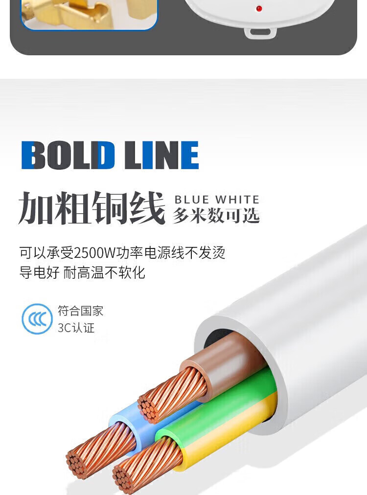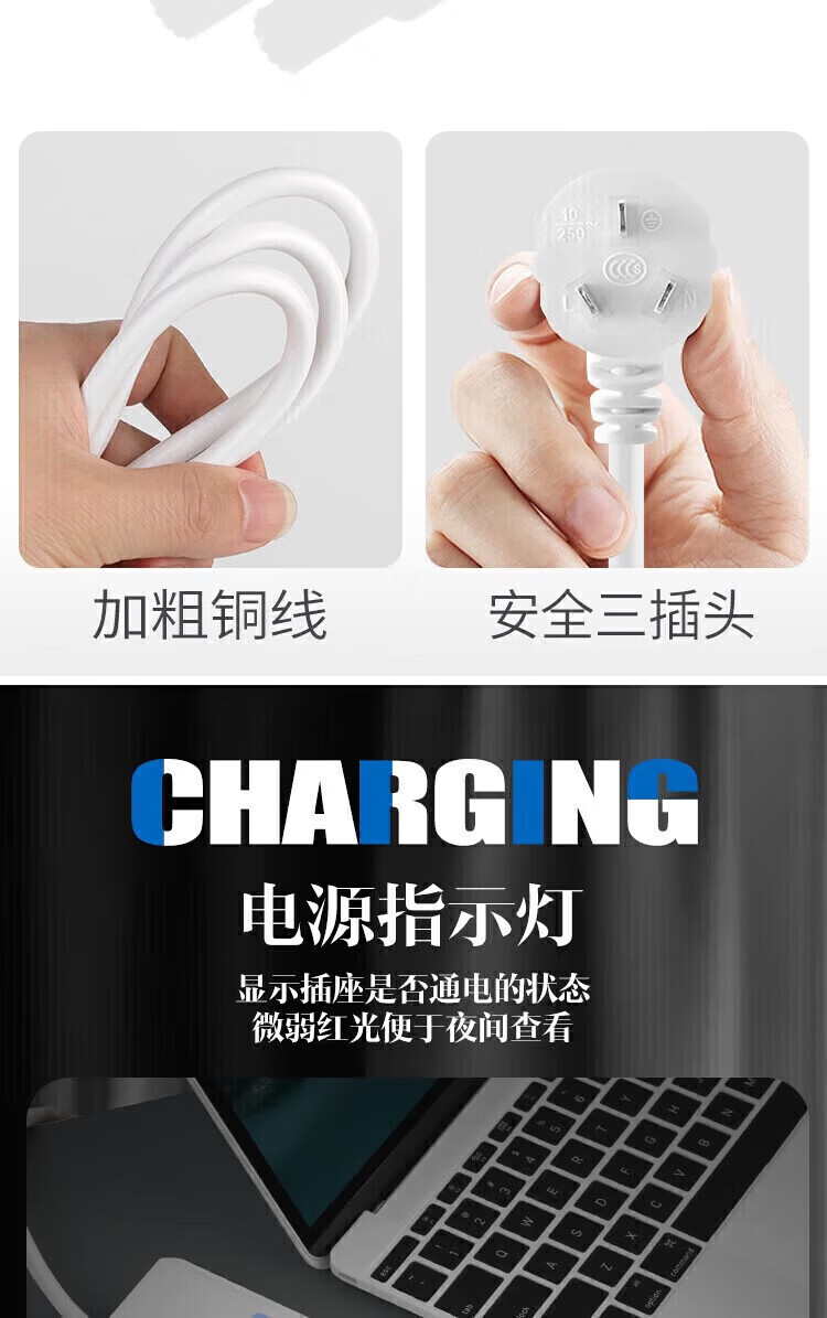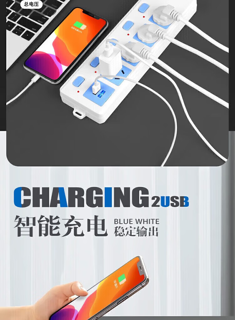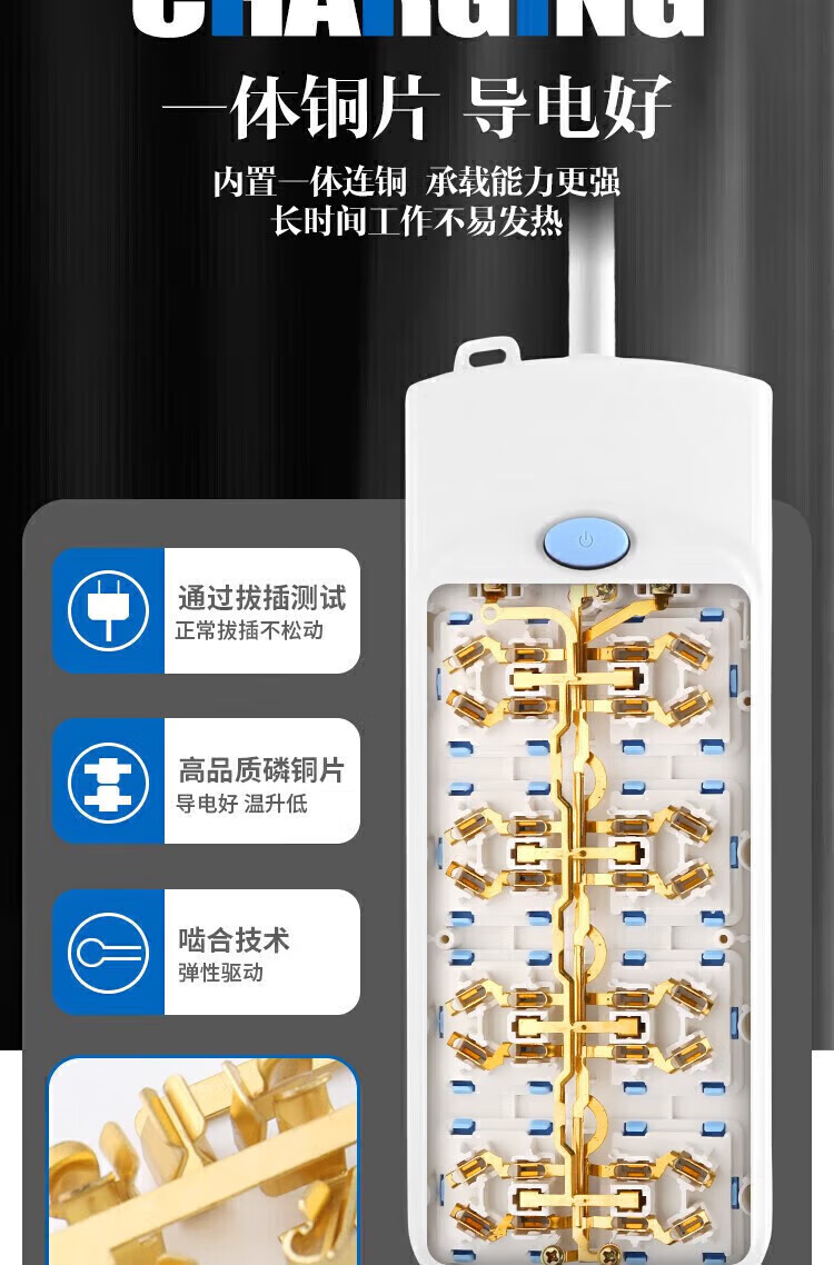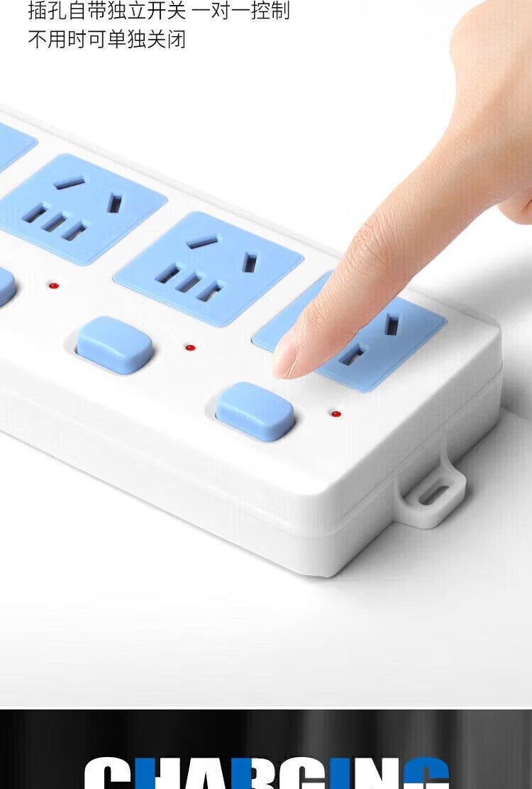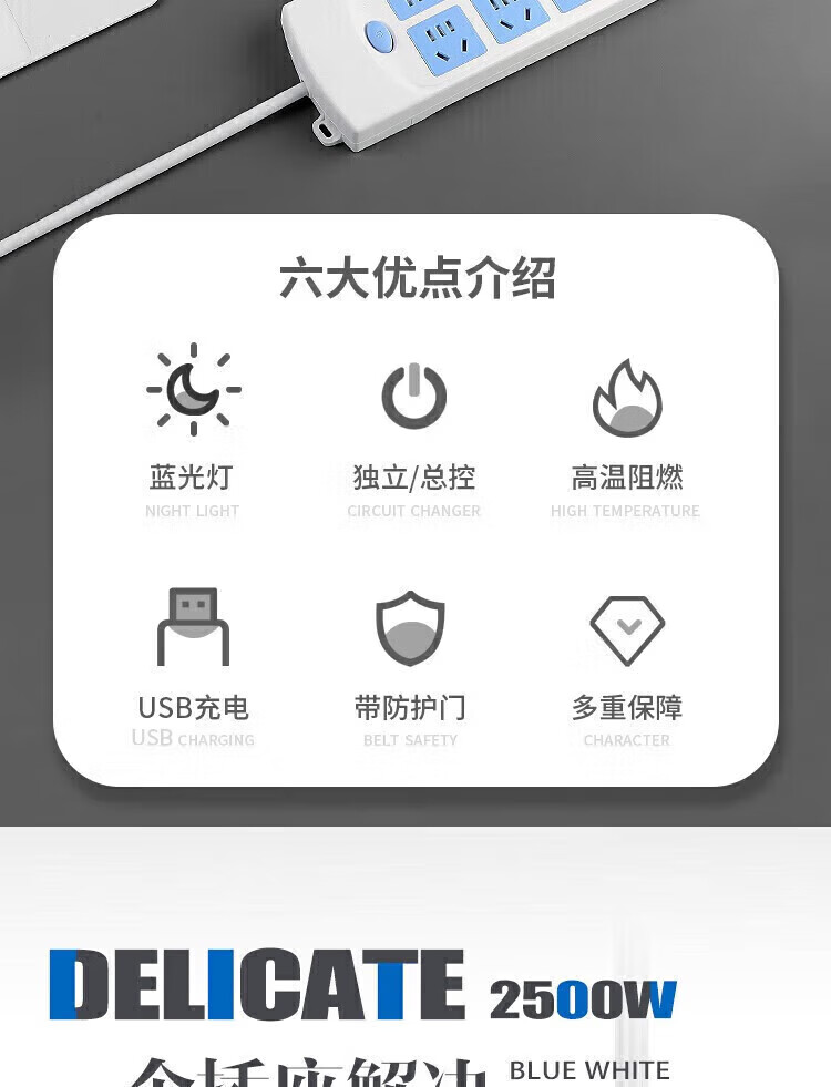 Bull (BULL) same model with wired household power strip 2 meters 3 meters 5 meters 10 meters high power office blue and white 7 holes + 5 meters cable 2500w