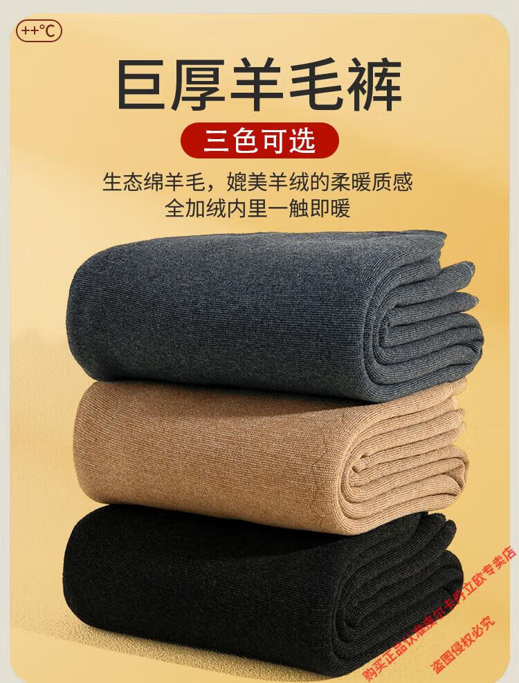 Pierre Cardin wool pants men's winter warm pants thickened velvet women's cotton pants Middle-aged and elderly Northeast large size cashmere leggings T1808 men's - dark gray - upgraded knee pads Extra thick lambswool