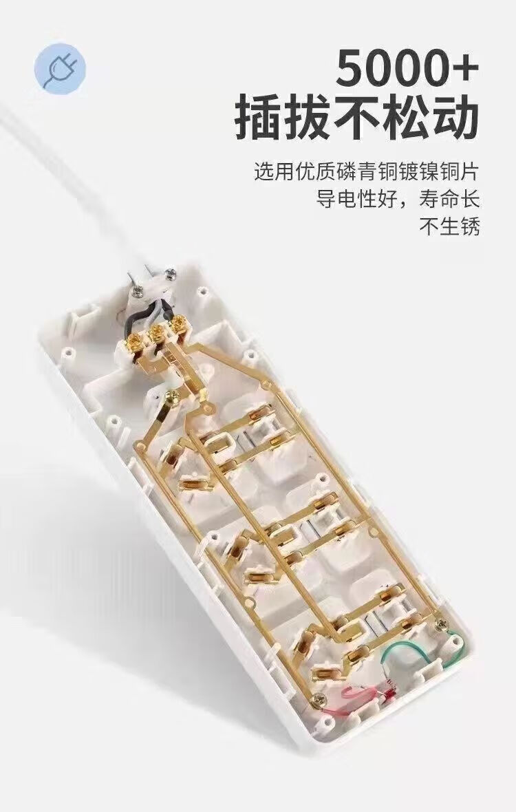 Bull (BULL) same style pure copper socket plug-in strip wiring board with cable strip plug-in strip wireless home dormitory large purchase limit 3 meters in total length - thick line 10,000 people group quality goods + 5 holes