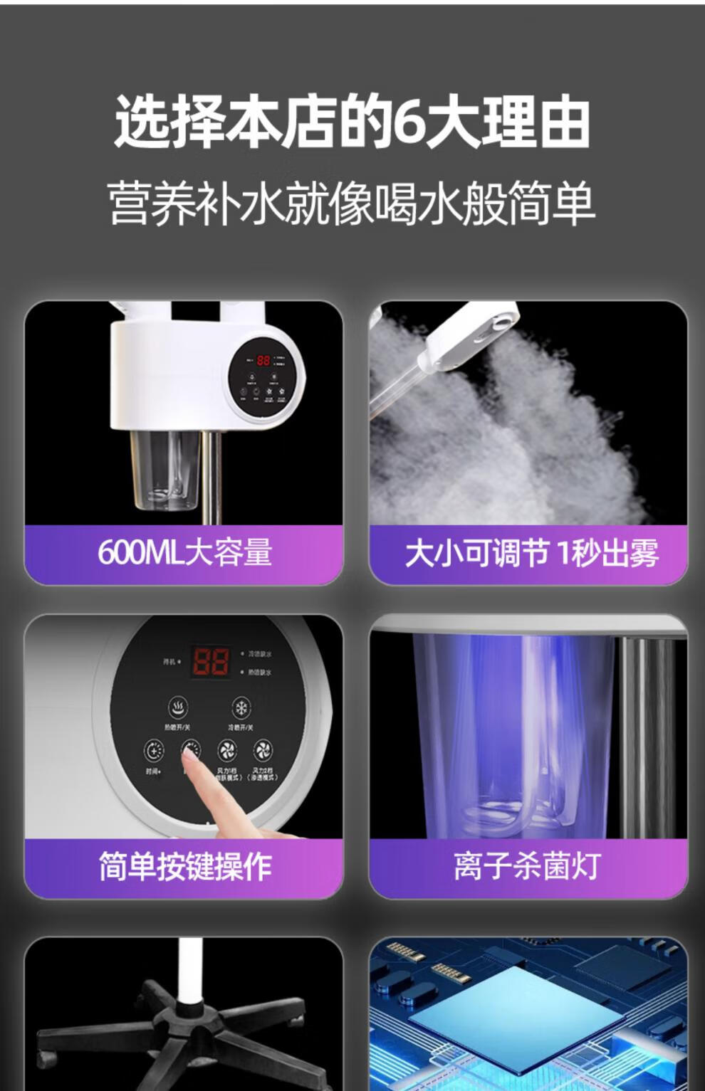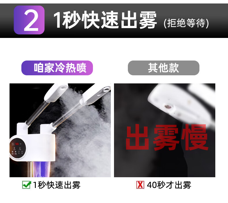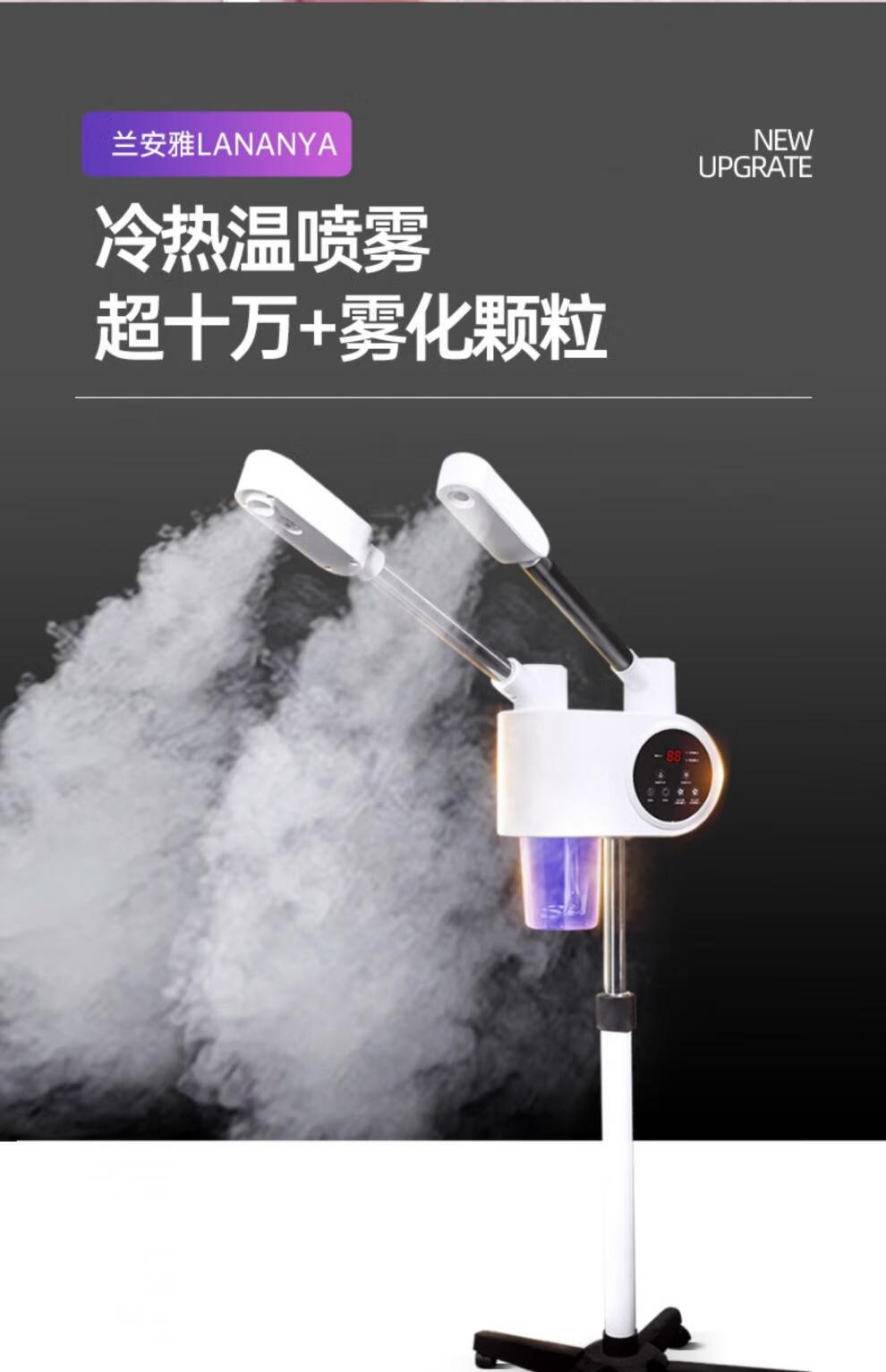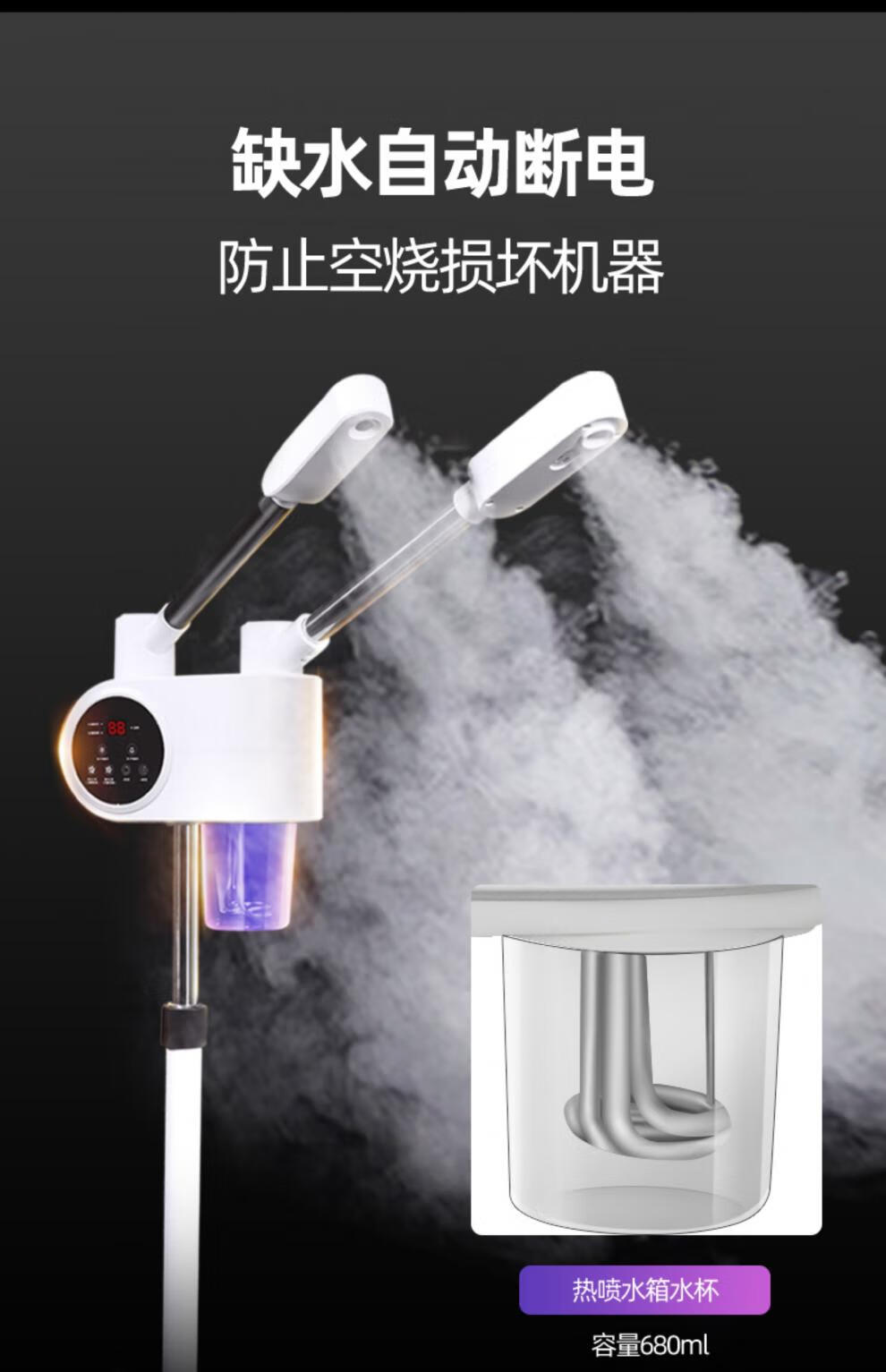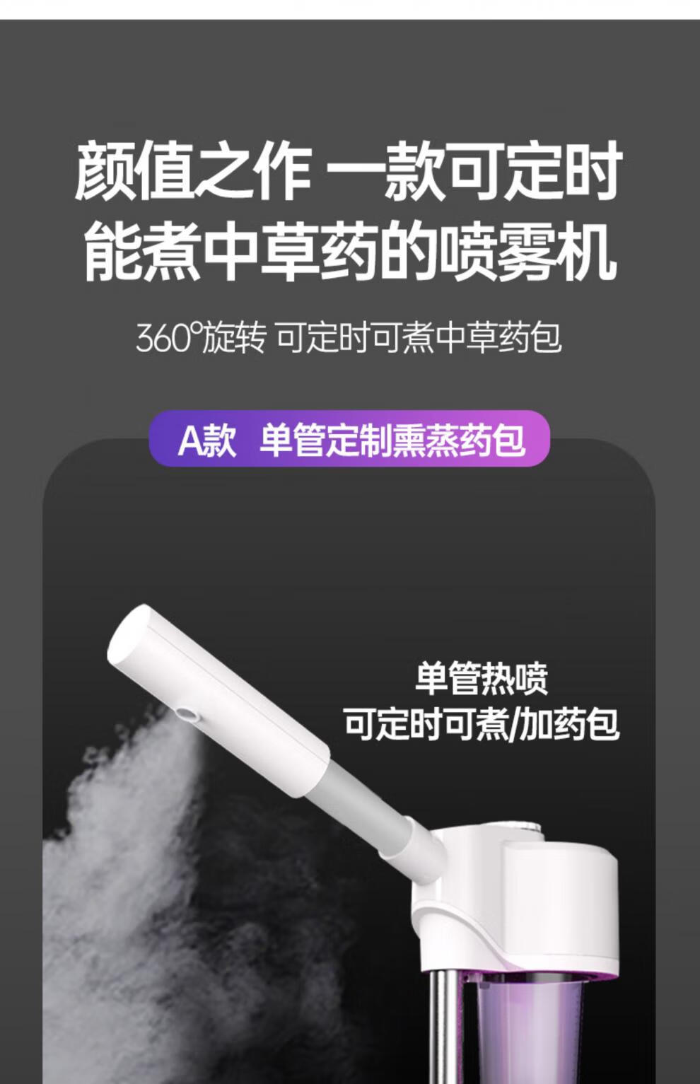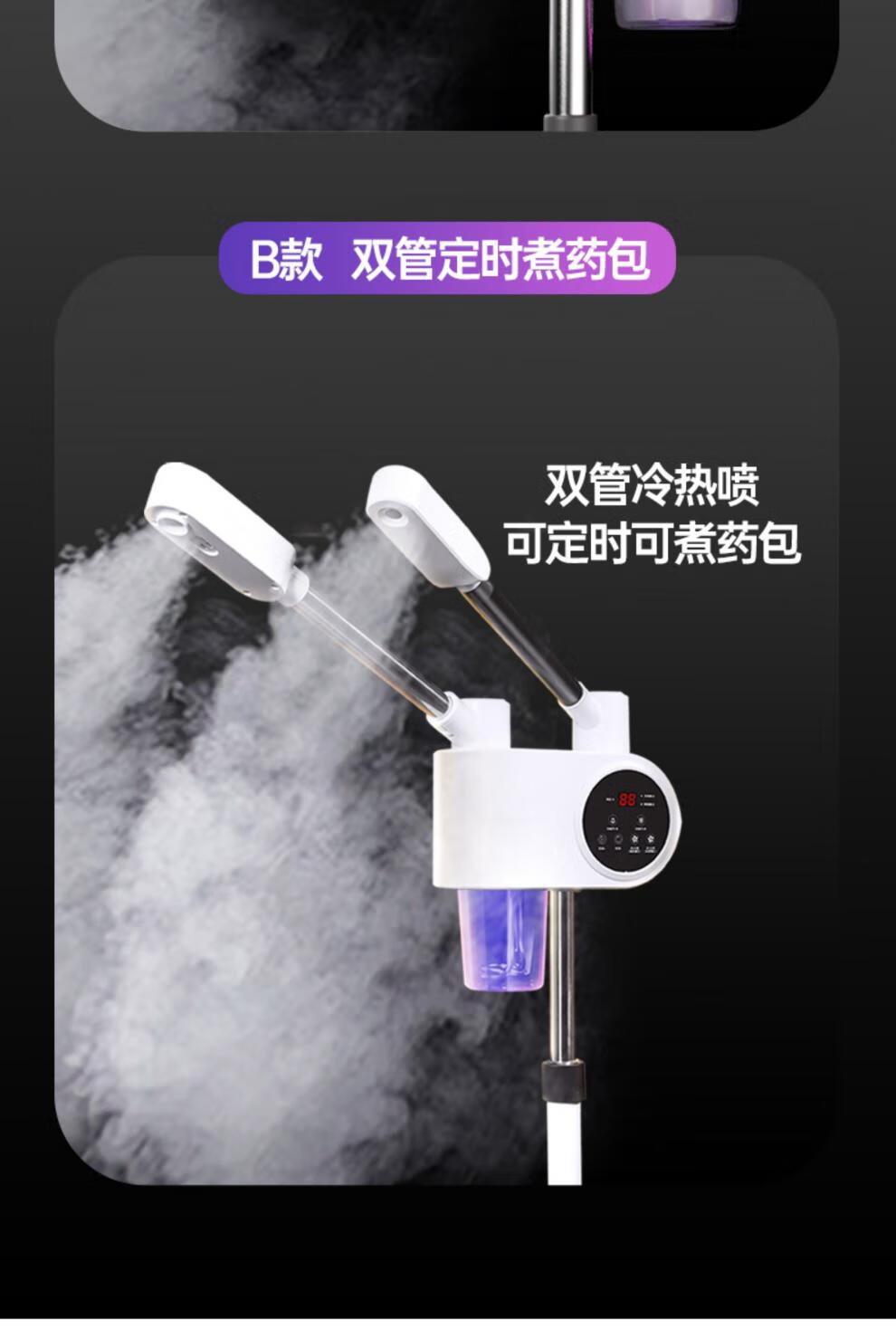 Beauty salon special facial steamer, hot and cold dual spray facial steamer, household steam spa facial hydration nano sprayer, single tube hot spray + blackhead shovel, can be timed and can add medicine pack