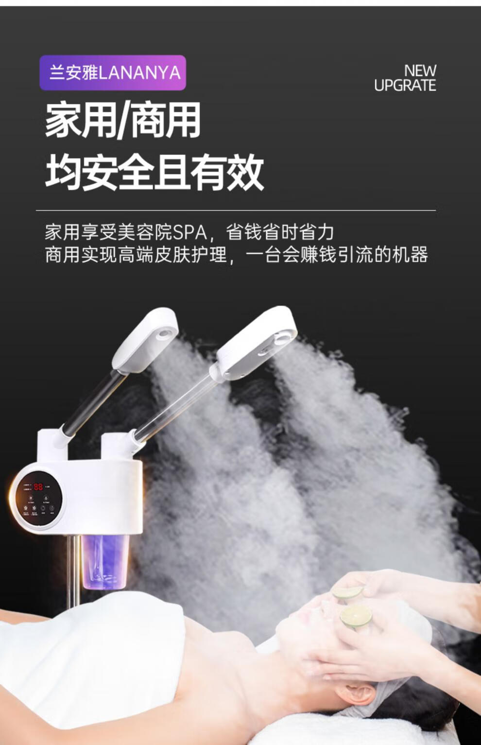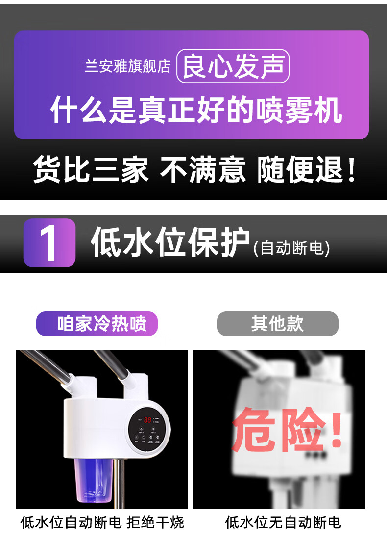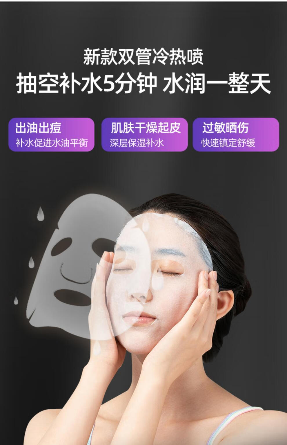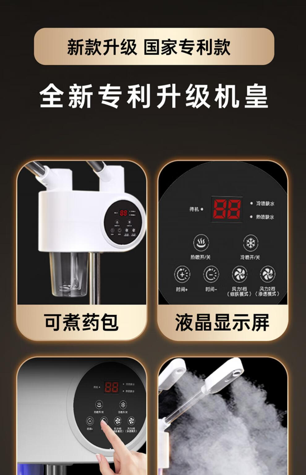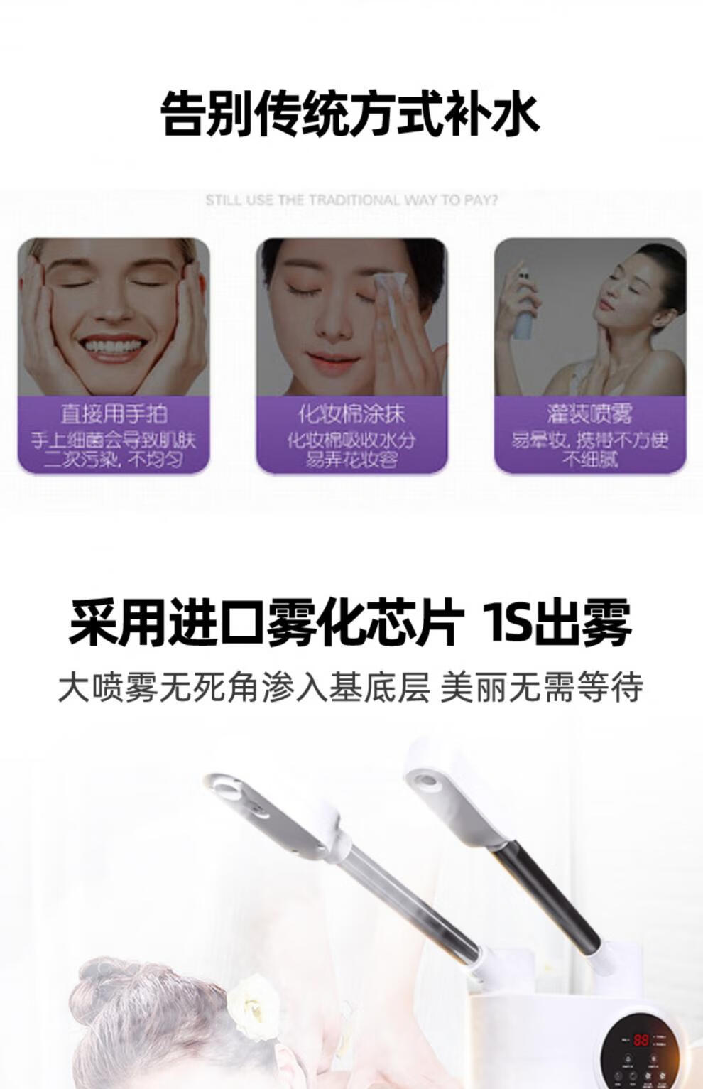 Beauty salon special facial steamer, hot and cold dual spray facial steamer, household steam spa facial hydration nano sprayer, single tube hot spray + blackhead shovel, can be timed and can add medicine pack