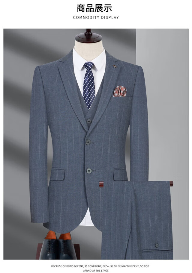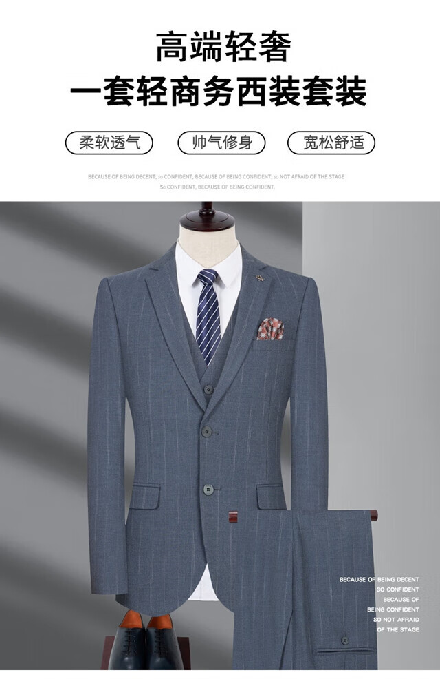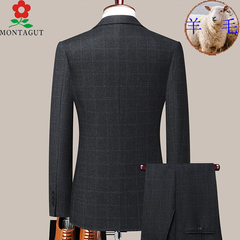 MONTAGUT (MONTAGUT) Suit Men's Winter Thickened Wool Suit Formal Striped Wedding Banquet Dress Dad 993 Navy Striped Double Slit Two-piece Set Wool M 170/