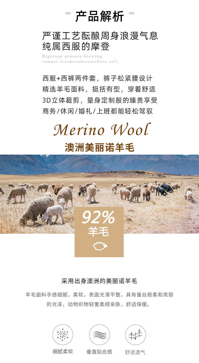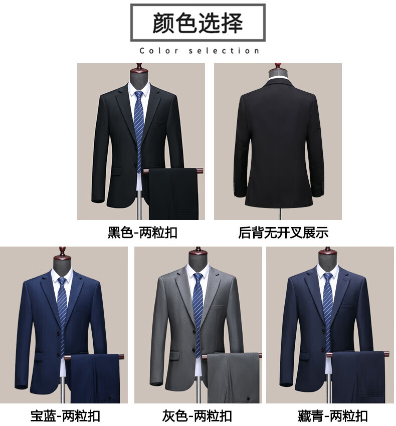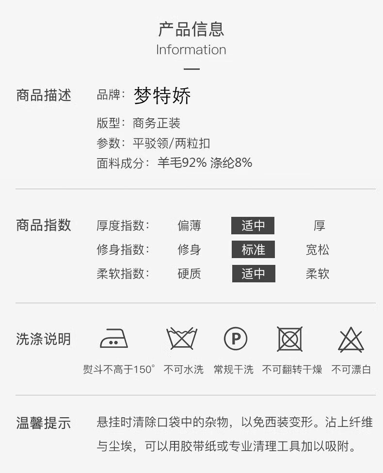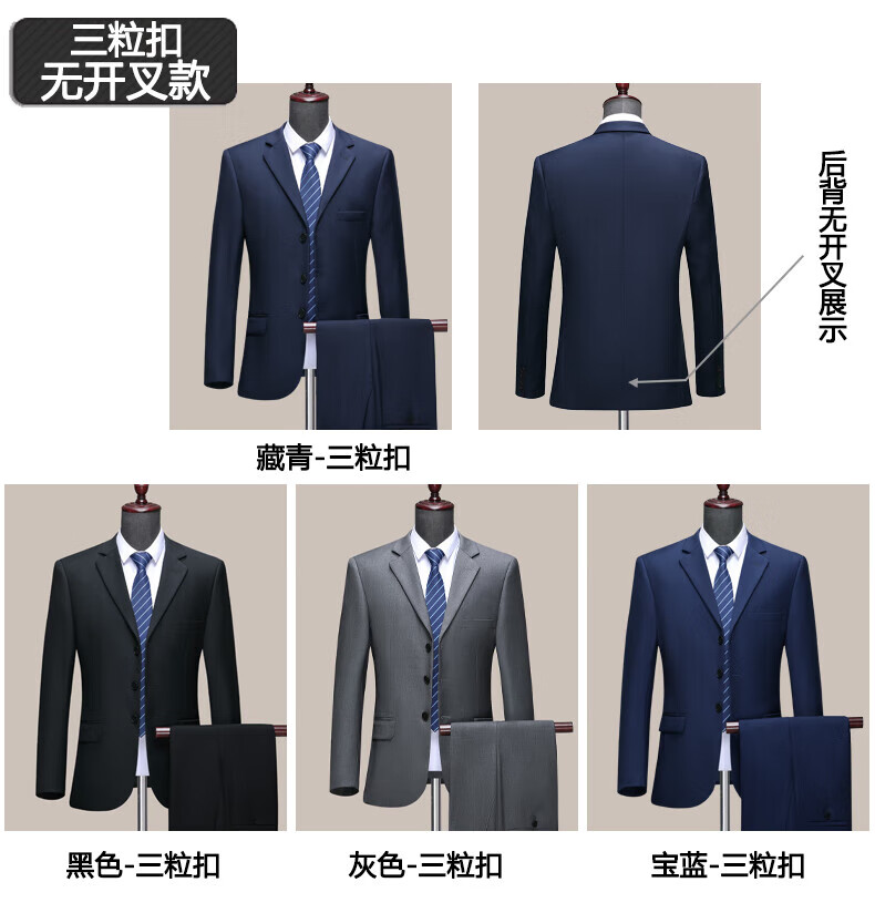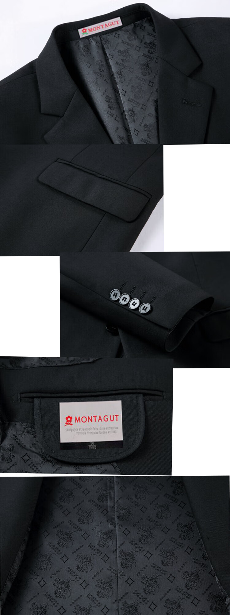 MONTAGUT Suit Men's Wool Free-iron Suit Business Formal Wear Professional Suit Groom Wedding Dress Black - Two Buttons Slit in the Middle S 165/84A=46 Tops + Pants Notes for Ordering