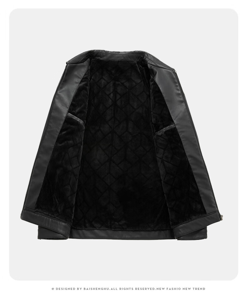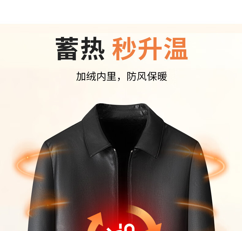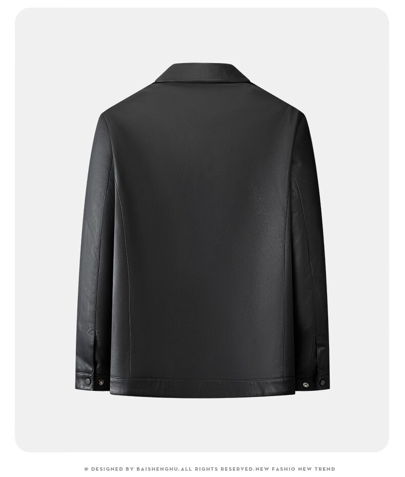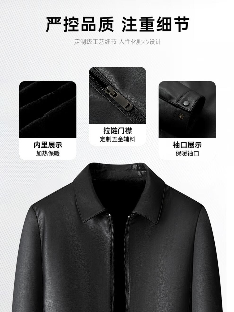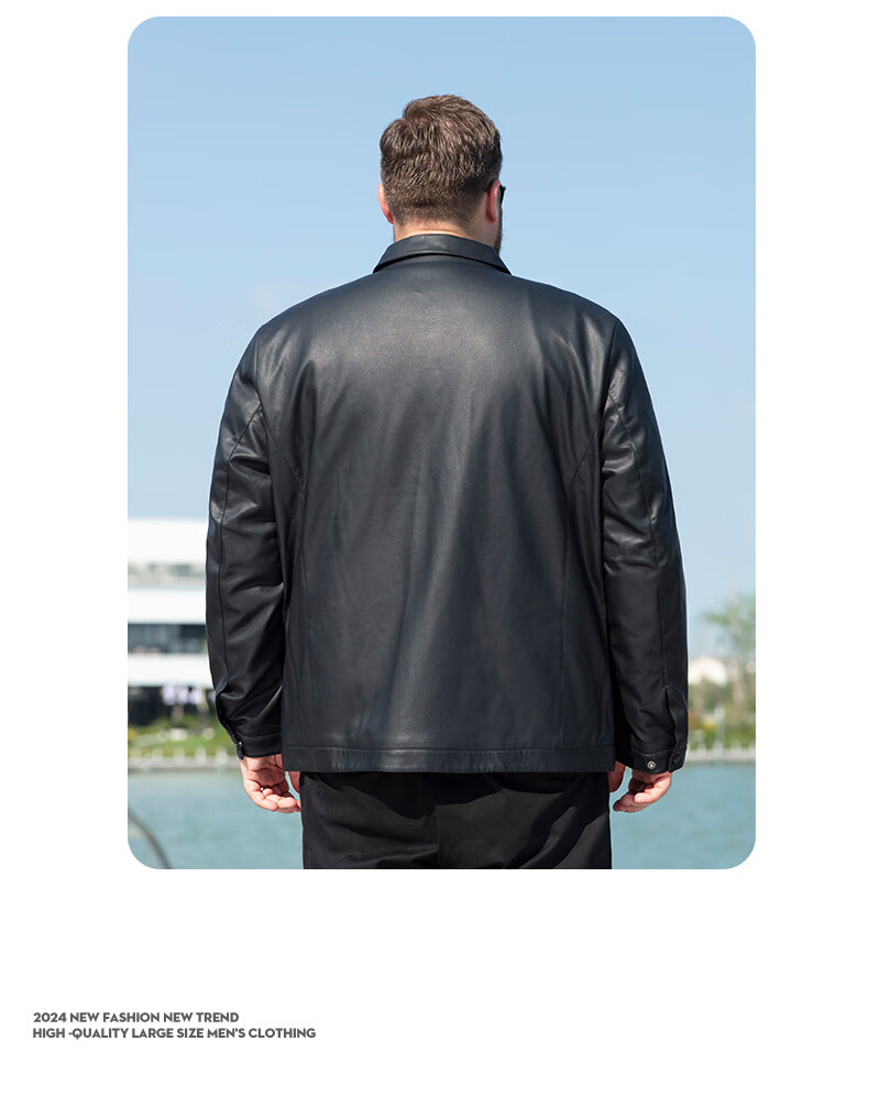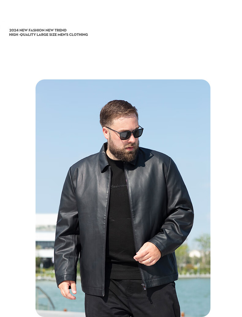 Jiujiu Wang Jiu Mu Wang Large Size Men's Leather Jacket 2025 Winter Fatty Plus Velvet Windproof Warm Loose Lapel Executive Jacket Black L (125-135Jin Jin equals 0.5kg)