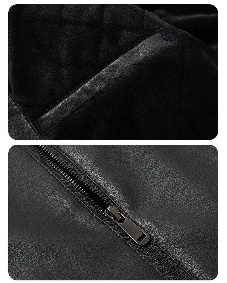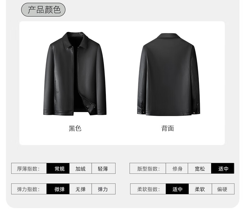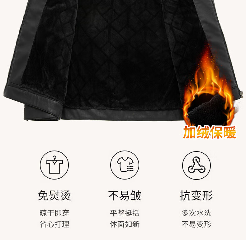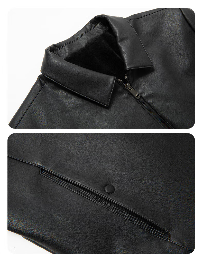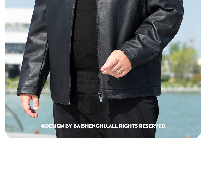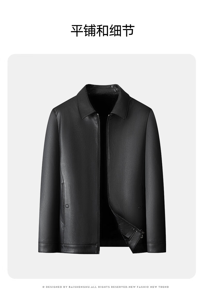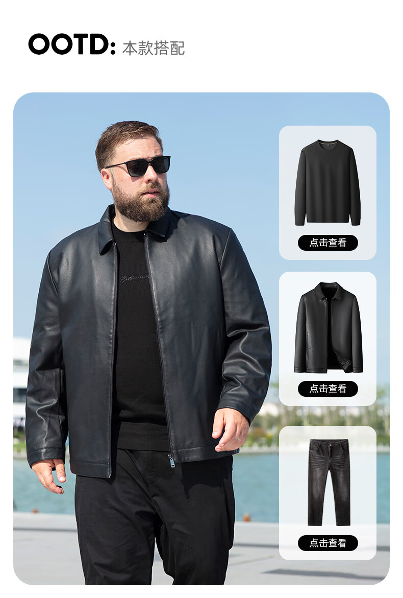 Jiujiu Wang Jiu Mu Wang Large Size Men's Leather Jacket 2025 Winter Fatty Plus Velvet Windproof Warm Loose Lapel Executive Jacket Black L (125-135Jin Jin equals 0.5kg)