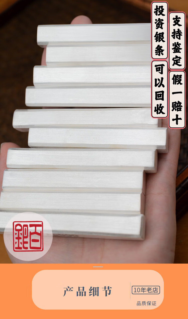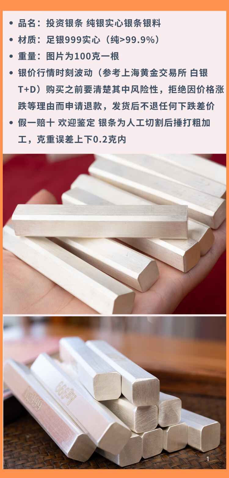Hundred-silver silver bars, 999 sterling silver, raw materials for investment, small silver bars, pure silver, silver nuggets, sheets, silver bracelets, 100 grams. Returns and exchanges are not supported (state regulations require 7 days for no-reason returns, except for precious metals)