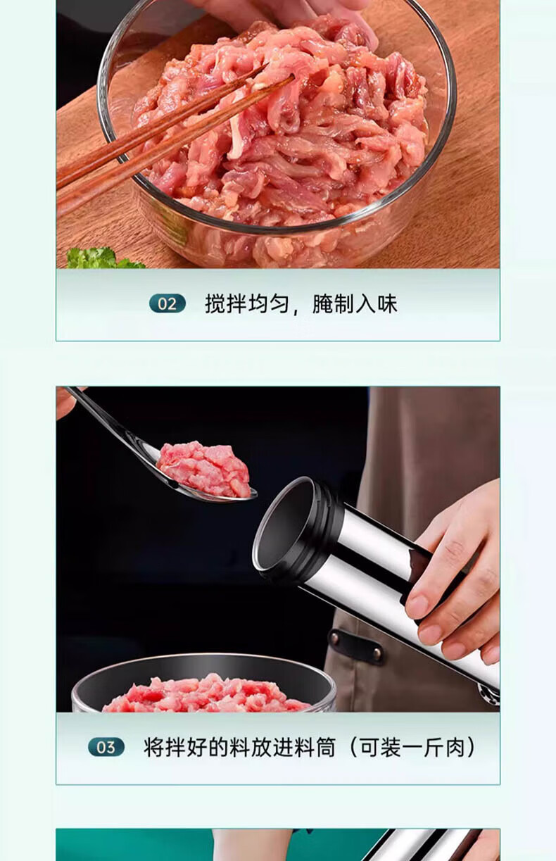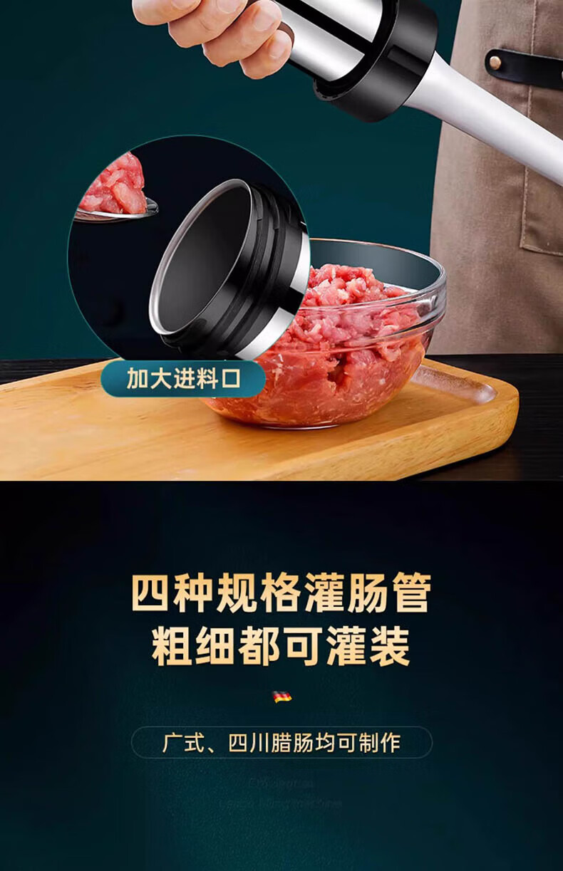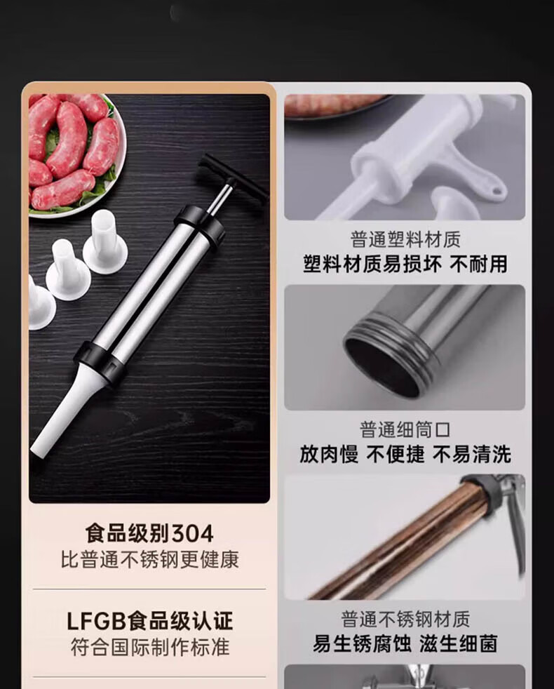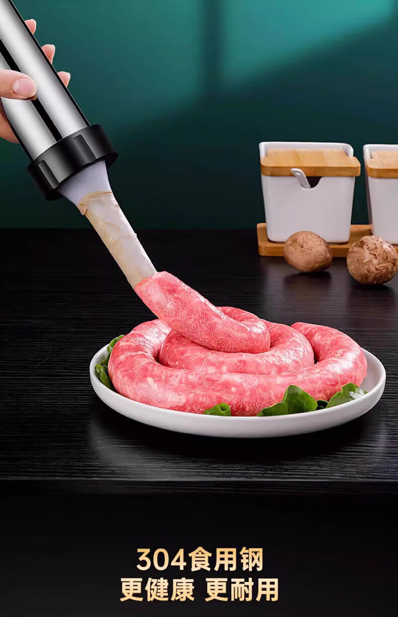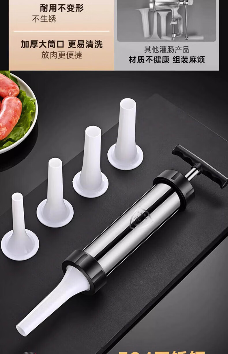 Chuge household 304 stainless steel sausage enema machine machine sausage sausage filling machine manual sausage making artifact 304 stainless steel sausage enema machine cotton thread + gloves + 4 enema heads
