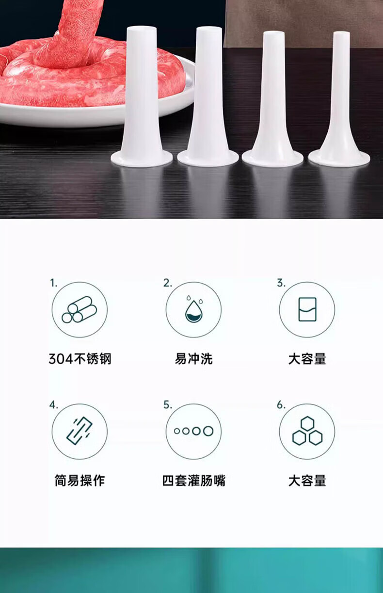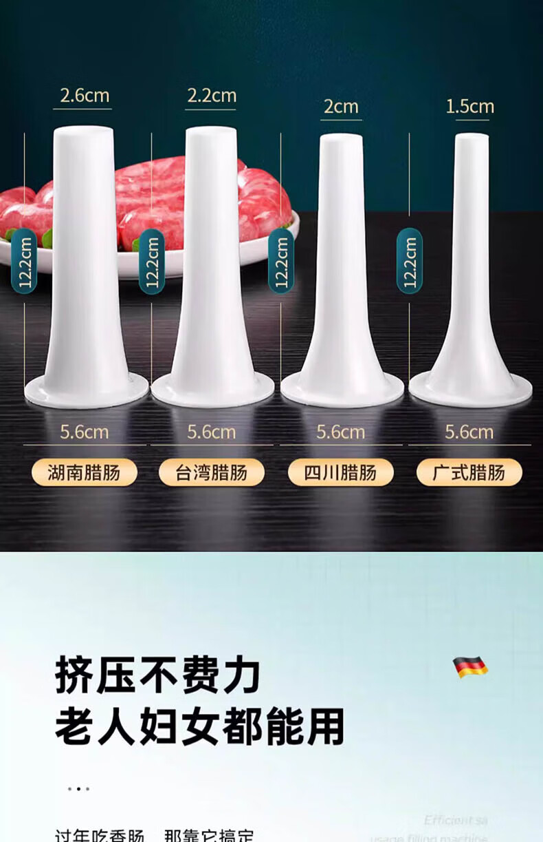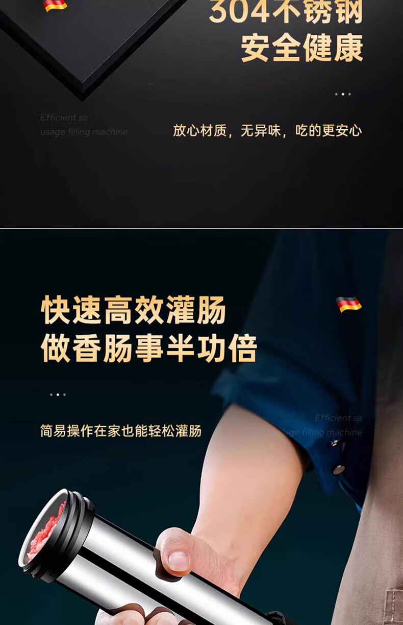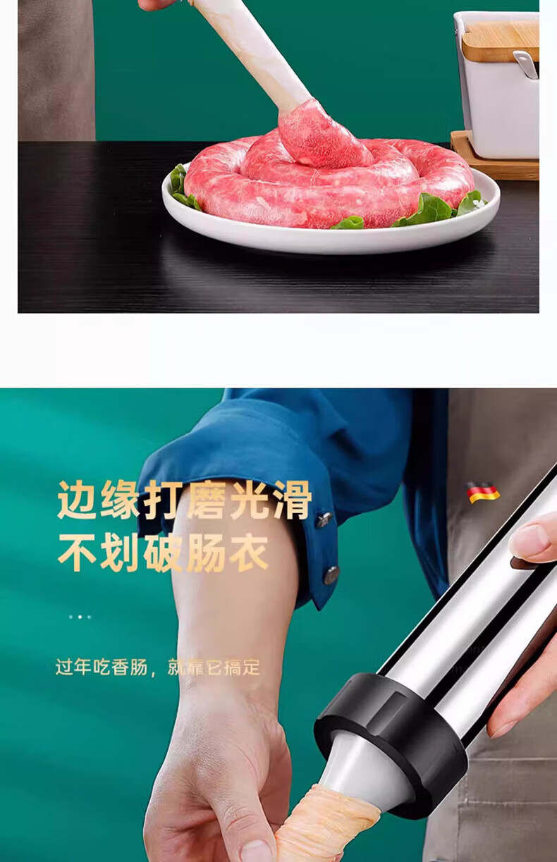 Chuge household 304 stainless steel sausage enema machine machine sausage sausage filling machine manual sausage making artifact 304 stainless steel sausage enema machine cotton thread + gloves + 4 enema heads