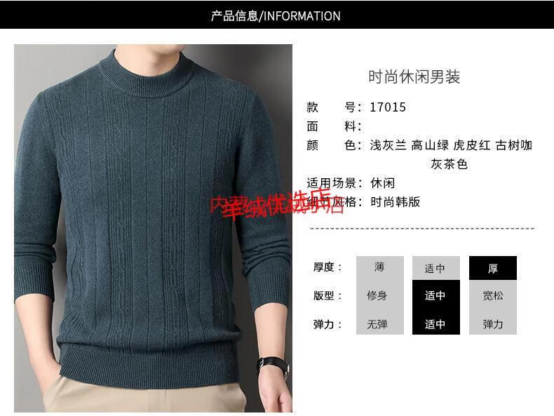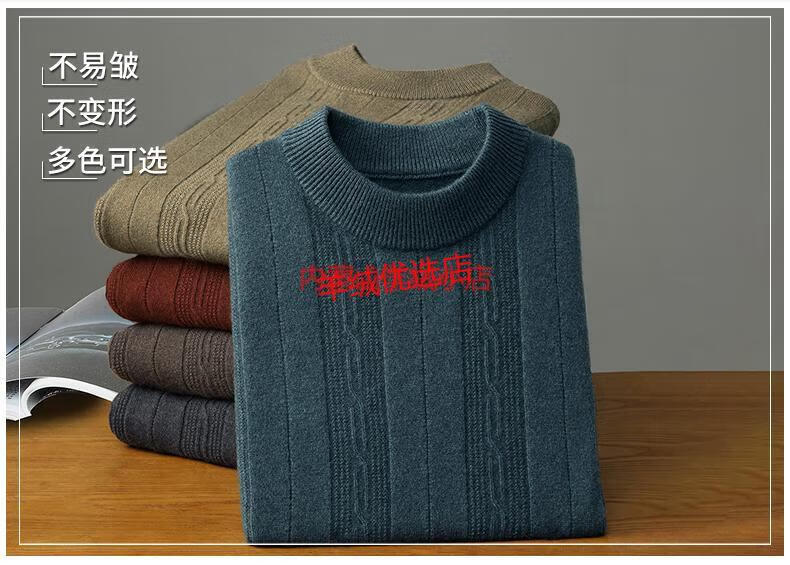 Deer King Optim Cashmere Sweater Men's Sweater 2025 Winter New Thickened Half-Turtle Collar Bottoming Sweater 100 Pure Cashmere Sweater Light Gray Blue M 165 Recommended Weight 100-120Jin Jin is equal to 0.5 kg