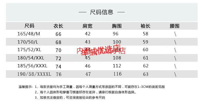 China (cm) 165 / 88-90 170 / 96-98 175 / 108-110 180 / 118-122 185 / 126-130
