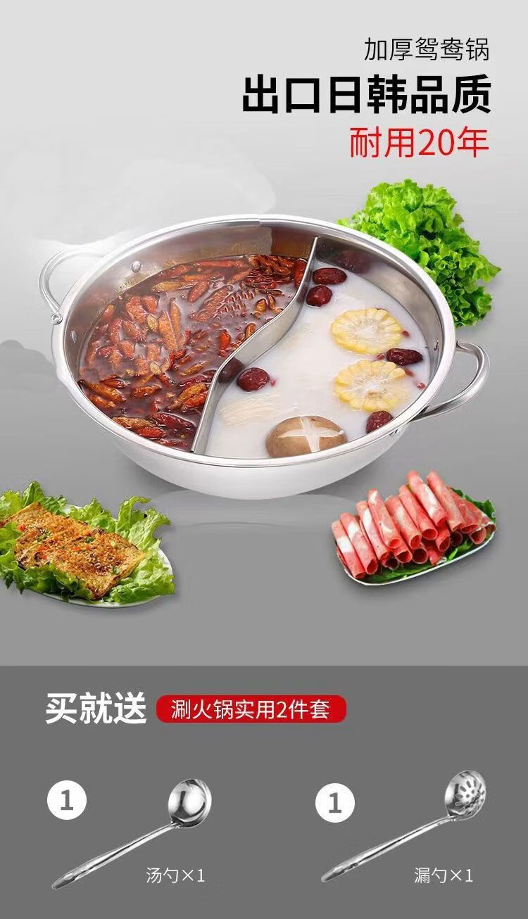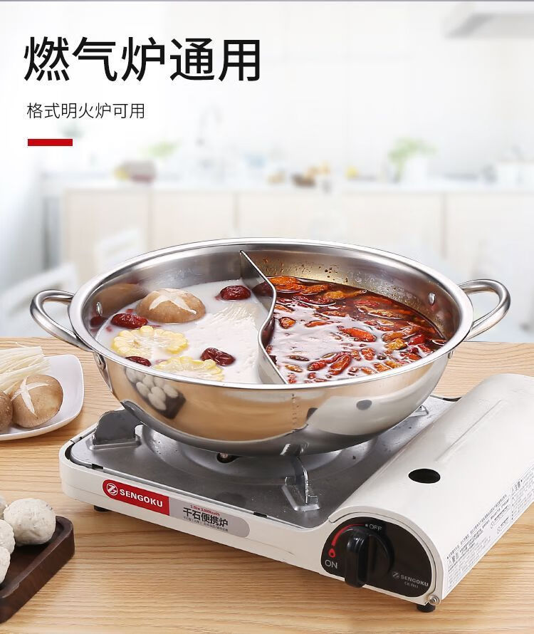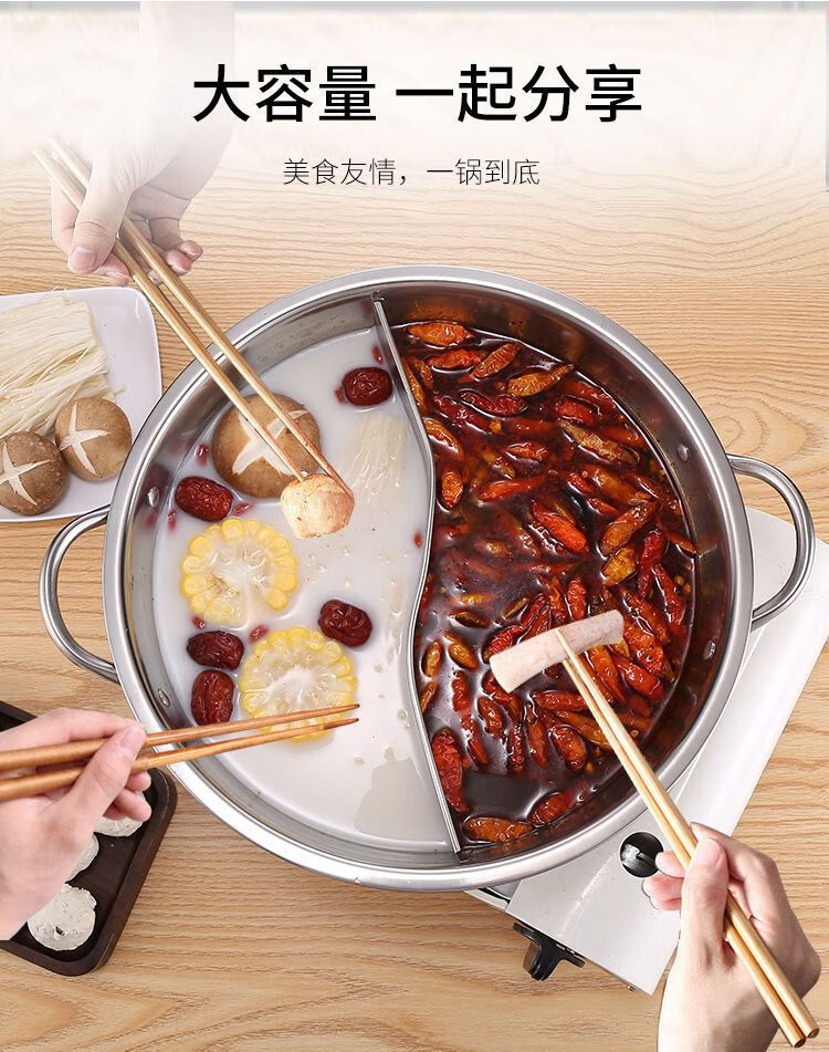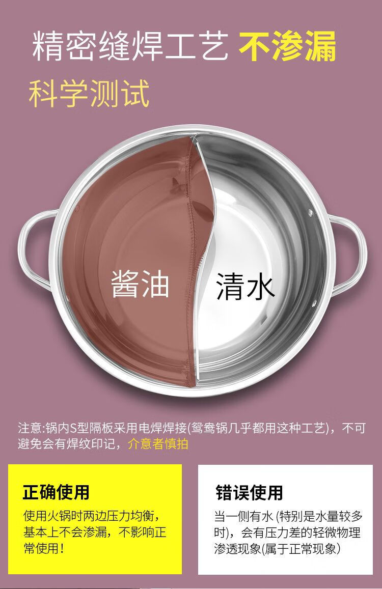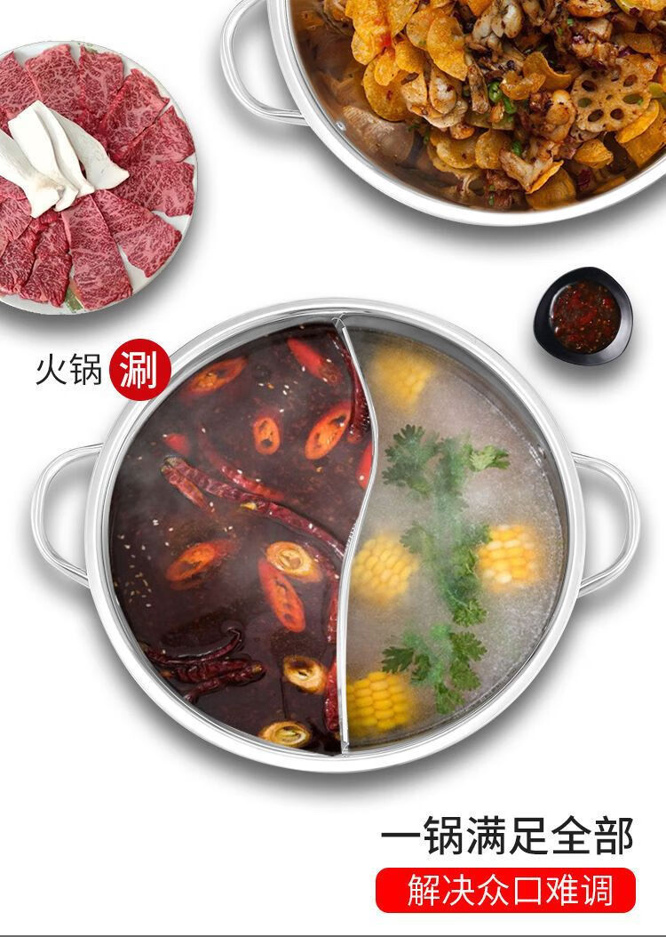 Jingchuchu stainless steel mandarin duck pot thickened induction cooker large capacity mandarin duck pot special for home hot pot thickened double flavor mandarin duck pot 28cm