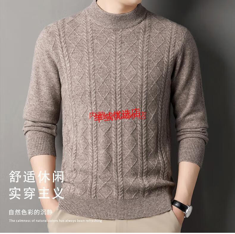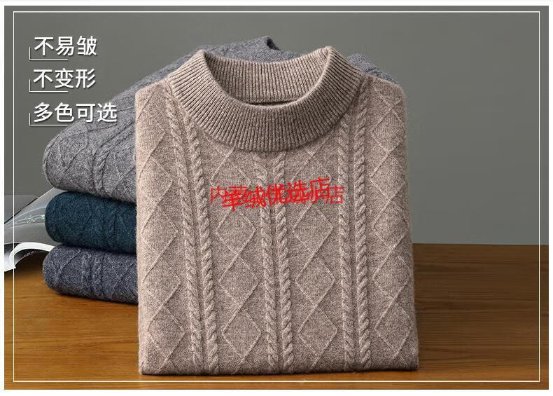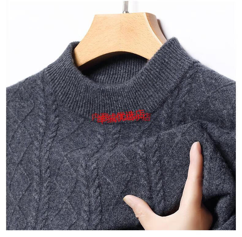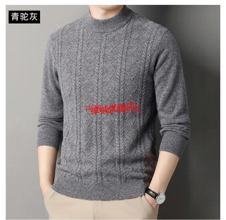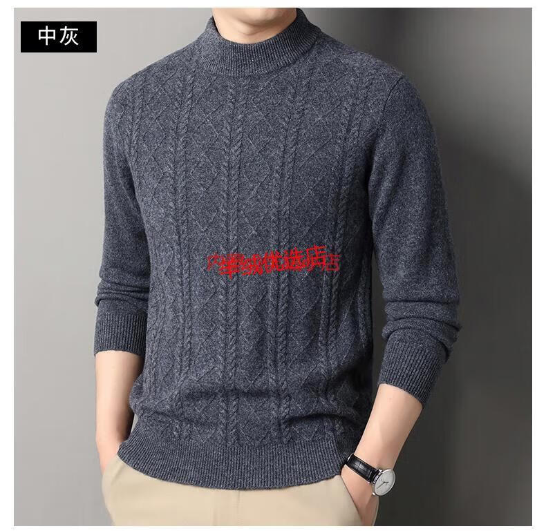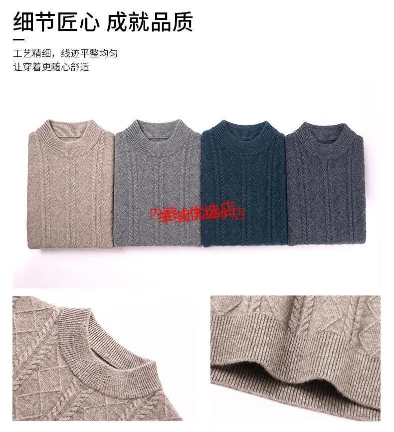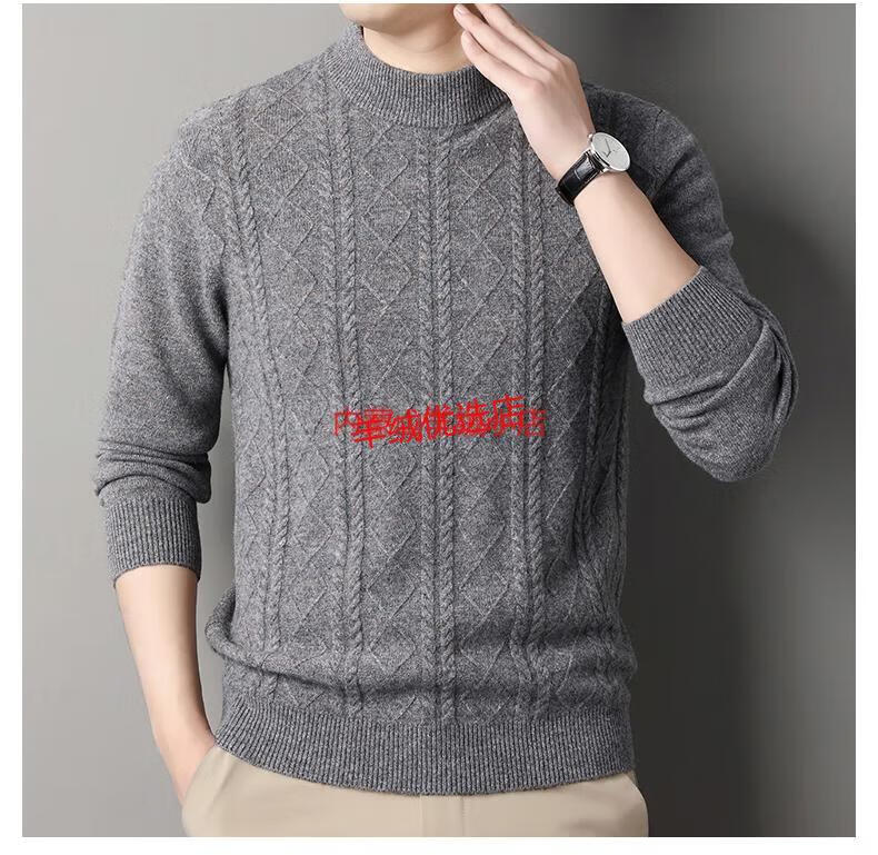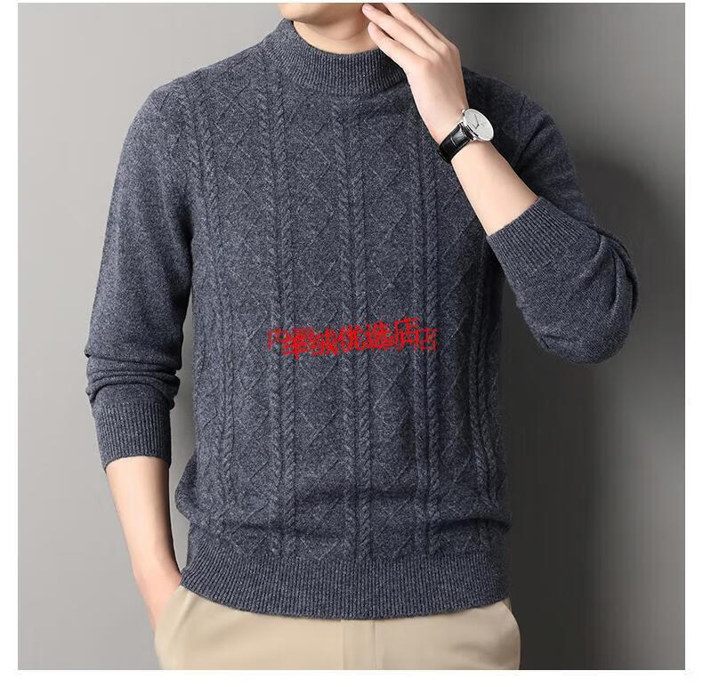 Deer King Optim high-end brand cashmere sweater men's sweater 2025 winter thickened bottoming sweater middle-aged warm pure cashmere sweater medium gray M 165 recommended weight 100-120Jin Jin equals 0.5 kg