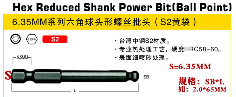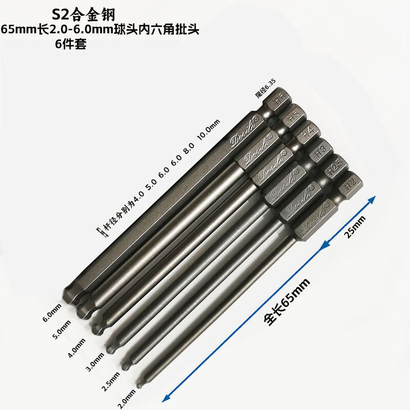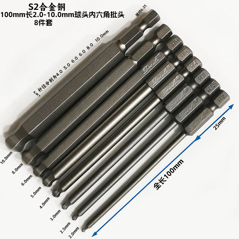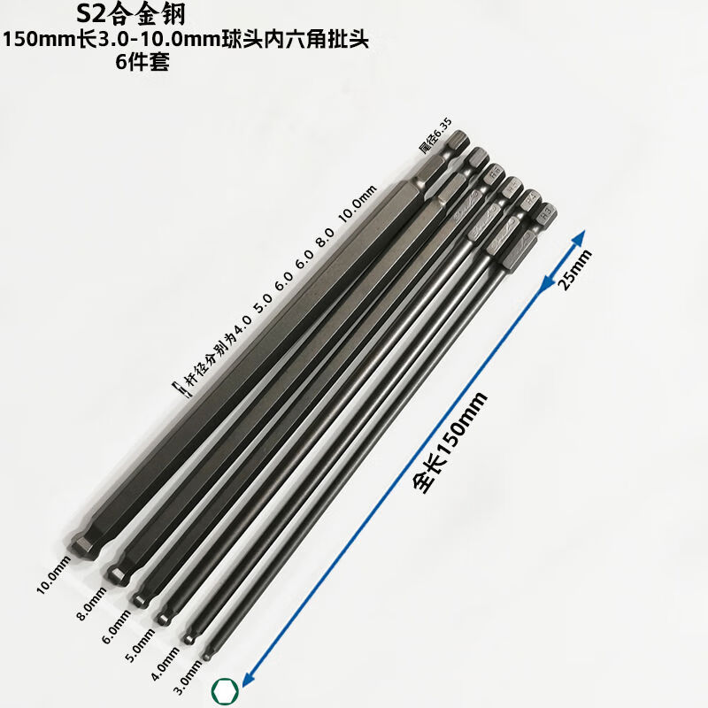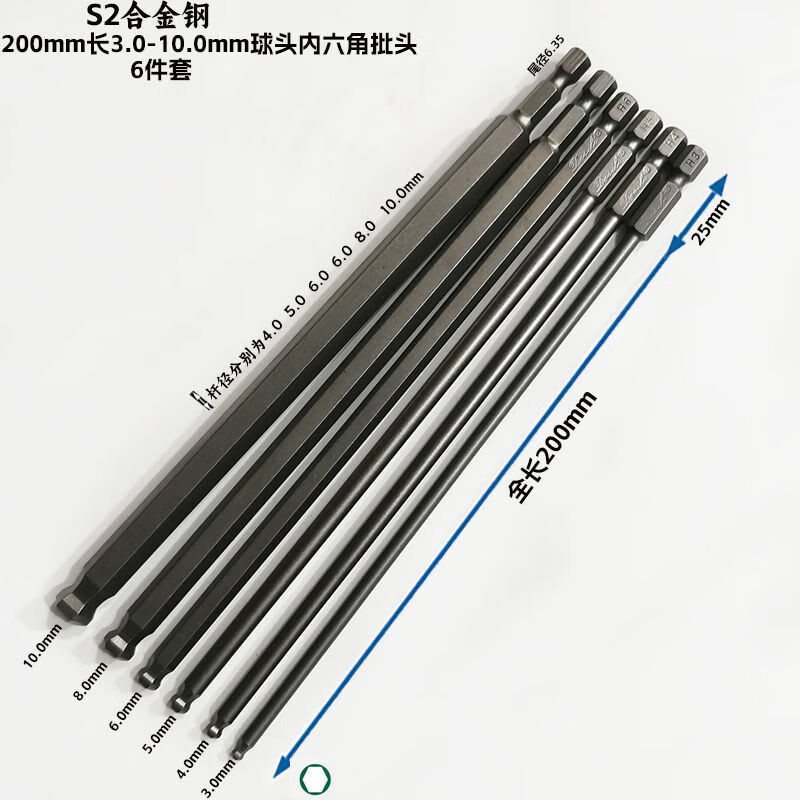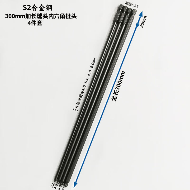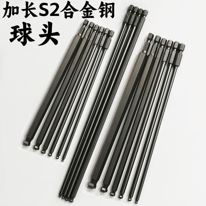 Inner hexagonal bit lengthened magnetic ball head inner hexagonal bit 300mm electric batch mouth S2 round head hexagonal single ball head 3 o'clock 0*200mm